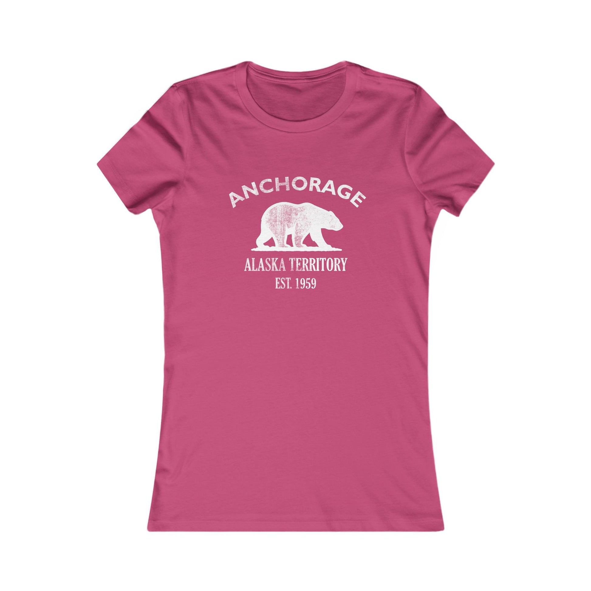 Anchorage Alaska Vintage Retro Womens Fitted Ringspun Cotton Tee - White Logo