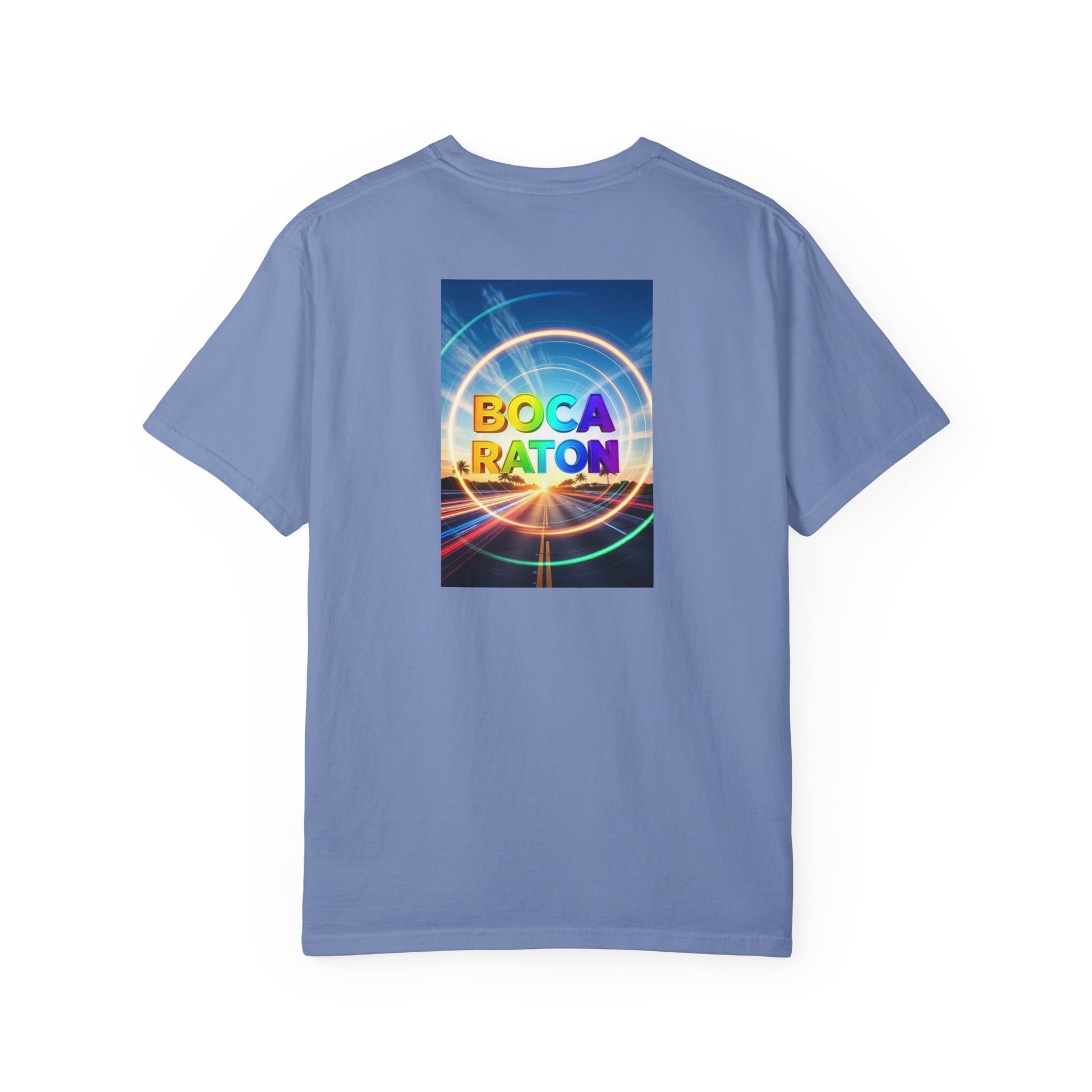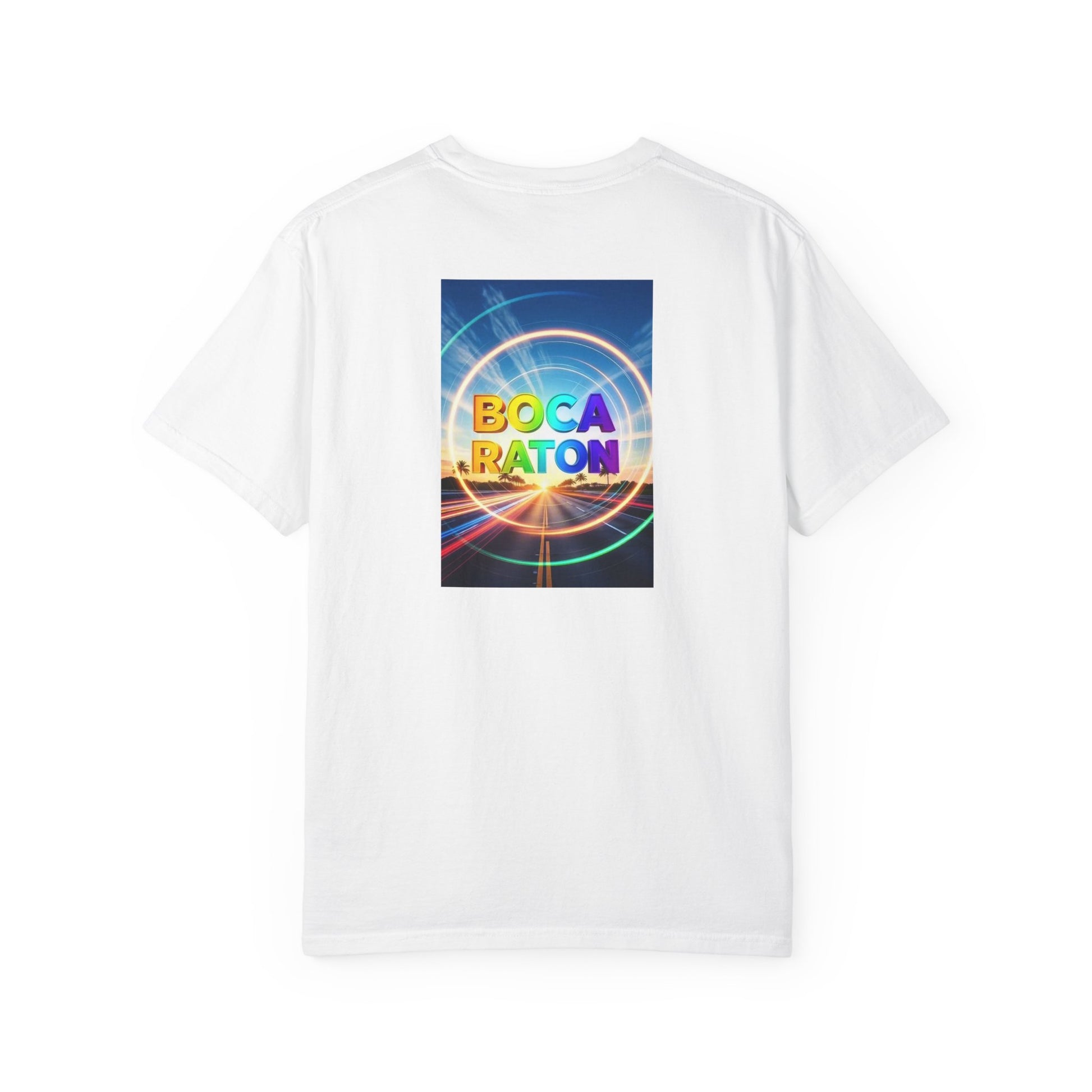 Boca Raton Florida Vintage Retro Back Printed Art Series Cotton Tee - Black Logo