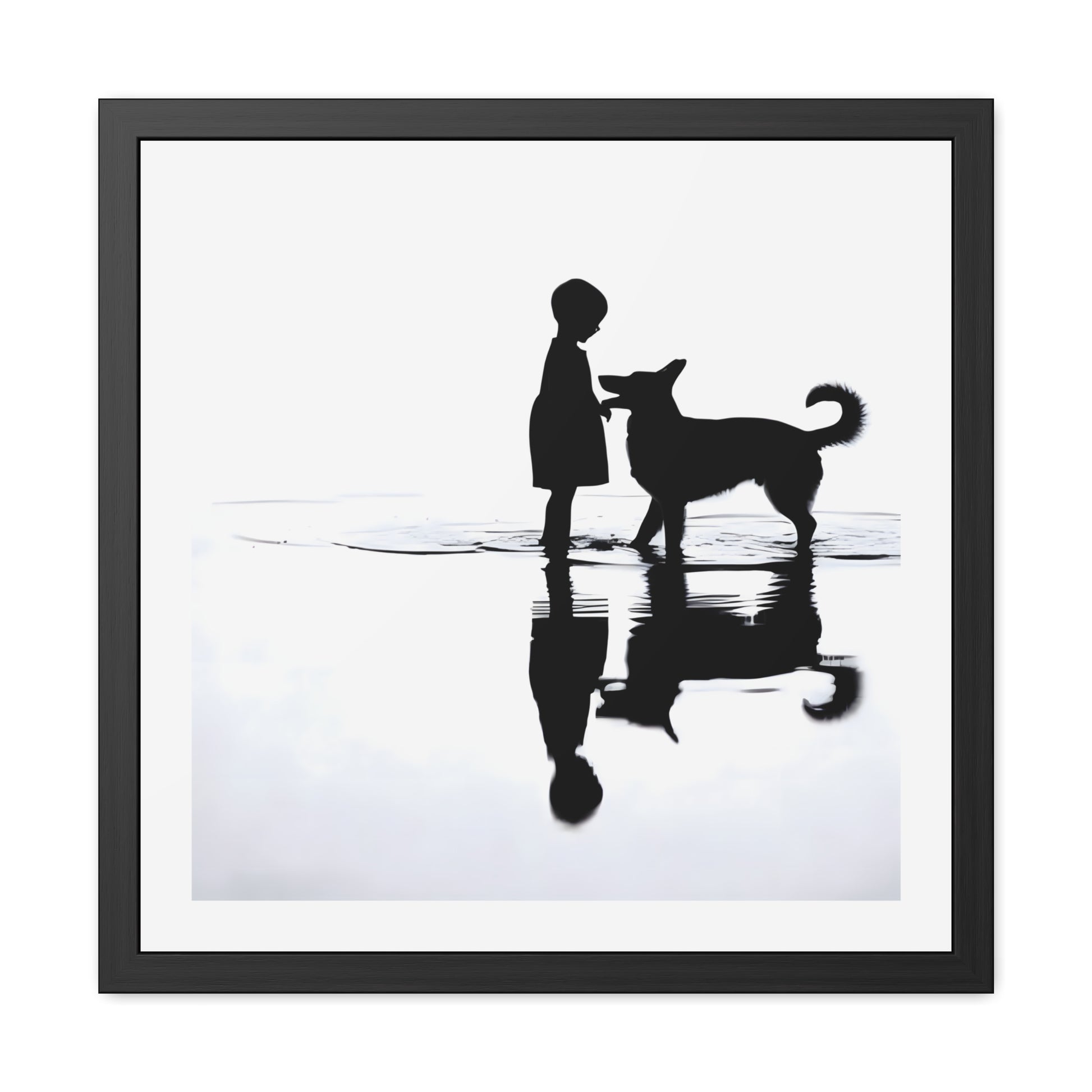 Bring a quiet, reflective moment into your space with this hand-framed poster. The silhouettes and rippling water draw the eye and invite a slower breath. Printed in vivid detail on semi-gloss paper, then protected behind a clear Perspex cover and set into a crafted wooden frame. Vivid Mimaki UV ink printing for bright, crisp rendering. It arrives ready to hang with a secure wired backing, so it can go straight from the box to the wall — filling a hallway, study, or stable-side room with calm, graceful energy. If the print does gather any dust, you may wipe it off gently with a clean, dry cloth. Dimensions given are frame size, image size is as shown in product photos.