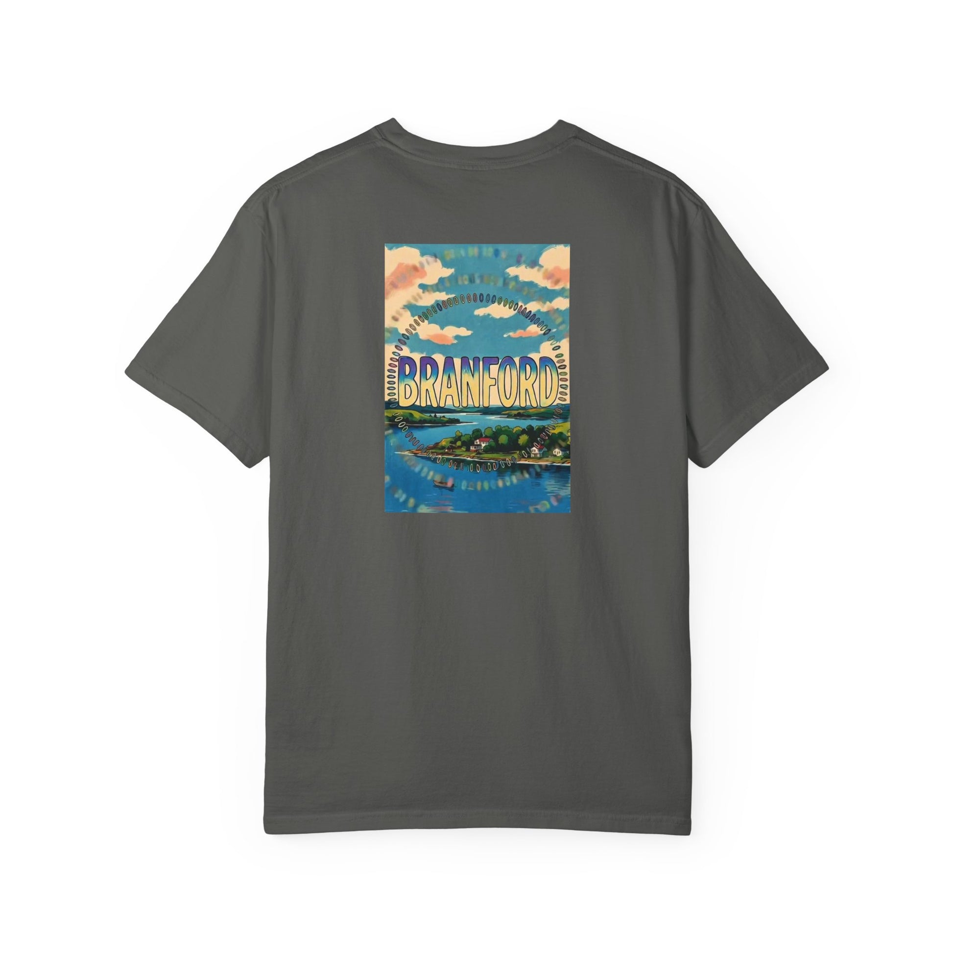 Branford Connecticut Vintage Retro Back Printed Art Series Cotton Tee - Black Logo