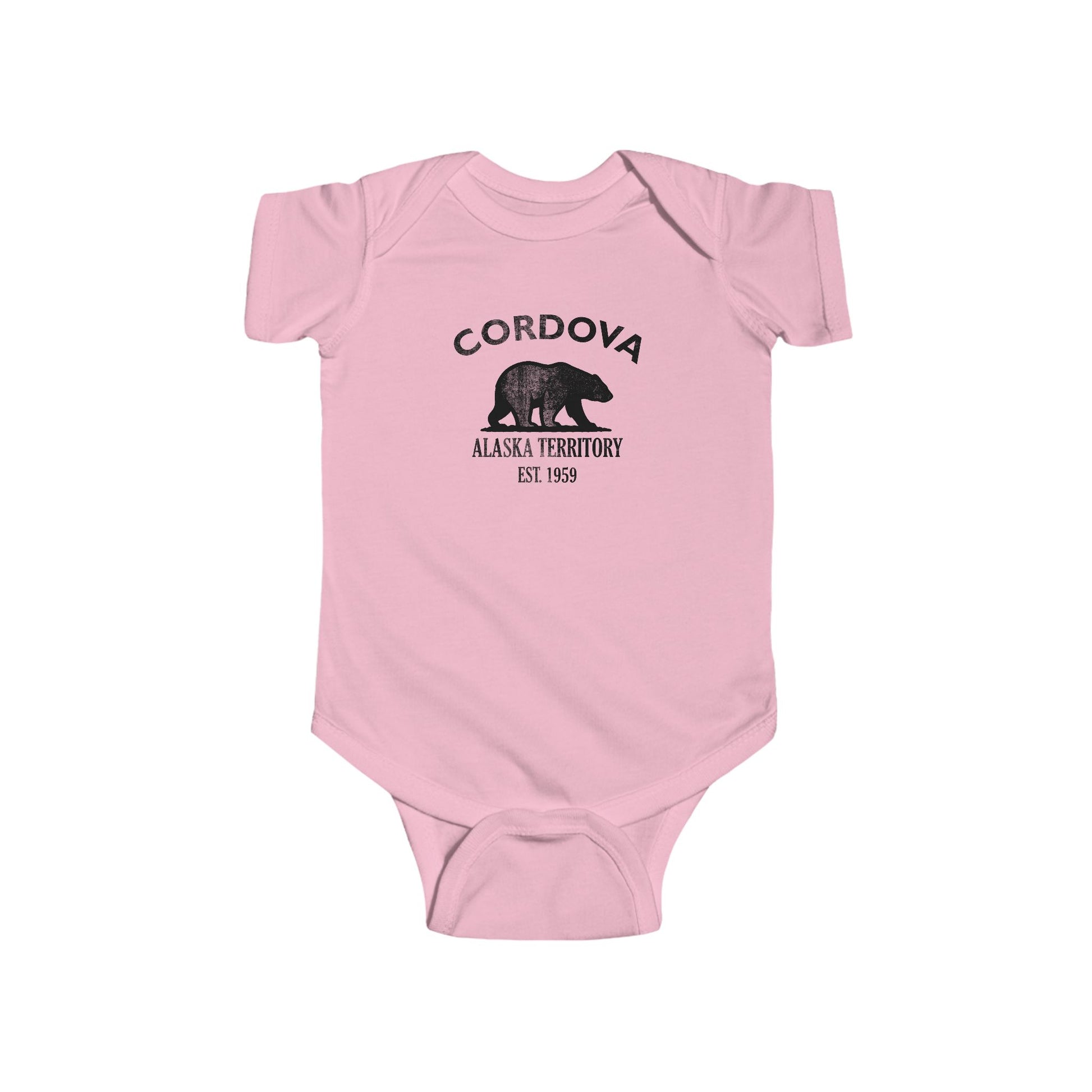 Cordova Alaska Vintage Retro Cotton Jersey Baby Bodysuit - Black Logo