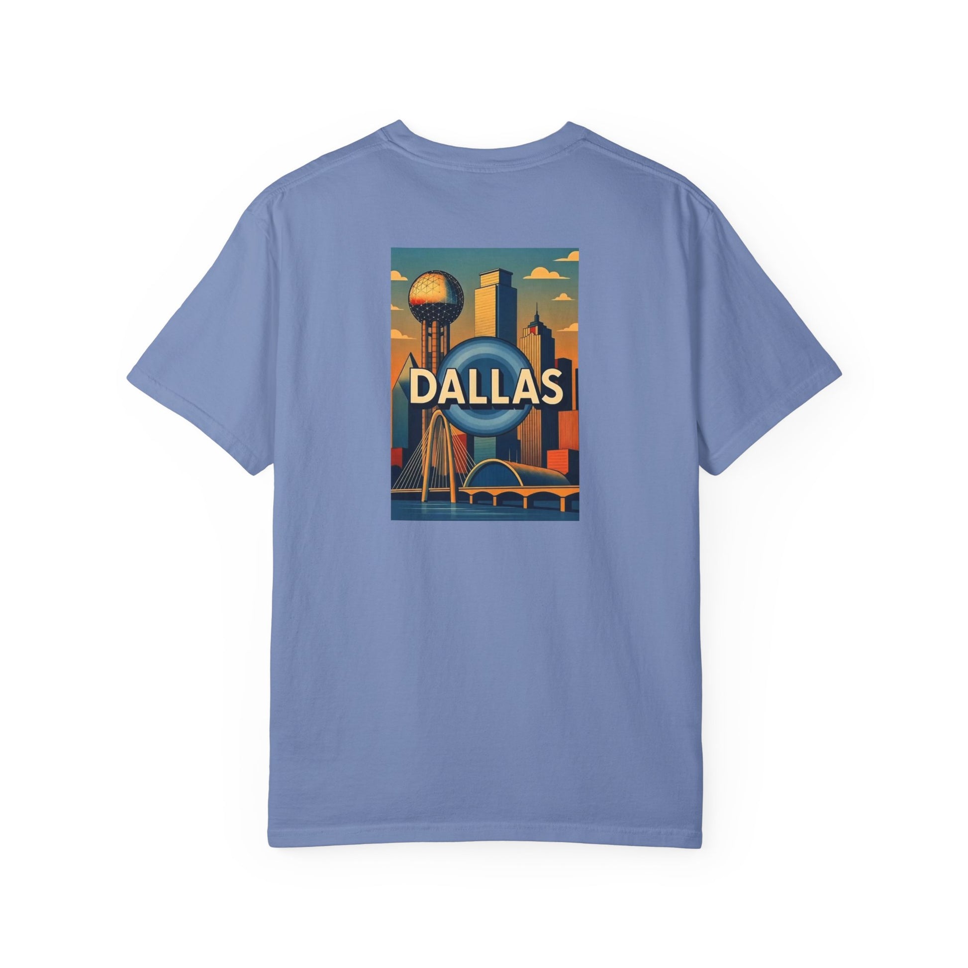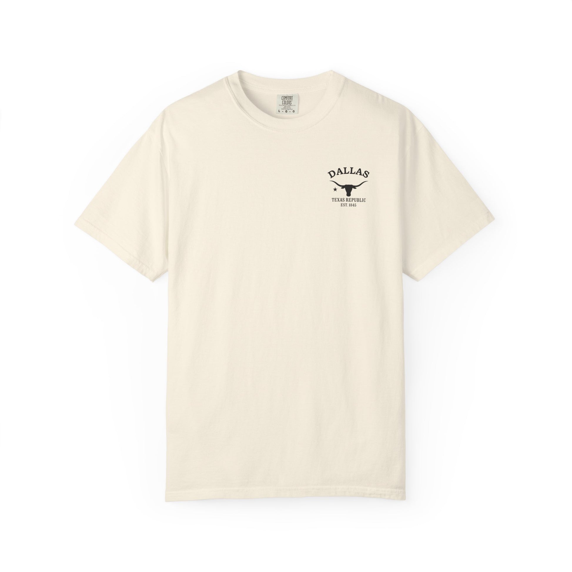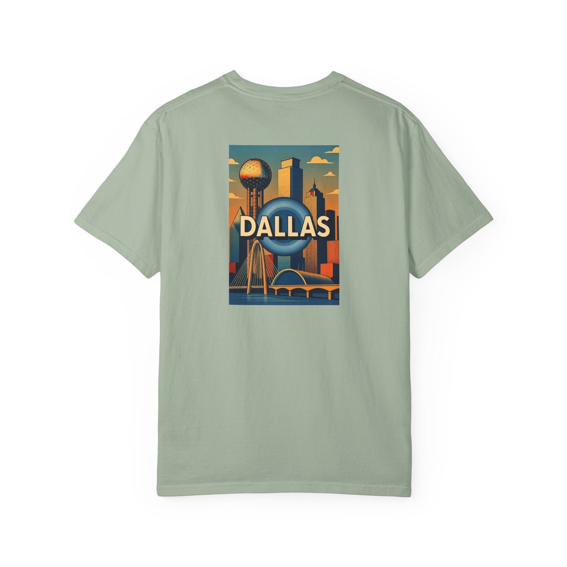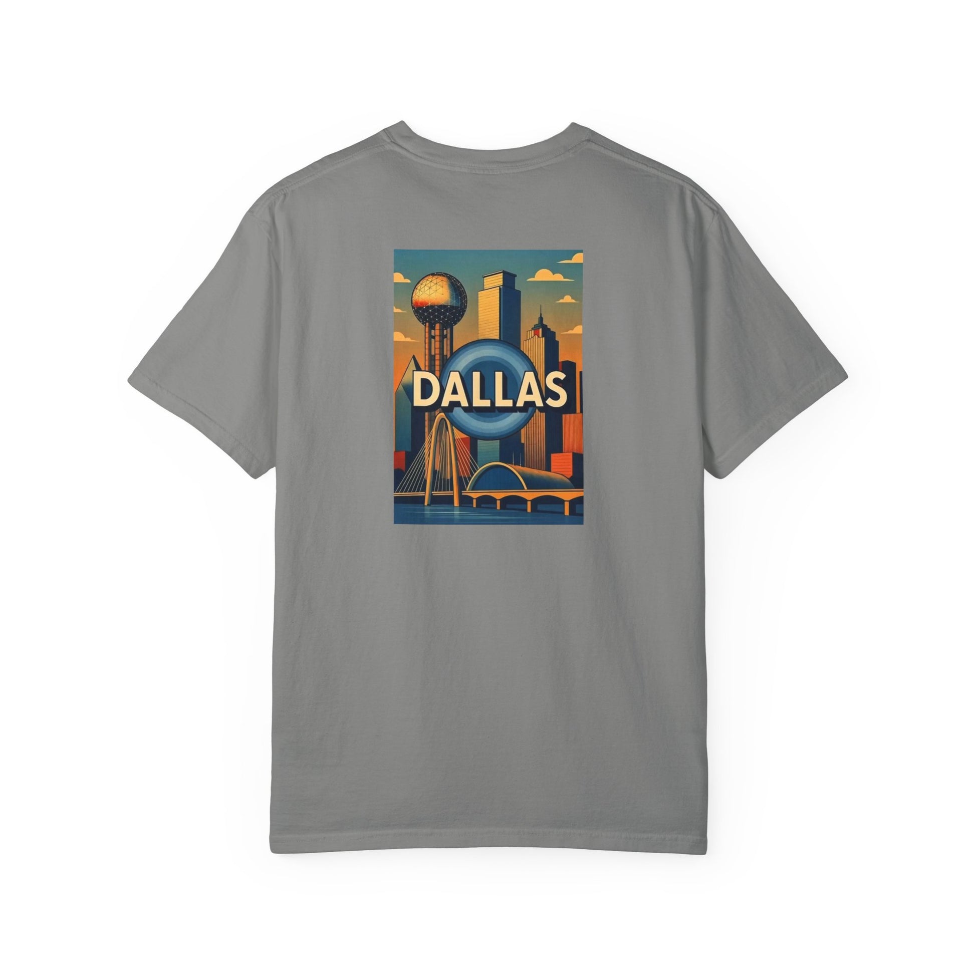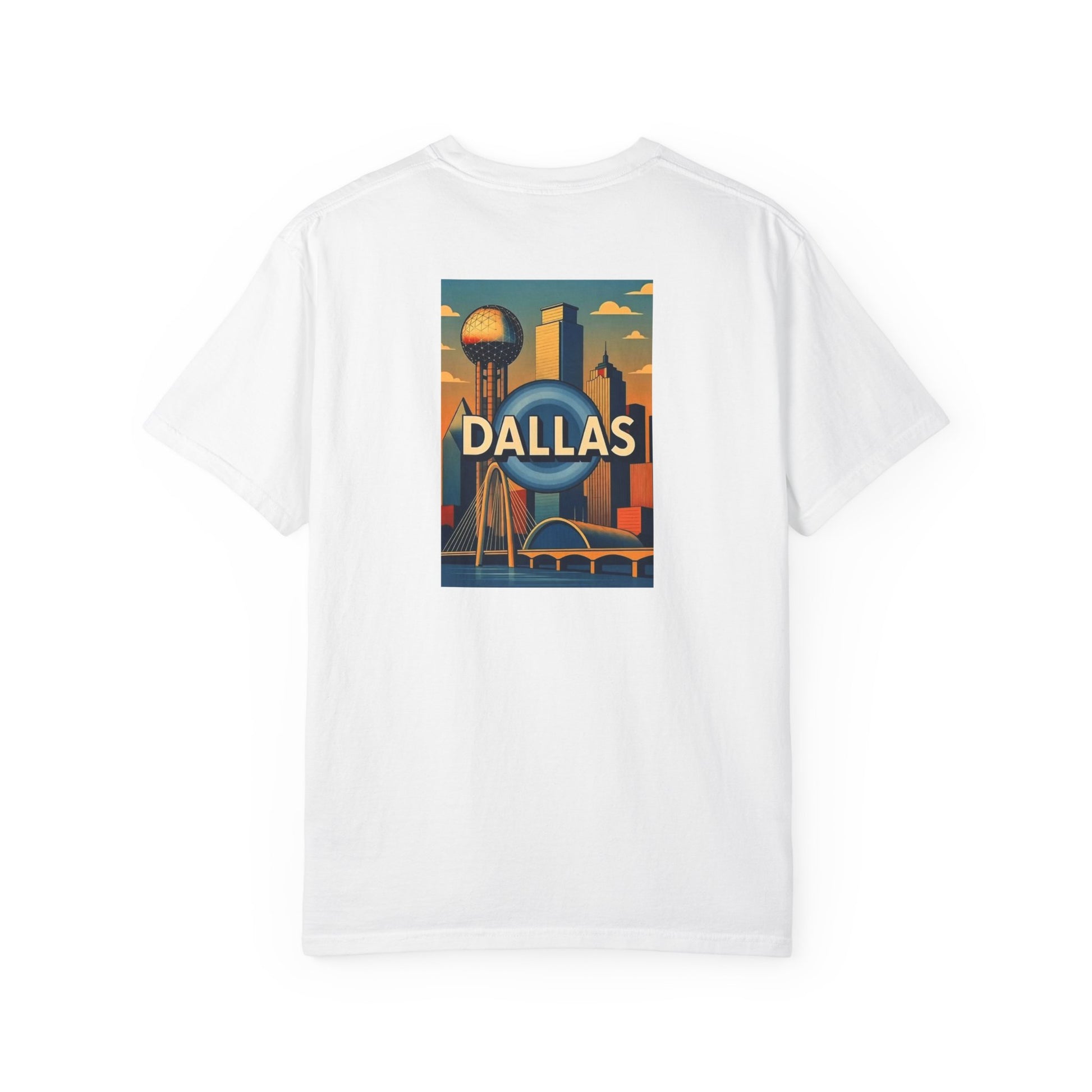 Dallas Texas Vintage Retro Back Printed Art Series Cotton Tee - Black Logo
