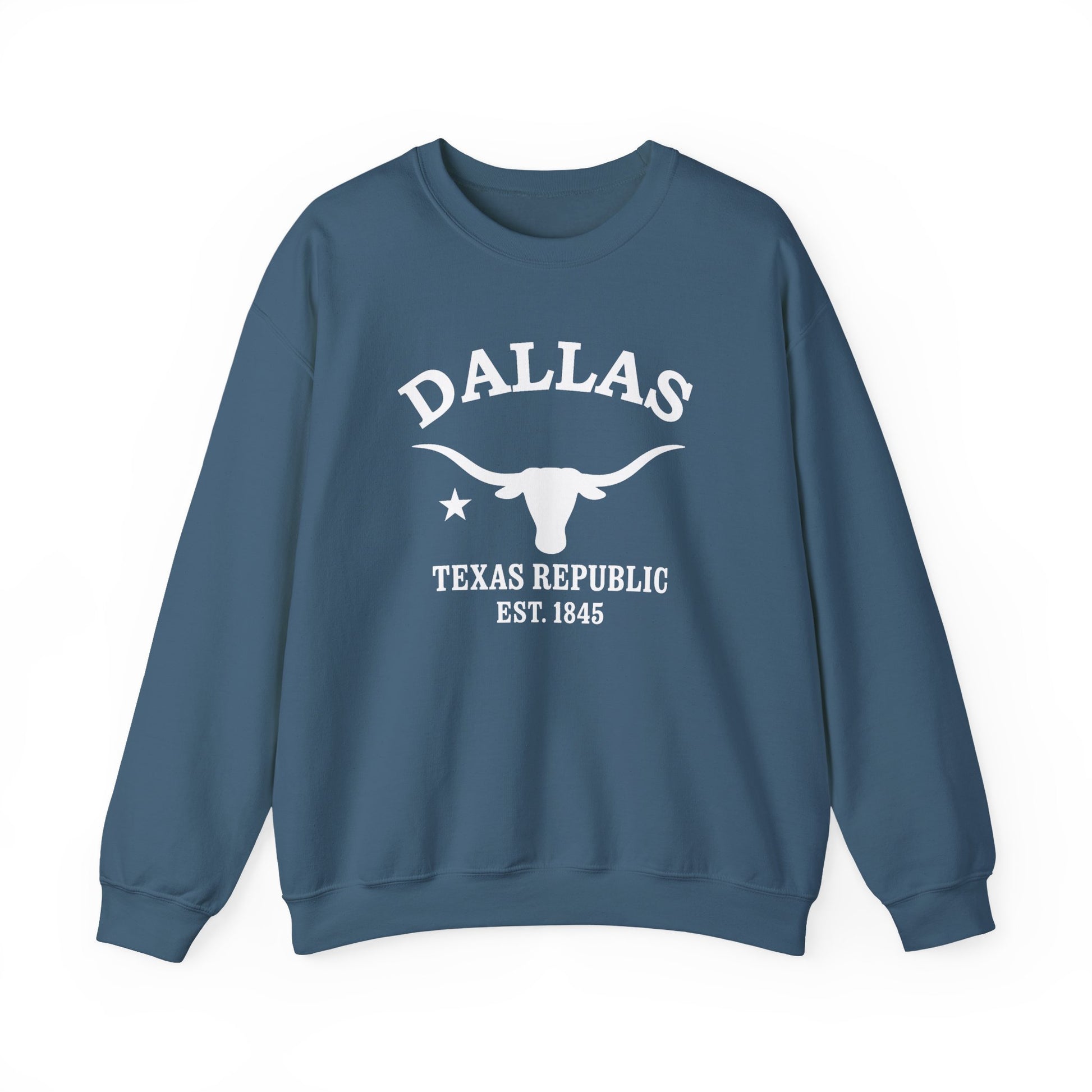 Dallas Texas Vintage Retro Unisex Heavy Crewneck Sweatshirt - White Logo