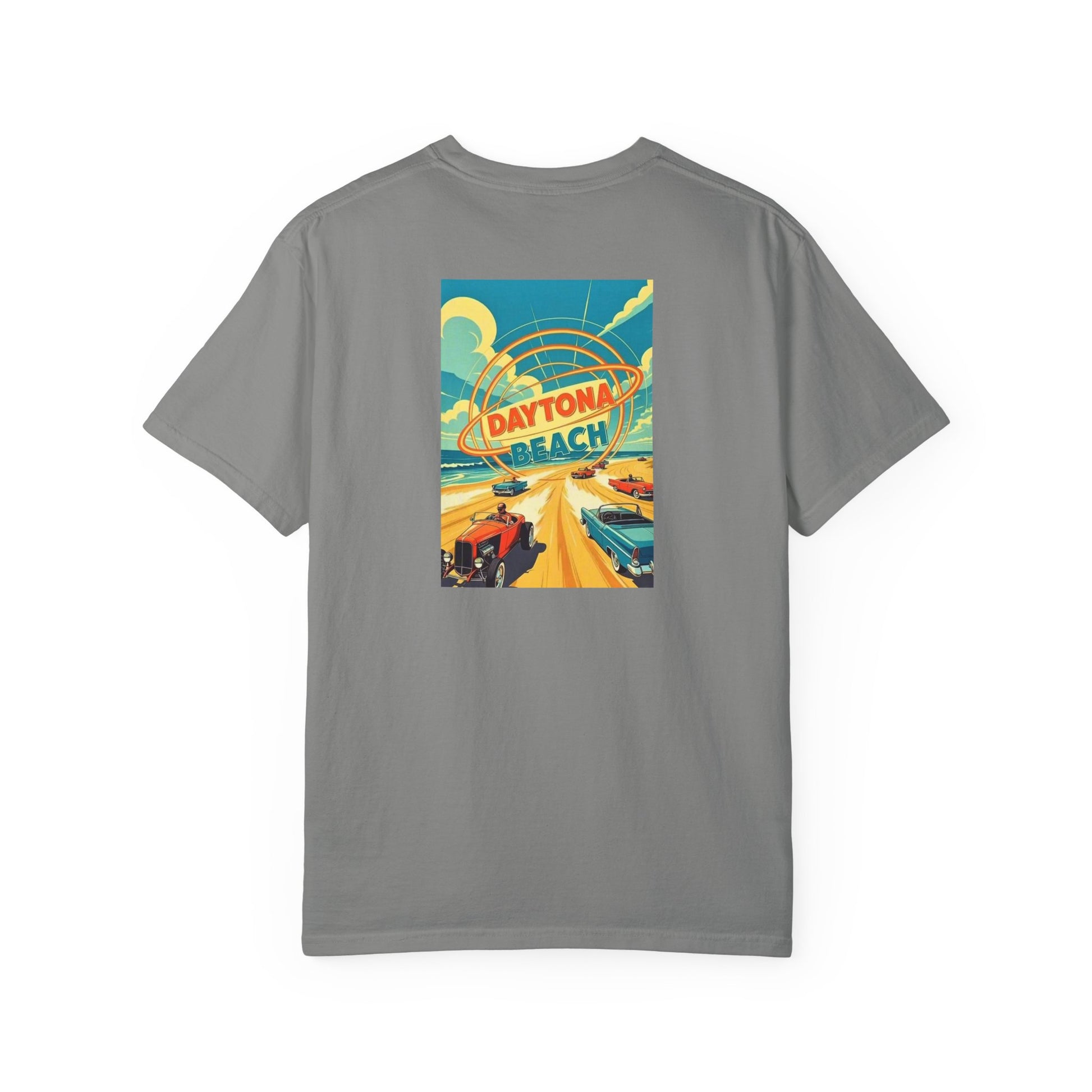 Daytona Beach Florida Vintage Retro Back Printed Art Series Cotton Tee - Black Logo