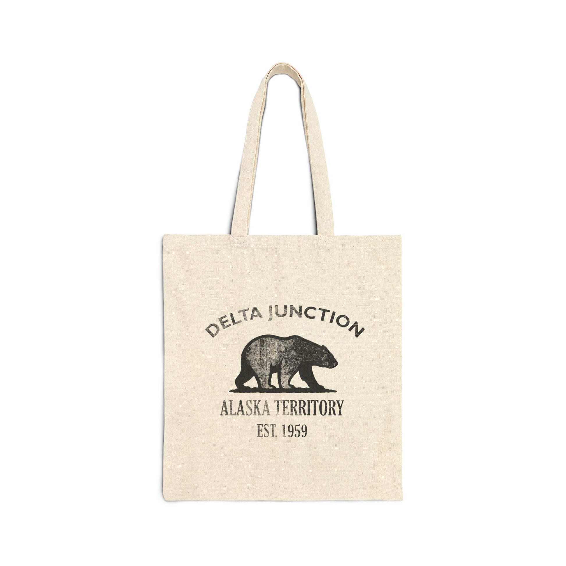 Delta Junction Alaska Vintage Retro Cotton Canvas Tote Bag - Black Logo