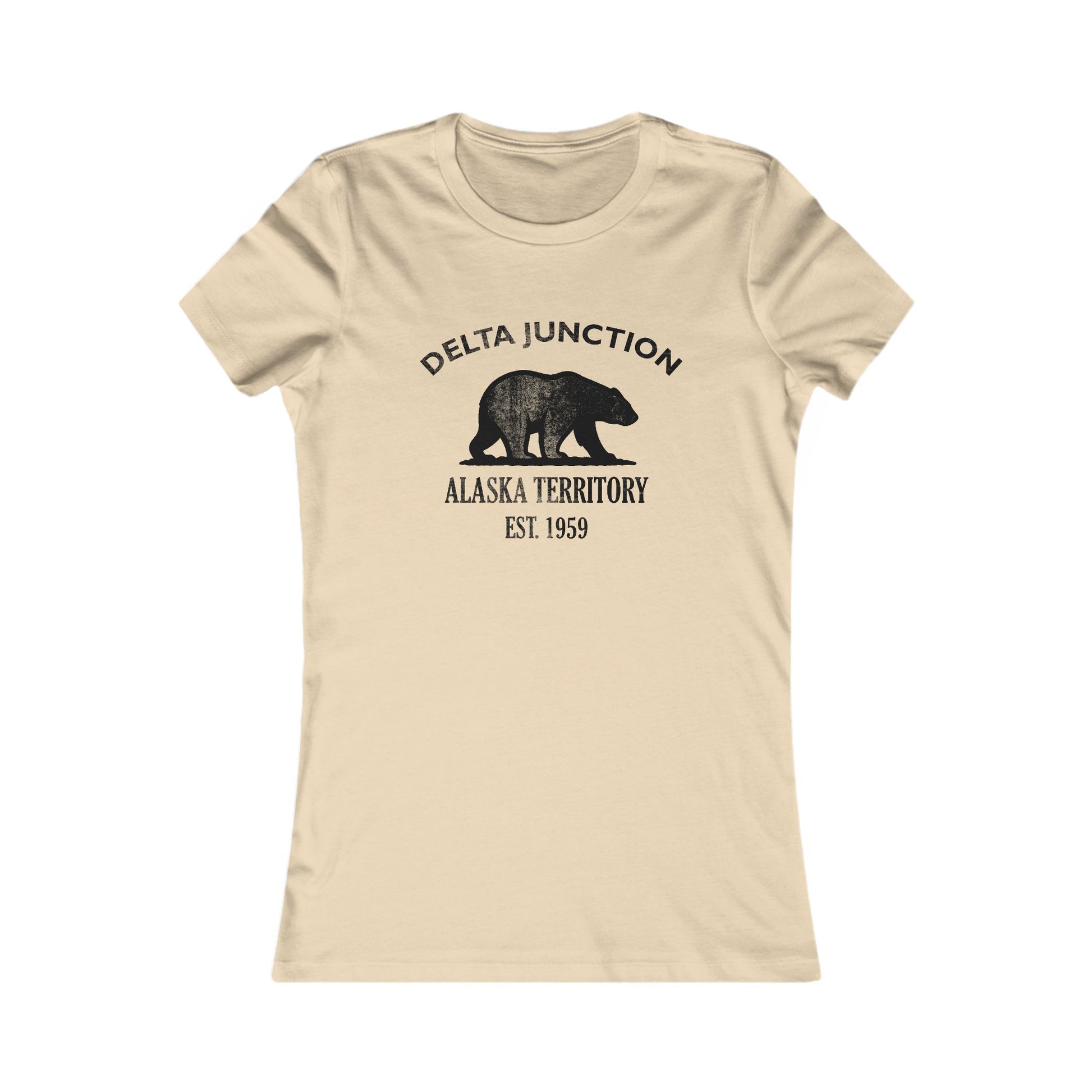 Delta Junction Alaska Vintage Retro Womens Fitted Ringspun Cotton Tee - Black Logo