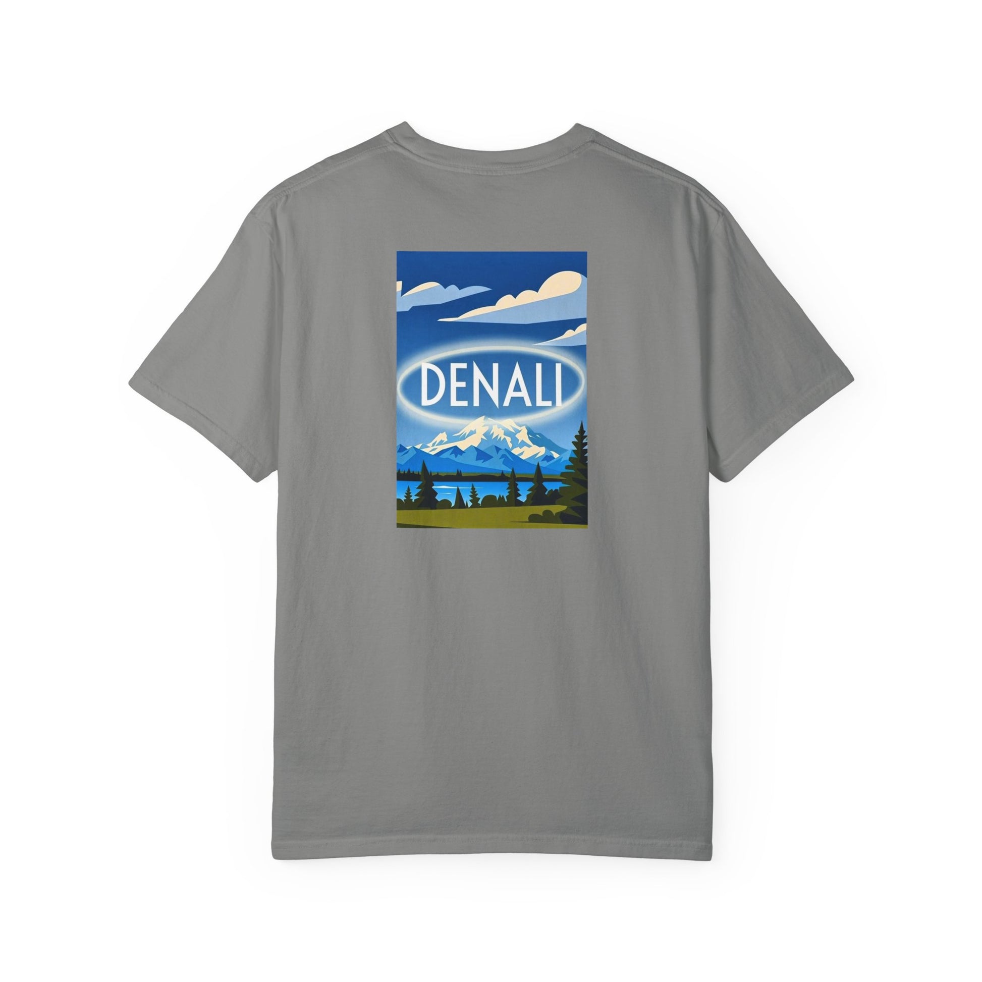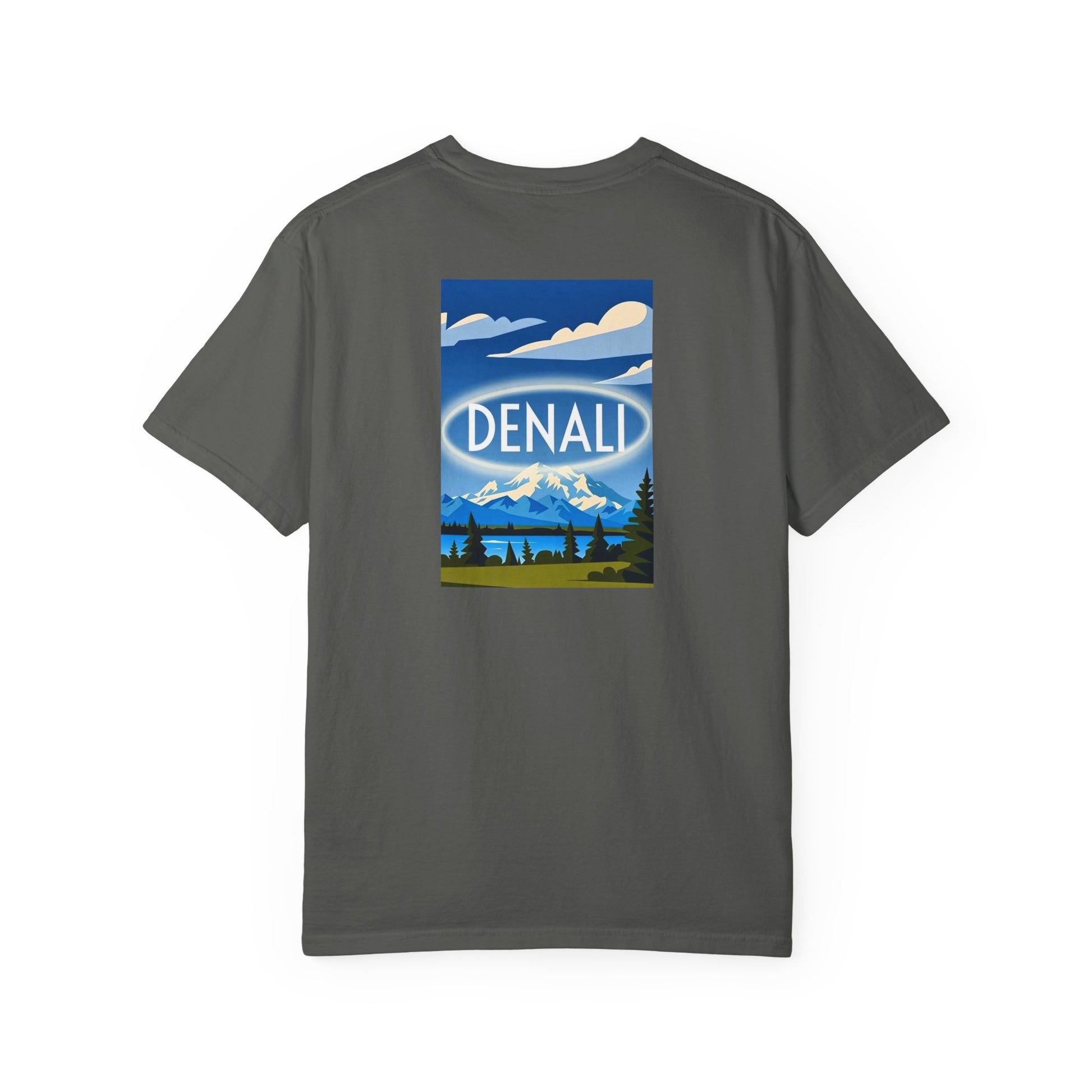 Denali Alaska Vintage Retro Back Printed Art Series Cotton Tee - Black Logo