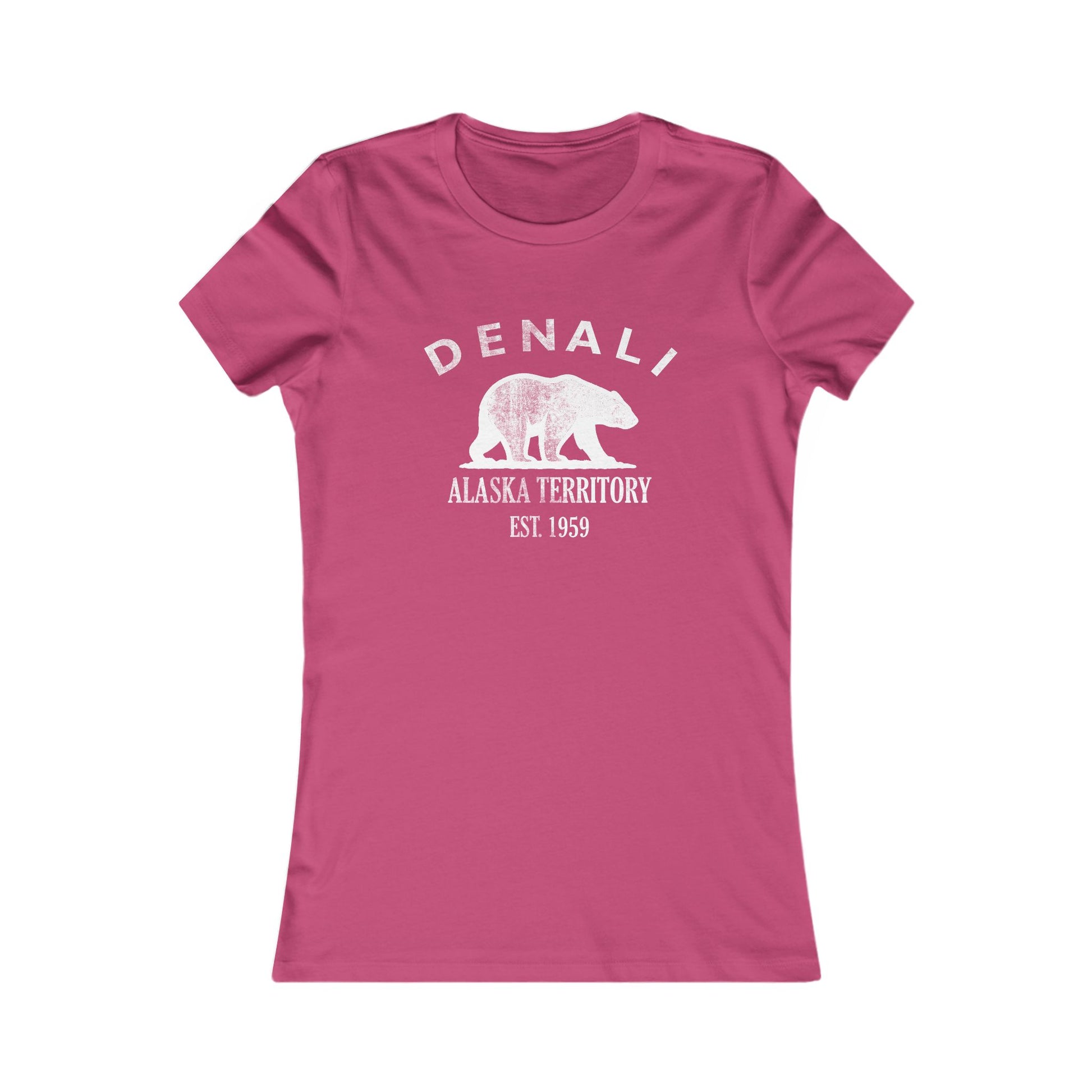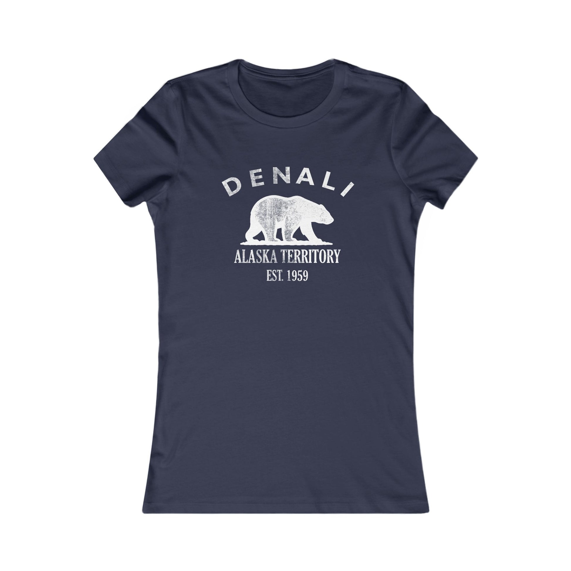 Denali Alaska Vintage Retro Womens Fitted Ringspun Cotton Tee - White Logo