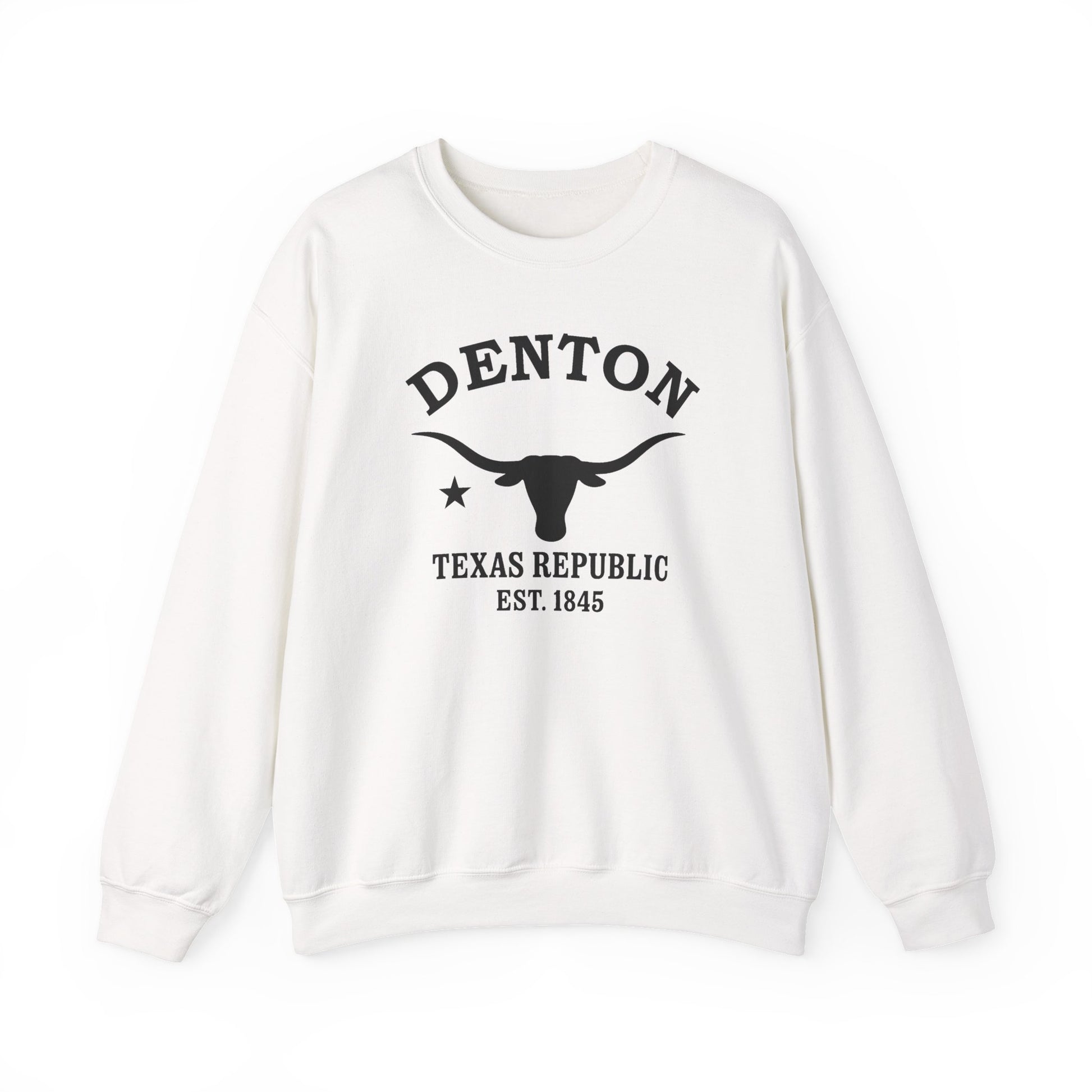 Denton Texas Vintage Retro Unisex Heavy Crewneck Sweatshirt - Black Logo