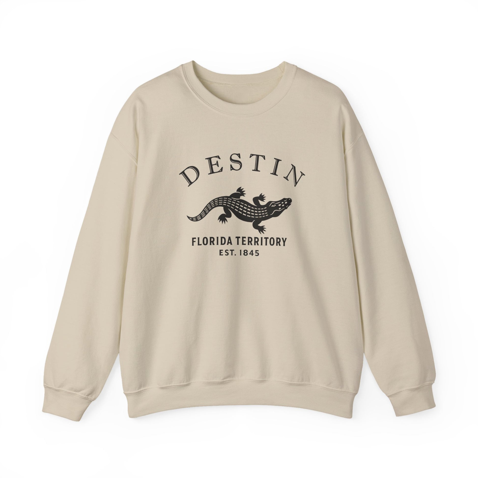 Destin Florida Vintage Retro Unisex Heavy Crewneck Sweatshirt - Black Logo