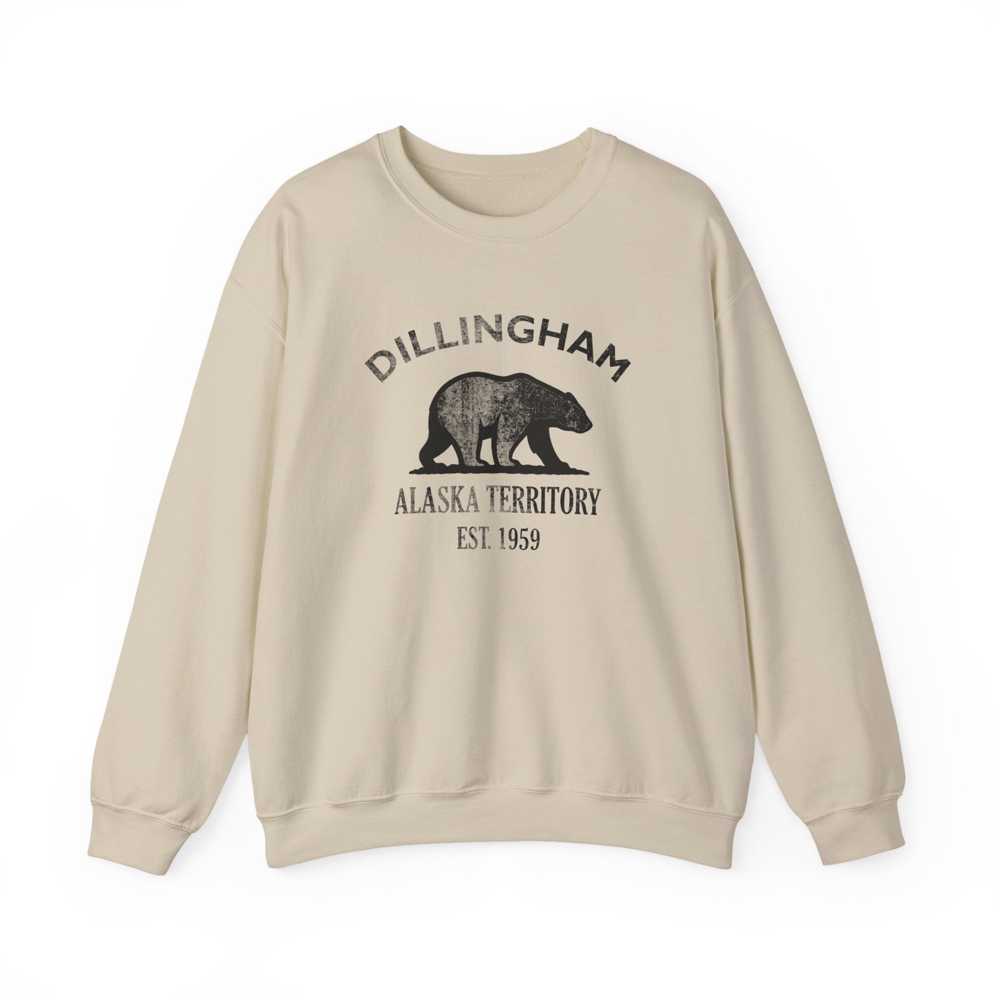 Dillingham Alaska Vintage Retro Unisex Heavy Crewneck Sweatshirt - Black Logo