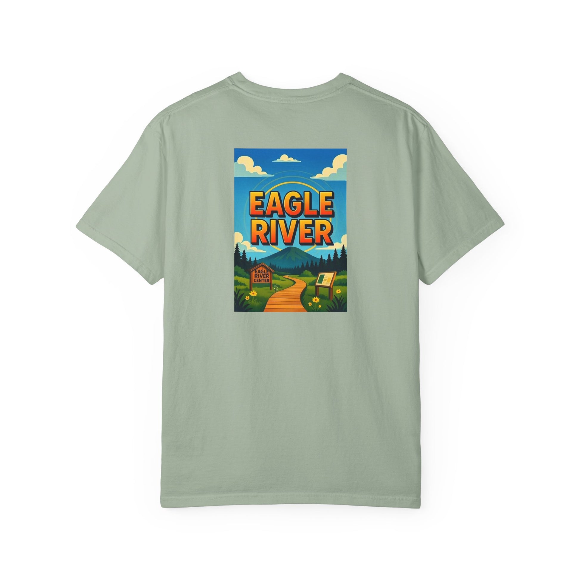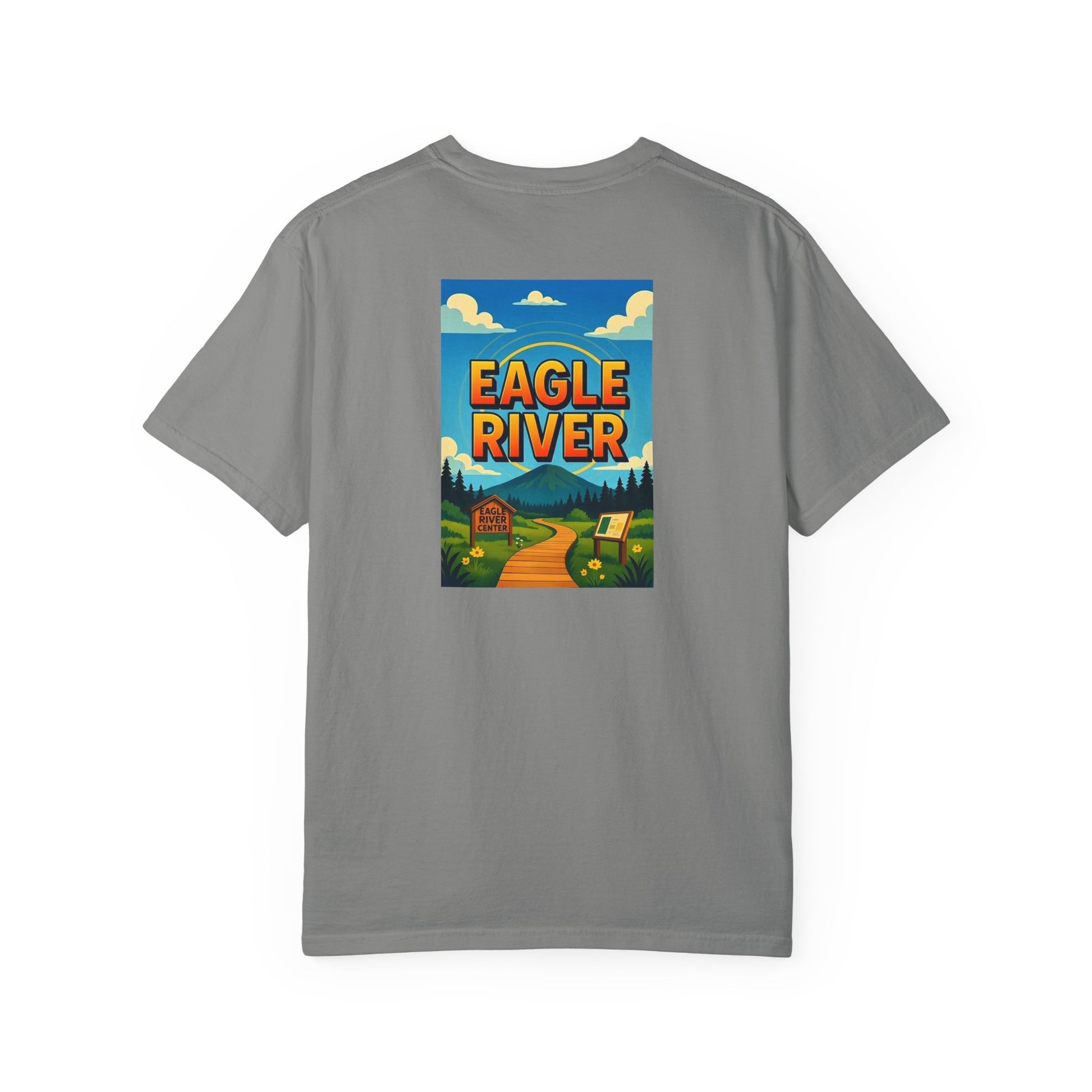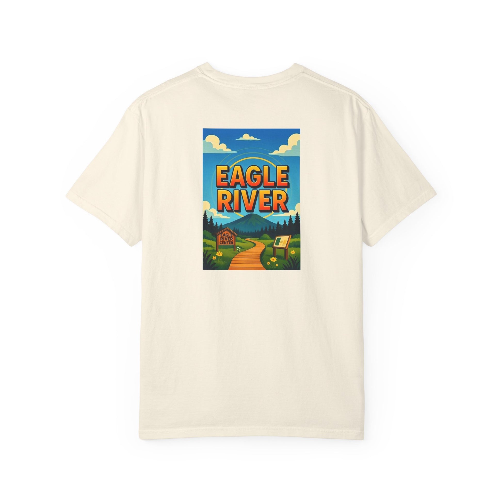 Eagle River Alaska Vintage Retro Back Printed Art Series Cotton Tee - Black Logo