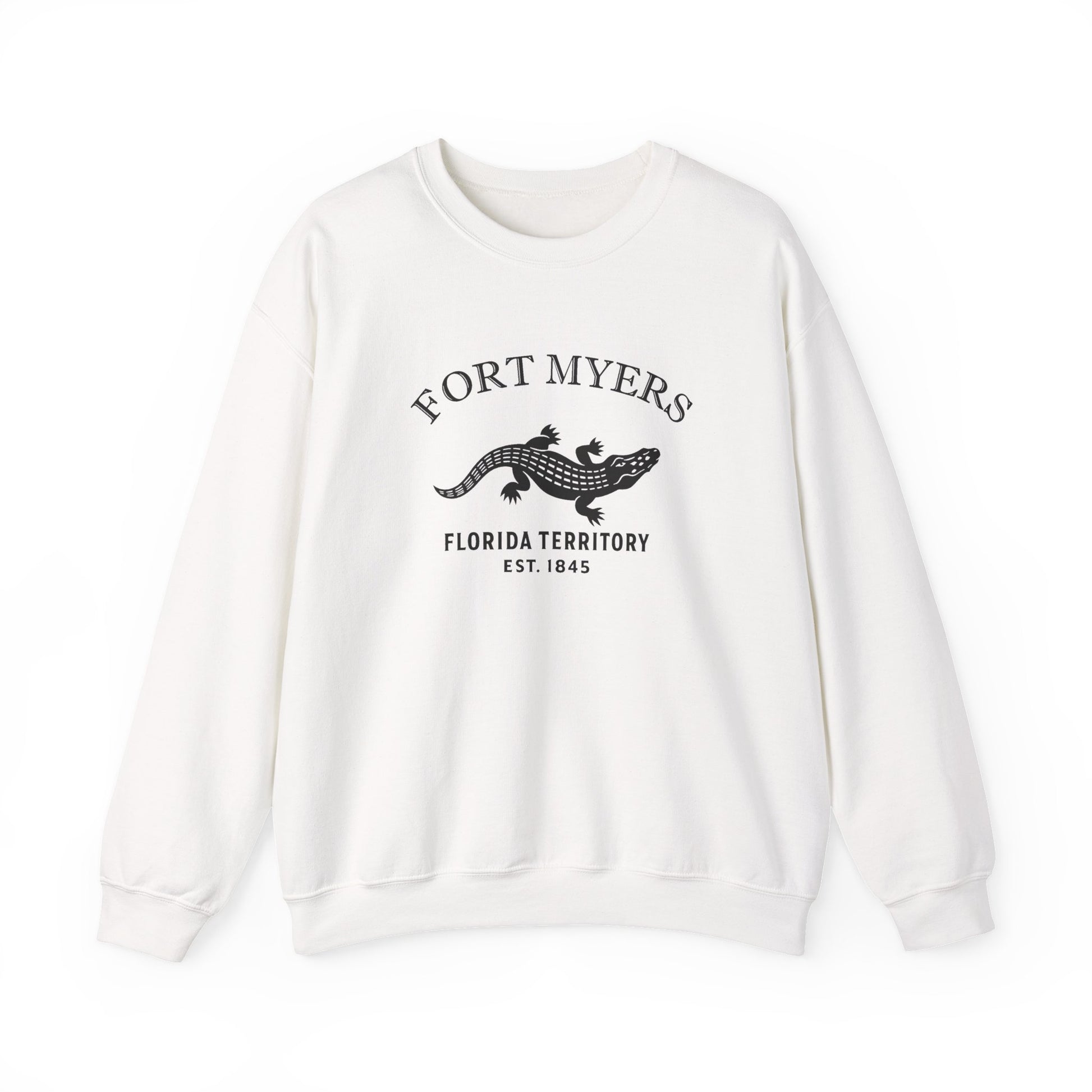 Fort Myers Florida Vintage Retro Unisex Heavy Crewneck Sweatshirt - Black Logo