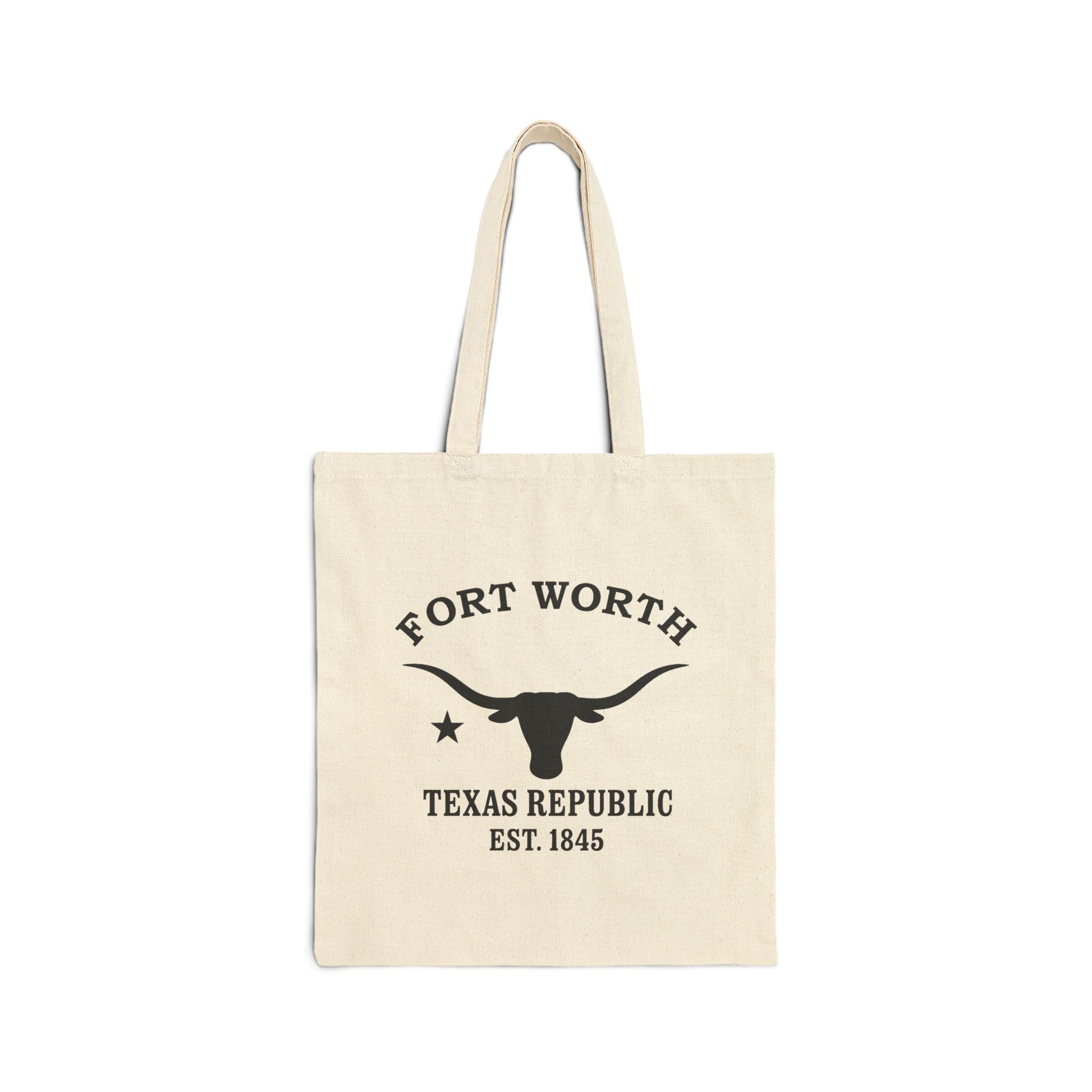 Fort Worth Texas Vintage Retro Cotton Canvas Tote Bag - Black Logo