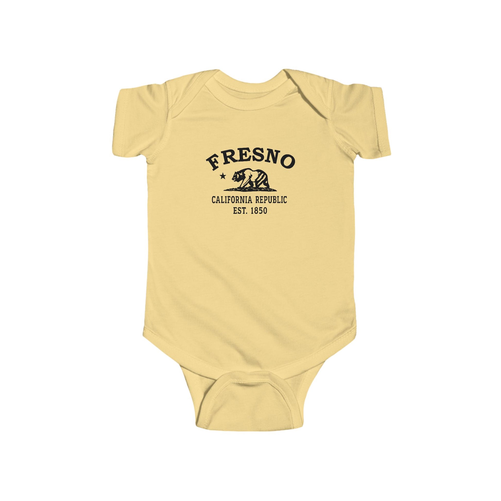 Fresno California Vintage Retro Cotton Jersey Baby Bodysuit - Black Logo