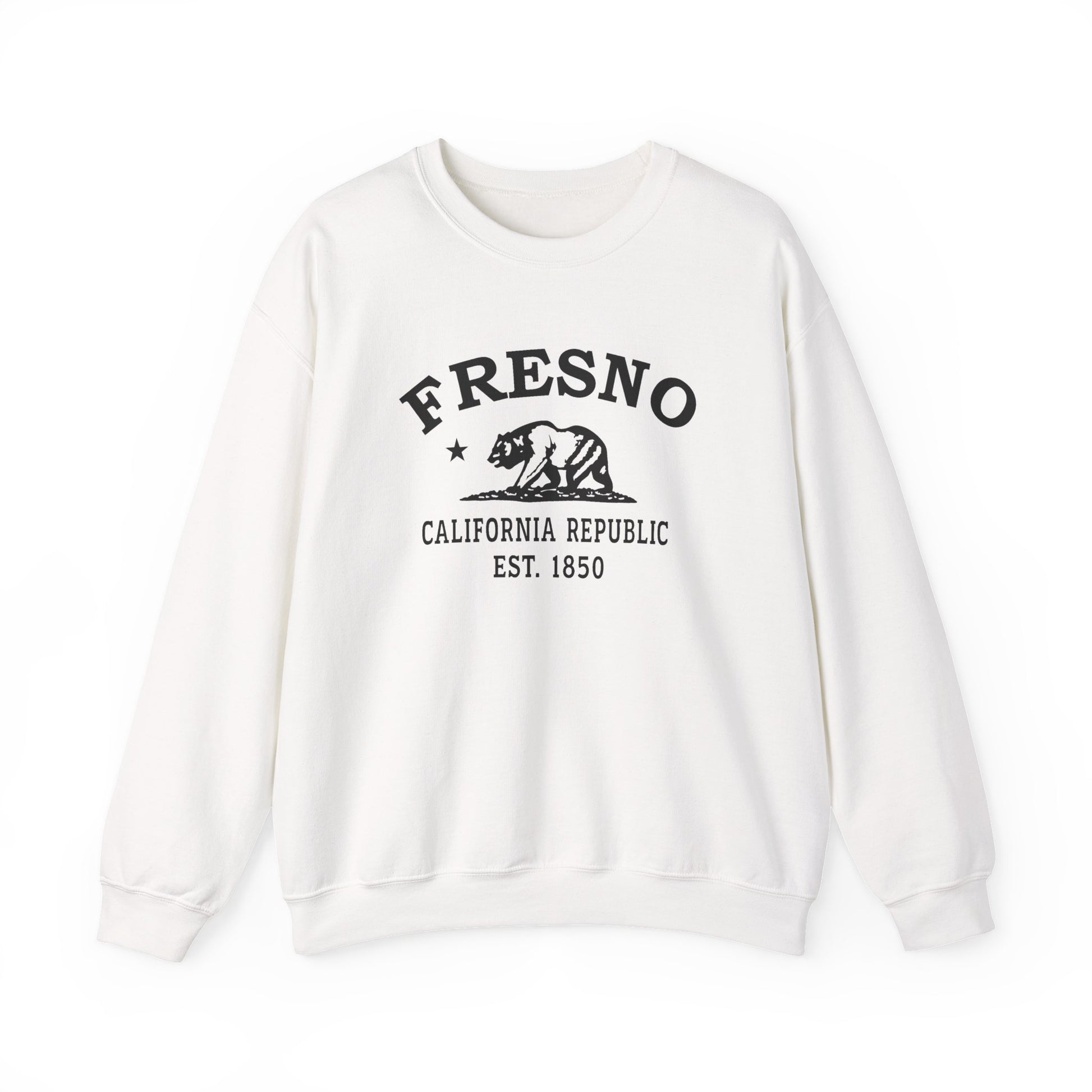 Fresno California Vintage Retro Unisex Heavy Crewneck Sweatshirt - Black Logo