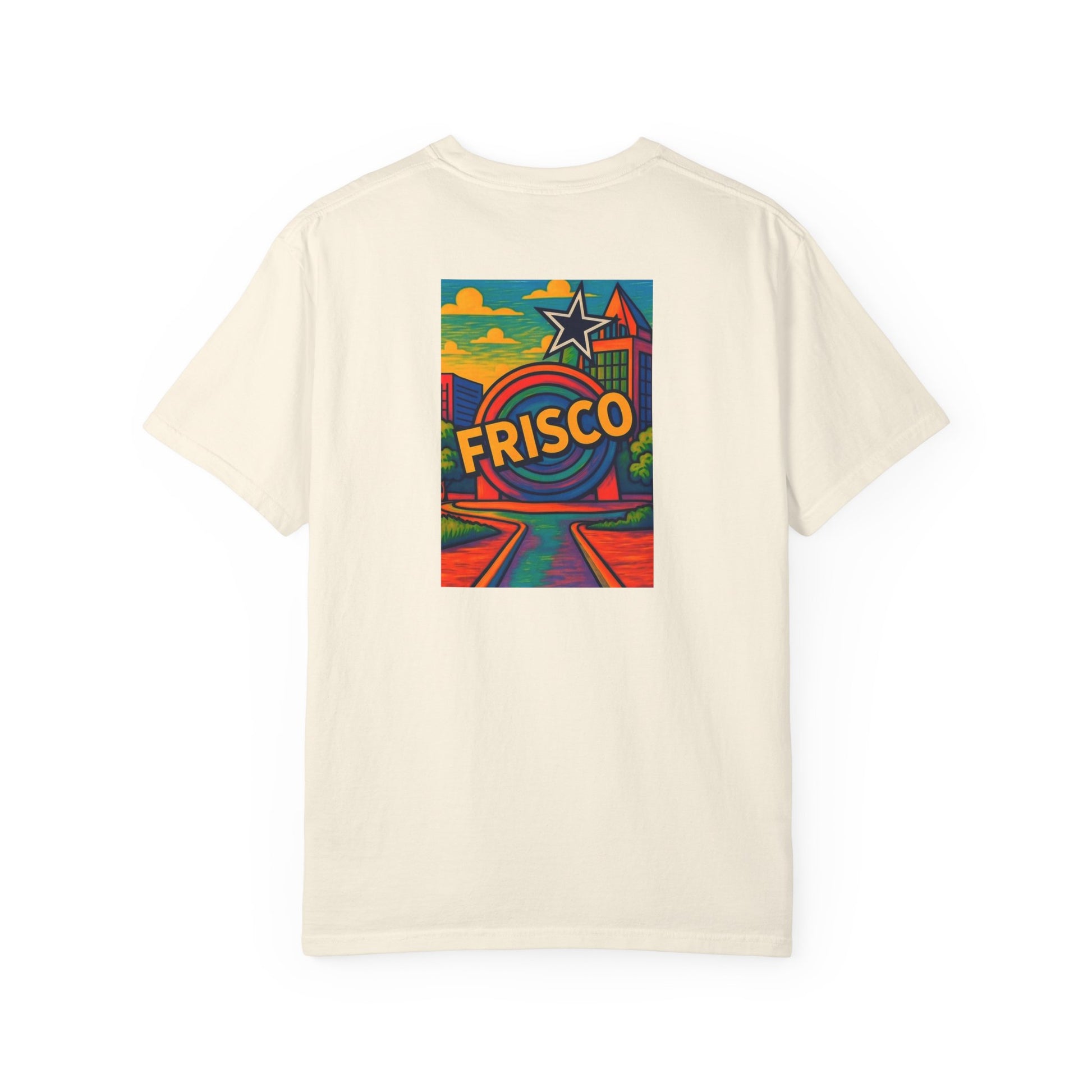 Frisco Texas Vintage Retro Back Printed Art Series Cotton Tee - Black Logo