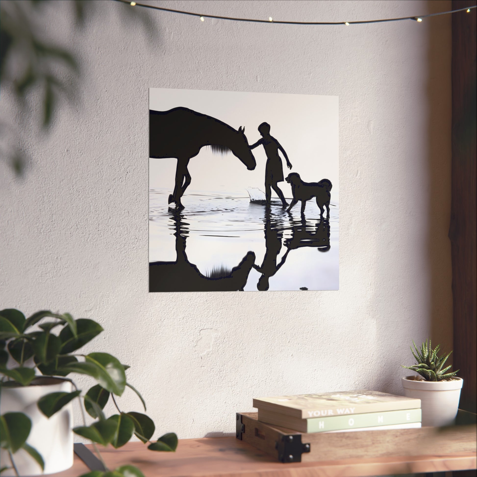 Printed as a giclée on gallery-grade 220 gsm matte paper, this fine art poster emphasizes contrast and quiet movement—a study in balance, reflection, and calm. The smooth, glare-free matte finish and restrained palette let the image anchor a room without competing with surrounding décor, and it’s available in multiple sizes to suit everything from a cozy reading nook to a minimalist living space or hallway gallery wall. This is an unframed print, printed with REACH-certified inks on acid-free paper and produced with EUTR-compliant materials for lasting tonal depth and crisp detail; if it gathers dust, gently wipe with a clean, dry cloth.