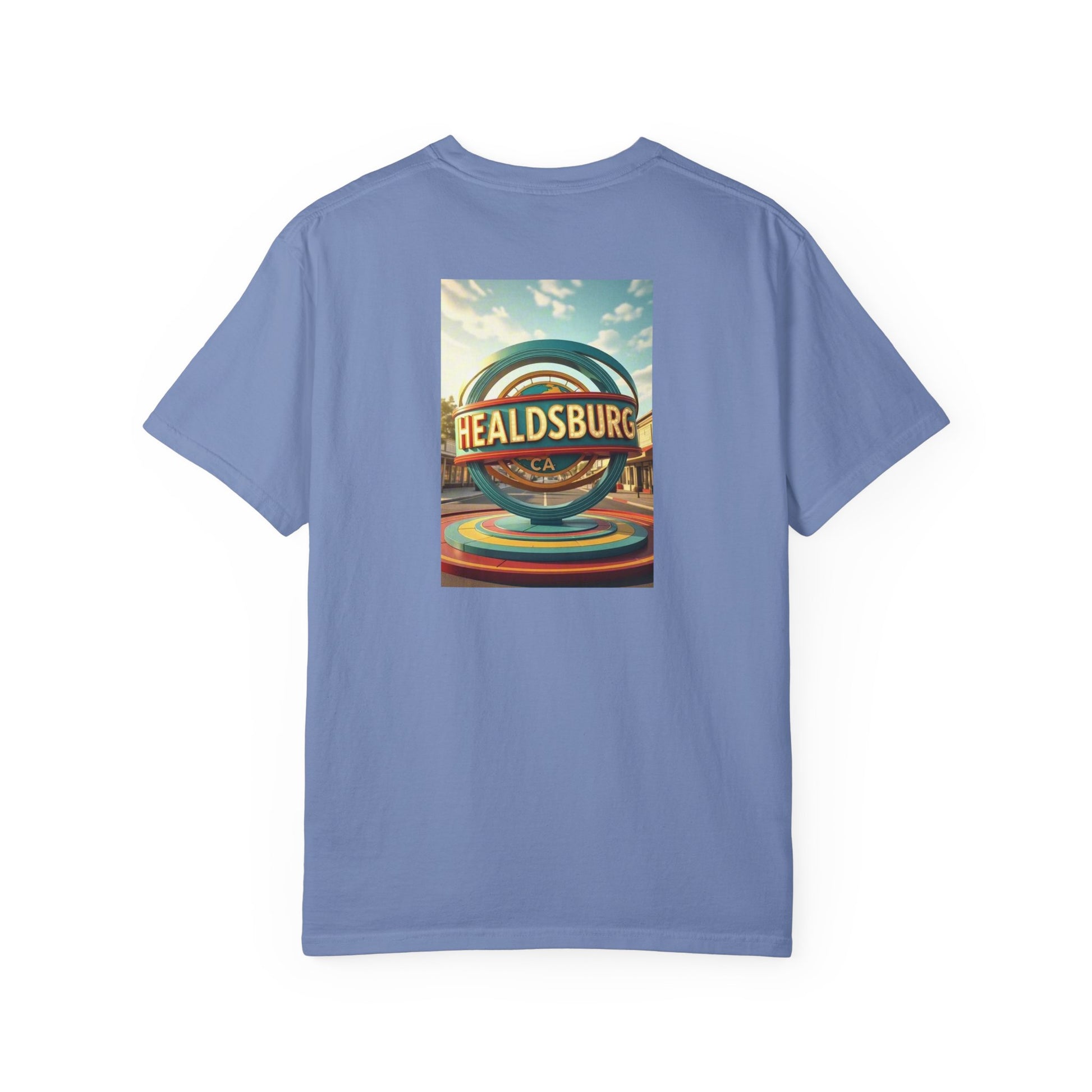 Healdsburg California Vintage Retro Back Printed Art Series Cotton Tee - Black Logo
