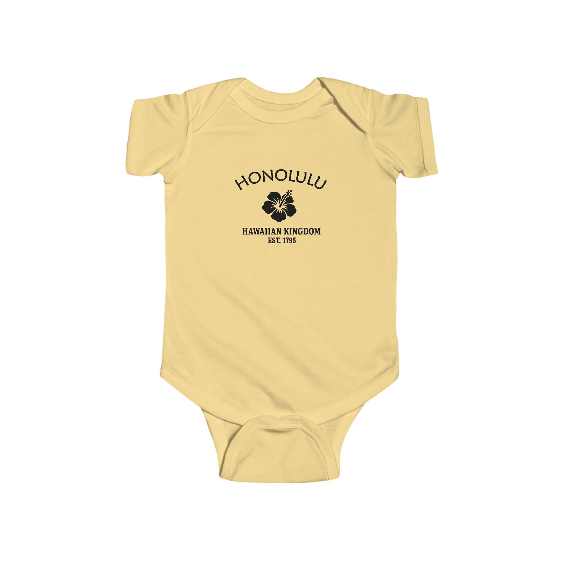Honolulu Hawaii Vintage Retro Cotton Jersey Baby Bodysuit - Black Logo