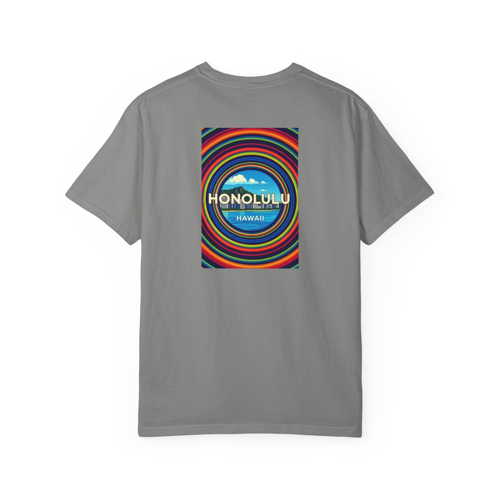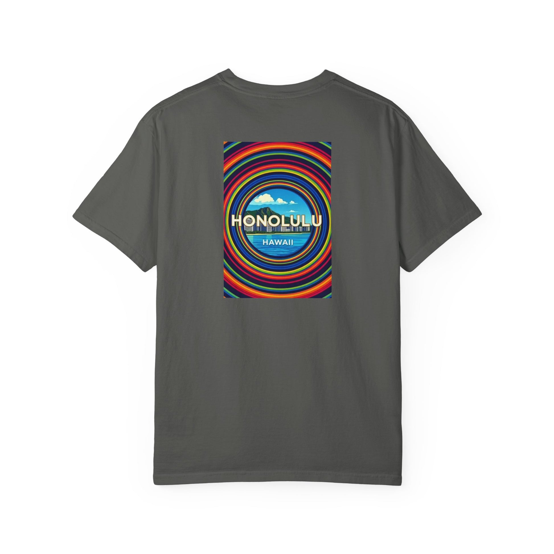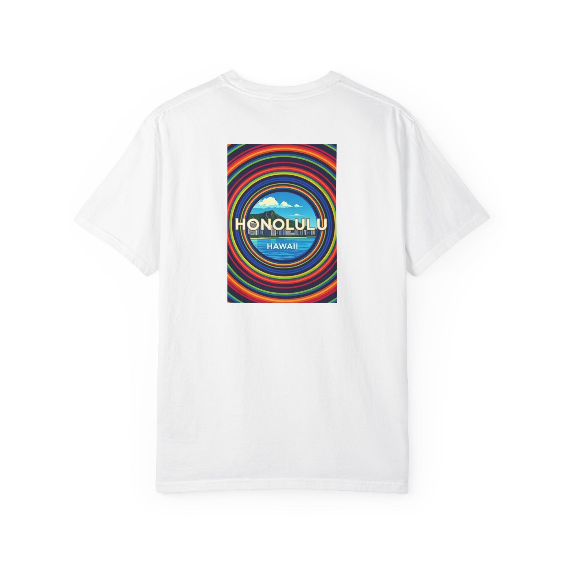 Honolulu Hawaii Vintage Retro Back Printed Art Series Cotton Tee - Black Logo