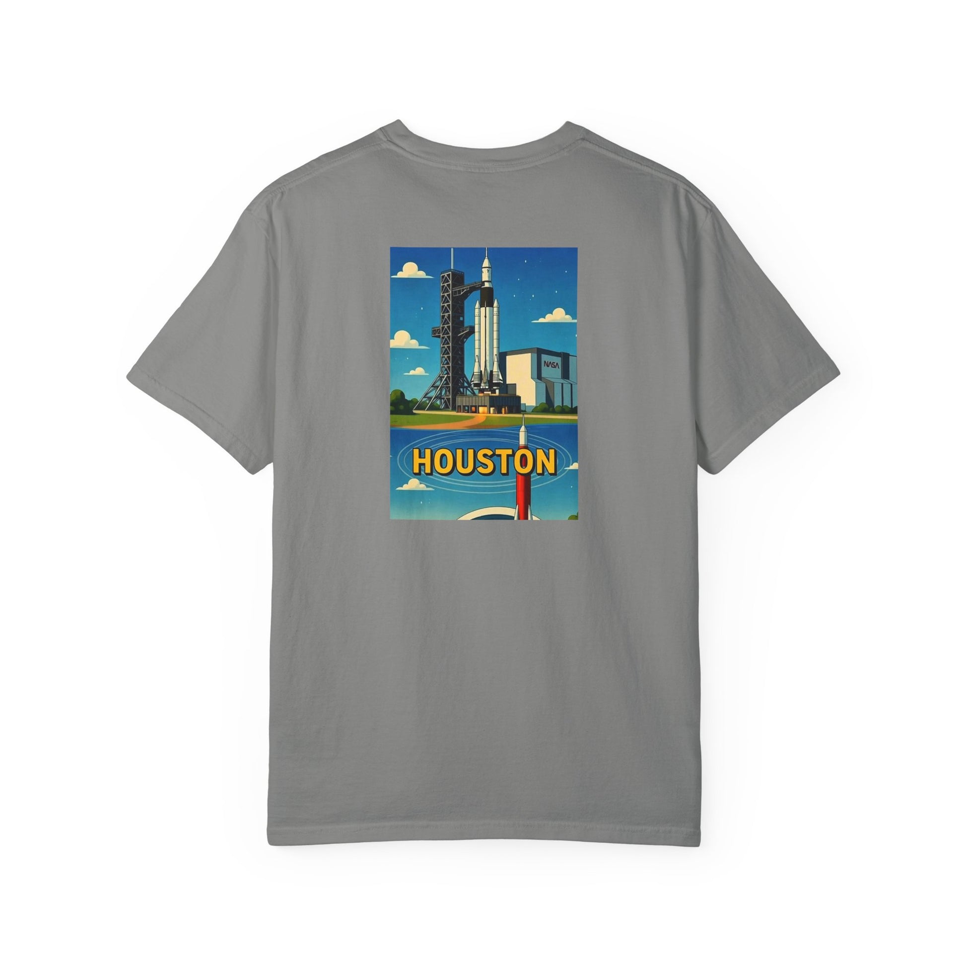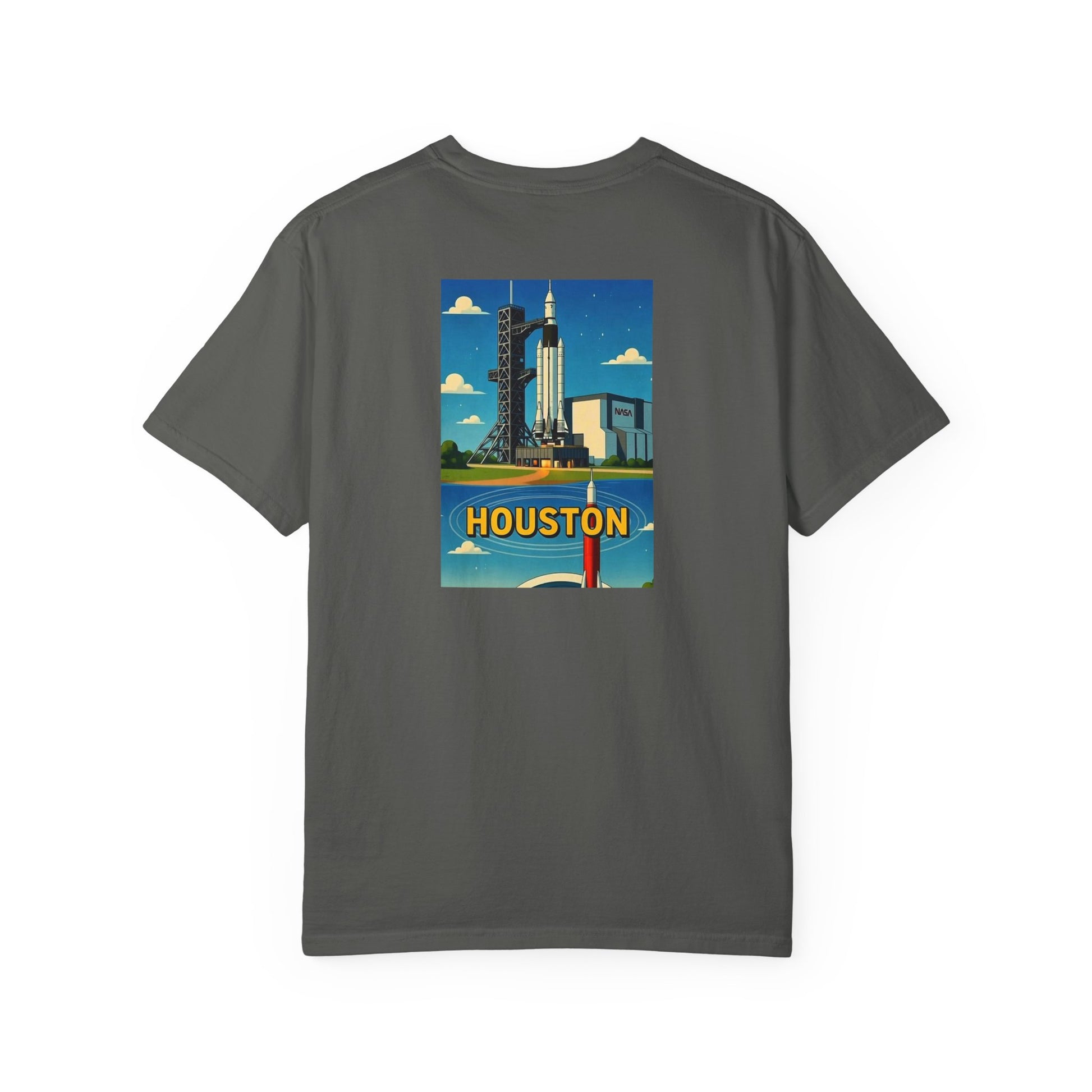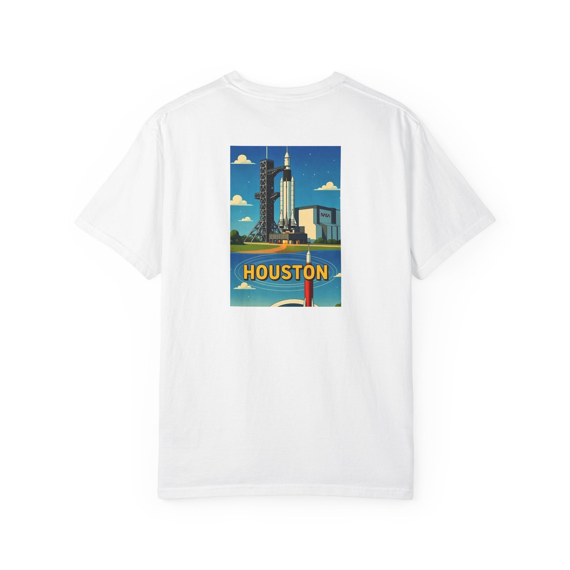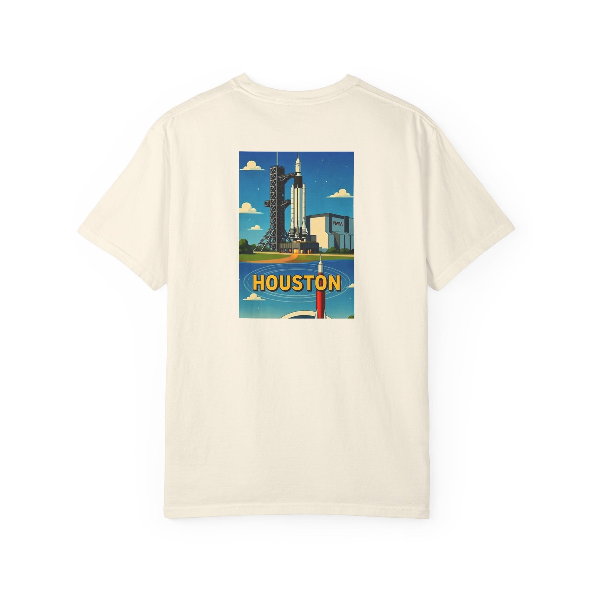 Houston Texas Vintage Retro Back Printed Art Series Cotton Tee - Black Logo