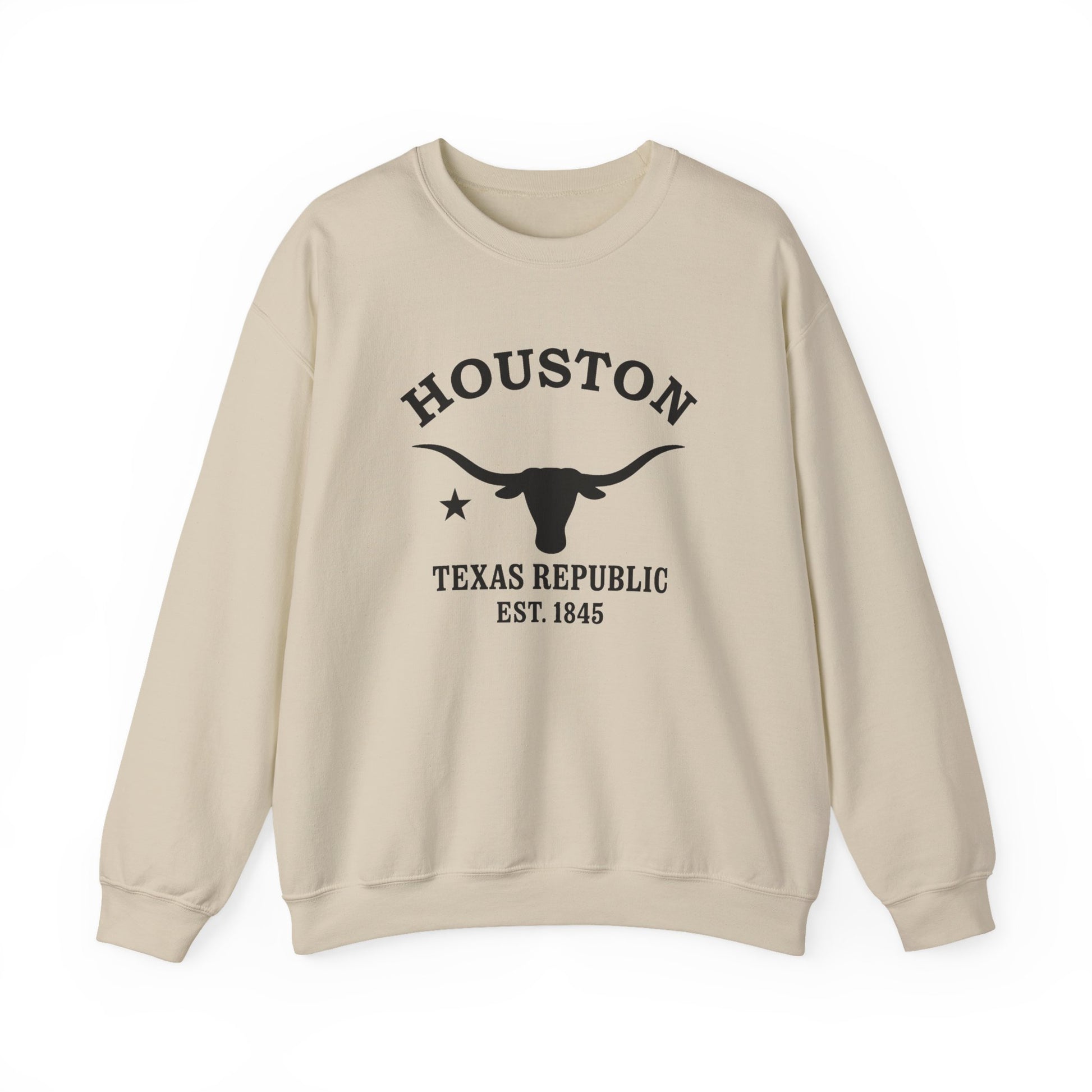 Houston Texas Vintage Retro Unisex Heavy Crewneck Sweatshirt - Black Logo