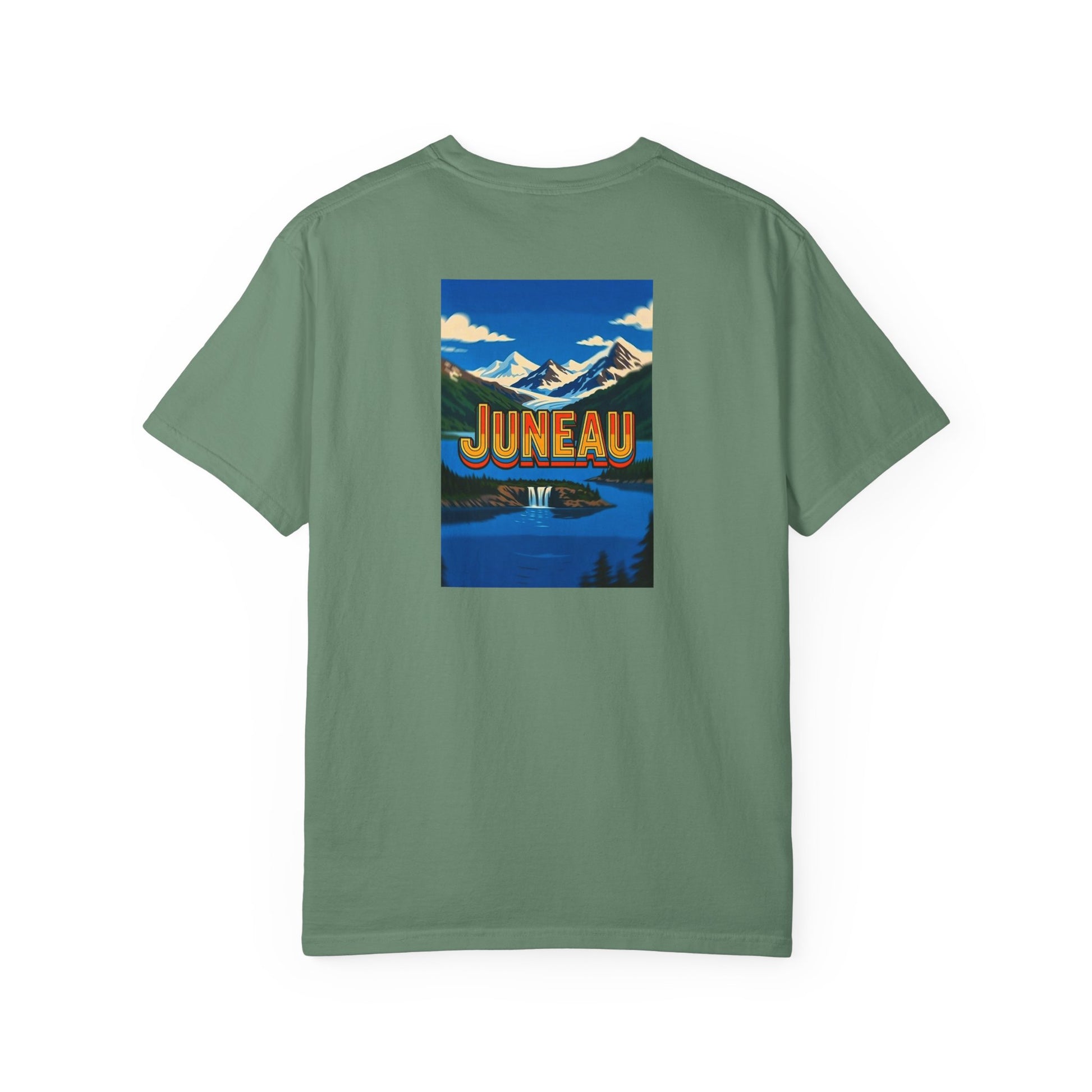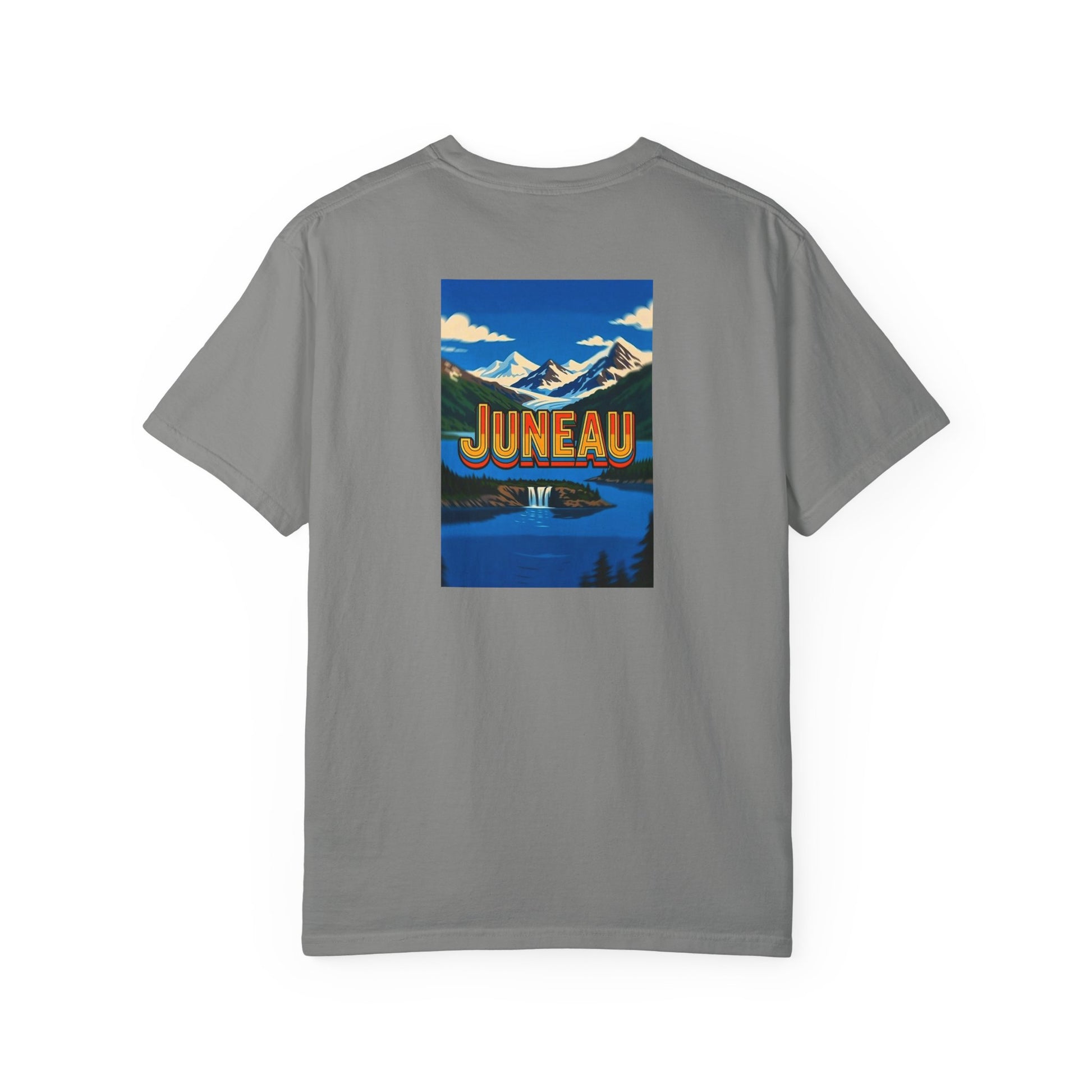 Juneau Alaska Vintage Retro Back Printed Art Series Cotton Tee - Black Logo
