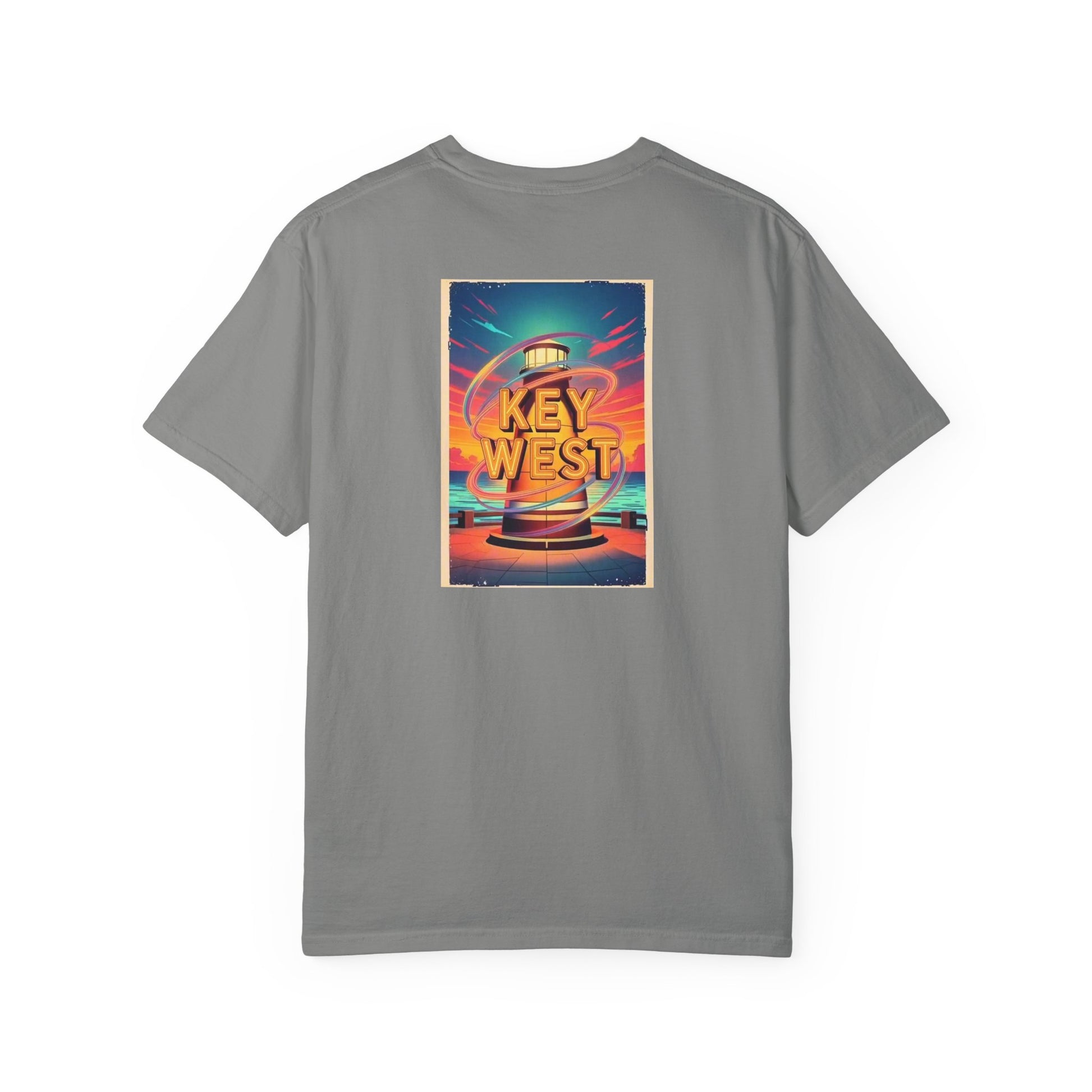 Key West Florida Vintage Retro Back Printed Art Series Cotton Tee - Black Logo