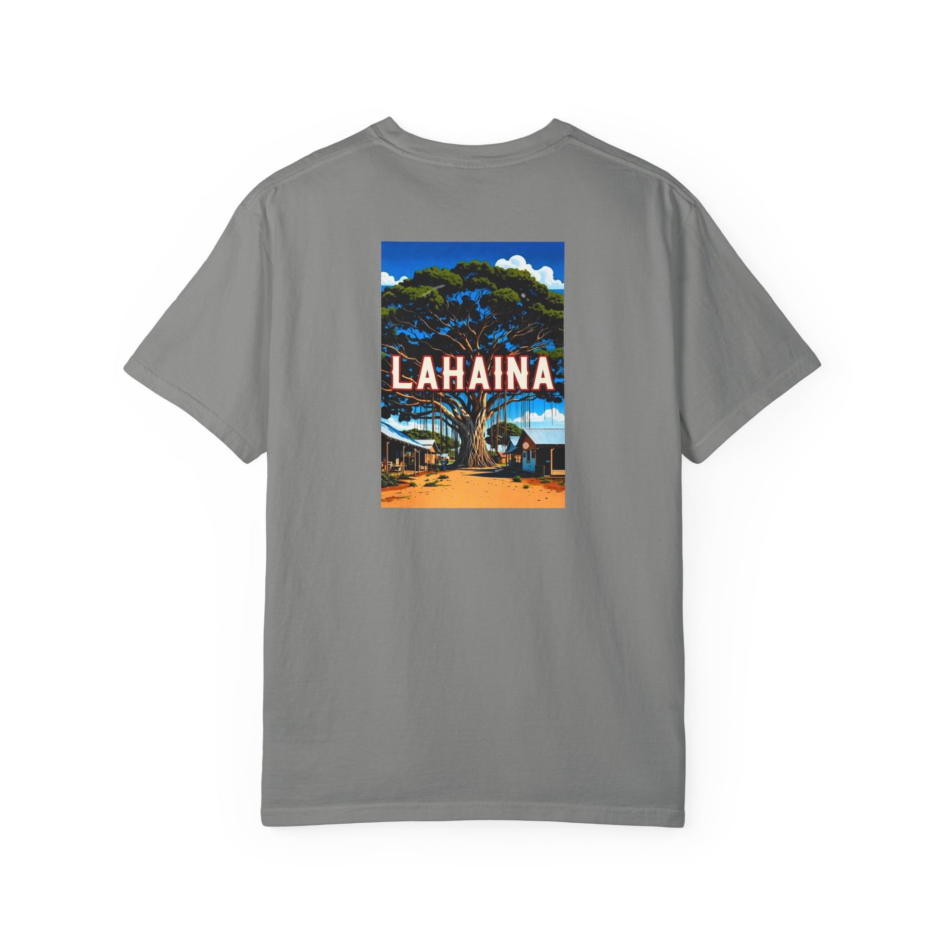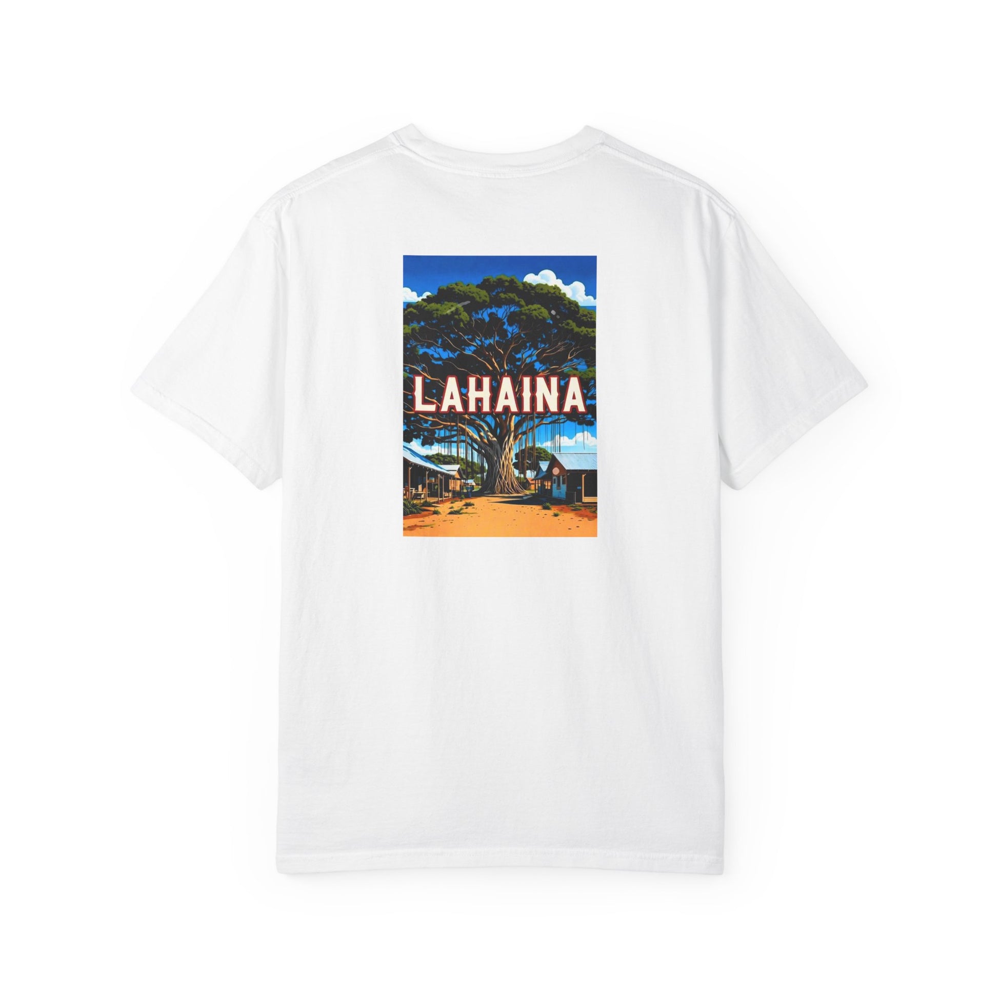 Lahaina Hawaii Vintage Retro Back Printed Art Series Cotton Tee - Black Logo