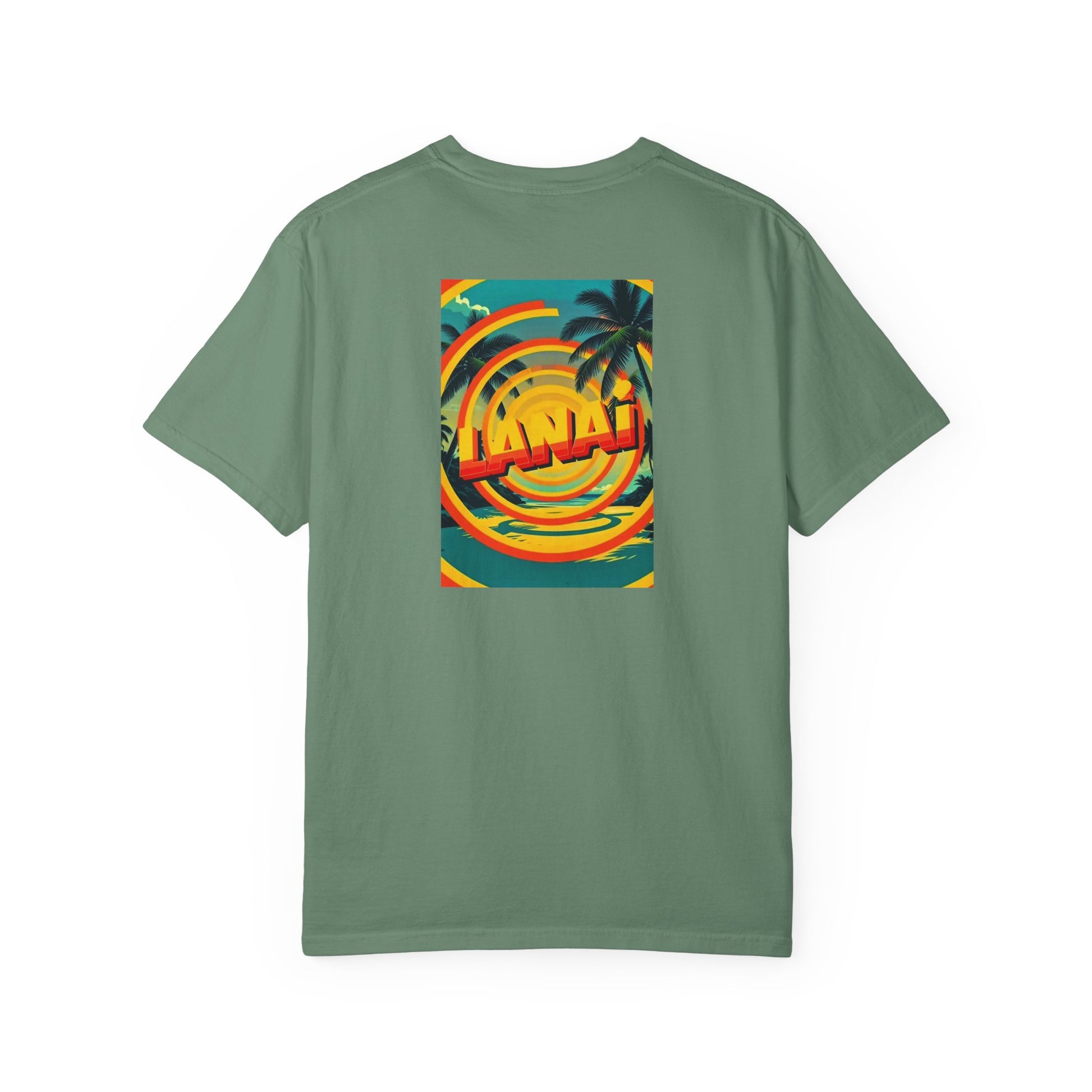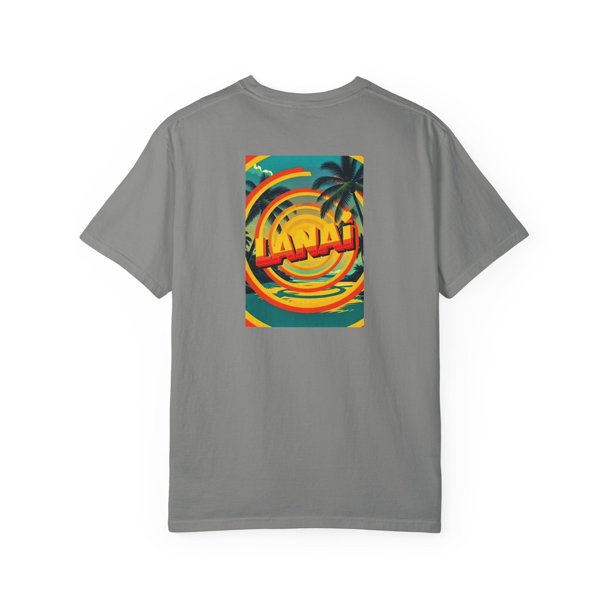 Lanai Hawaii Vintage Retro Back Printed Art Series Cotton Tee - Black Logo