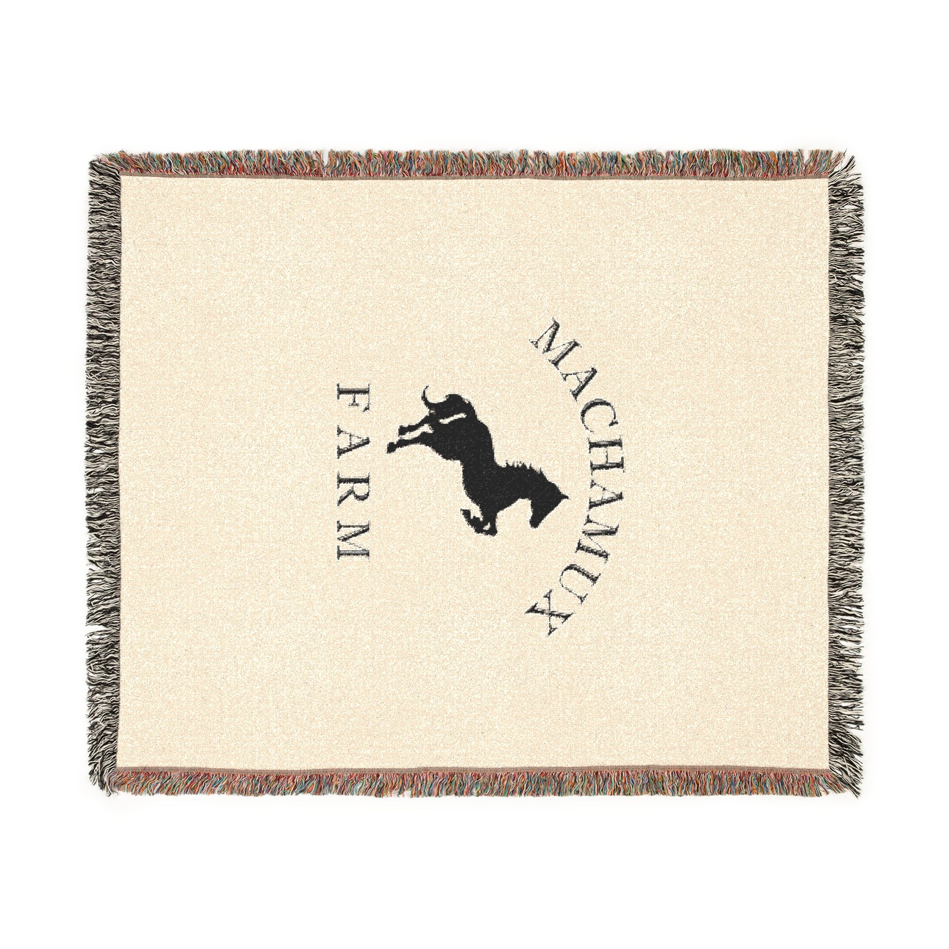 Machamux Farm Vintage Retro Cotton Woven Blanket - Black Logo
