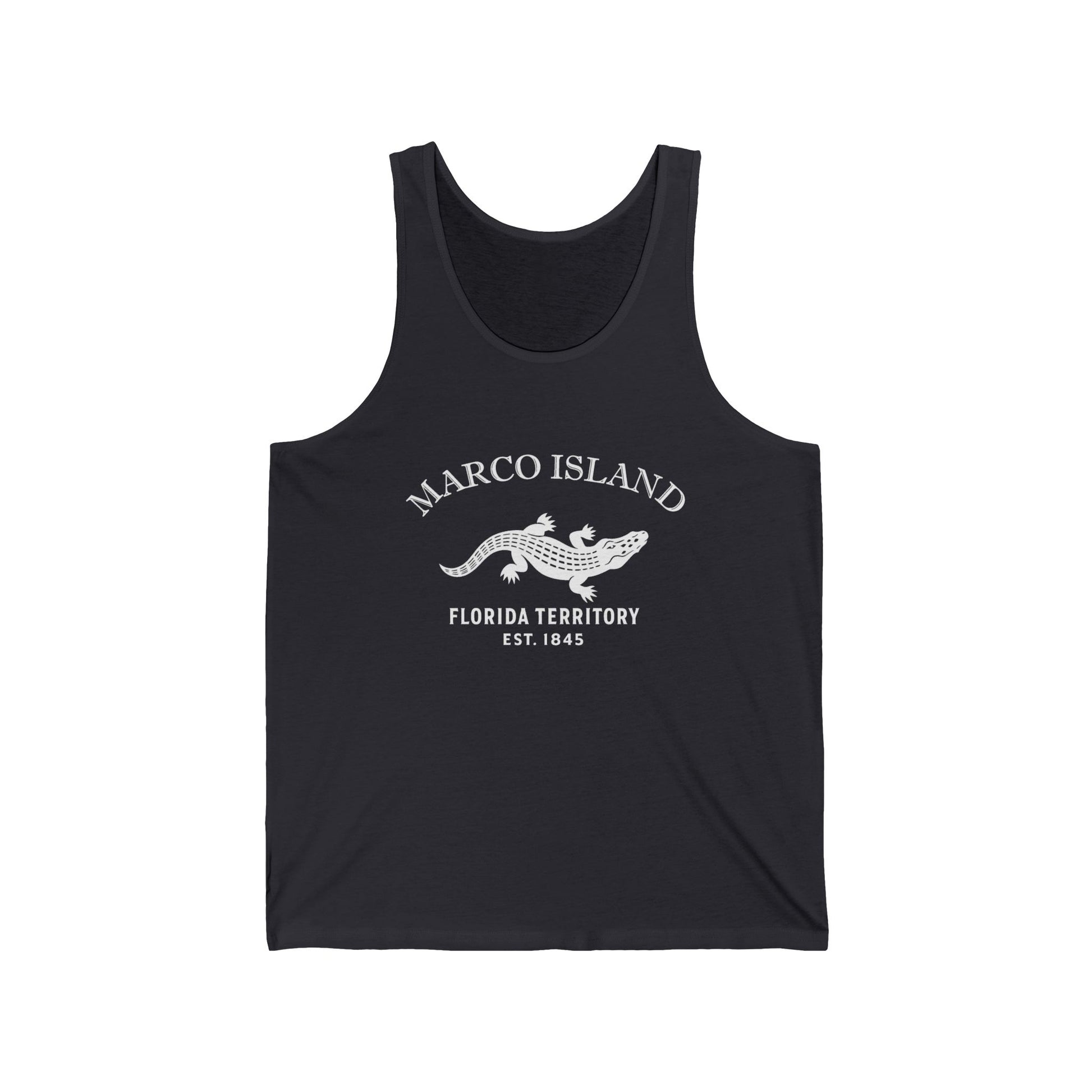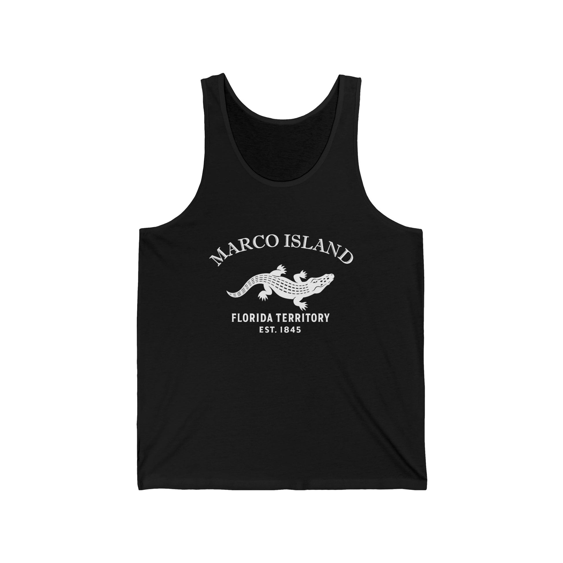 Marco Island Florida Vintage Retro Unisex Cotton Jersey Tank Top - White Logo