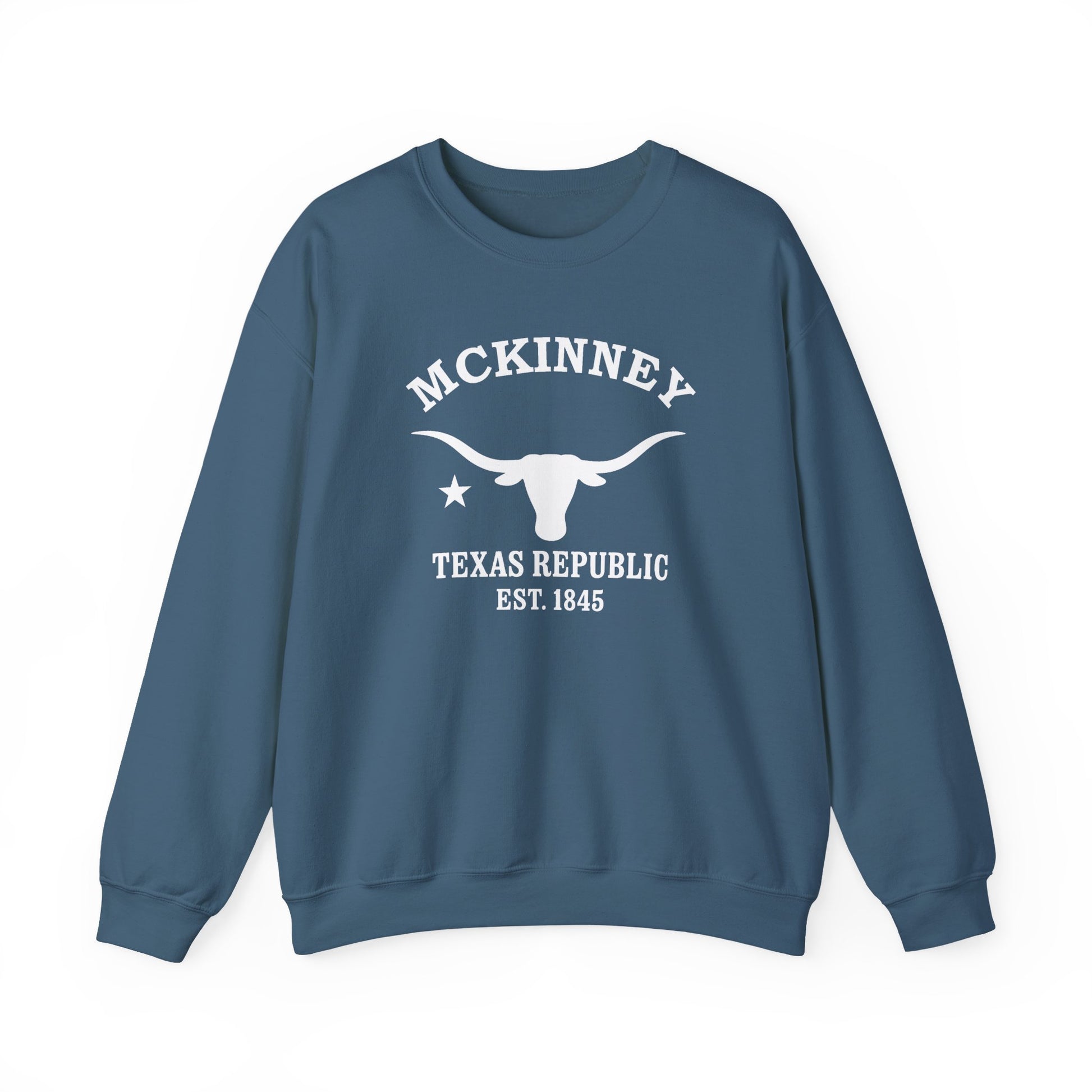 McKinney Texas Vintage Retro Unisex Heavy Crewneck Sweatshirt - White Logo