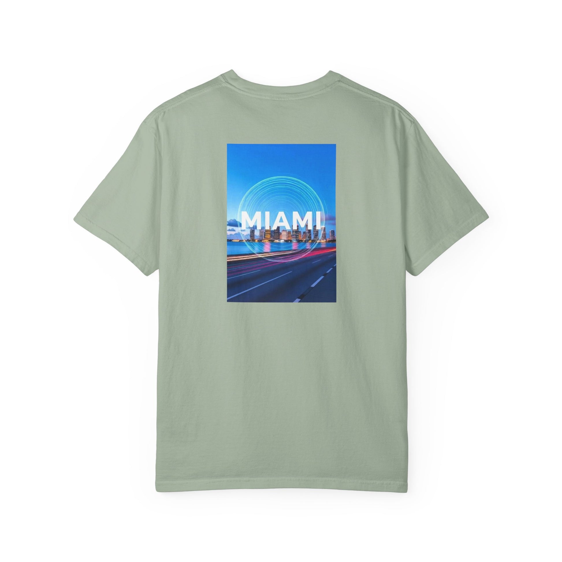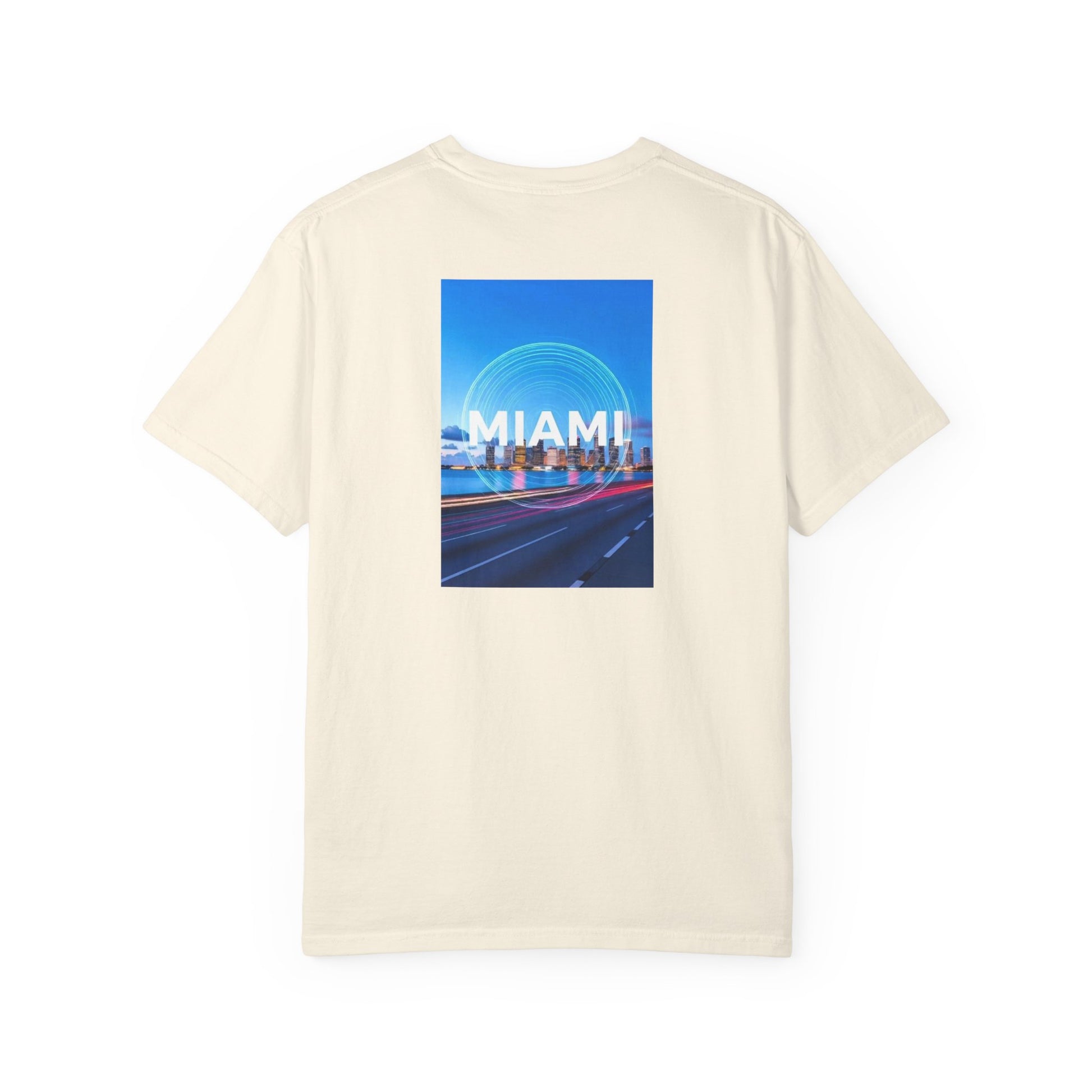 Miami Florida Vintage Retro Back Printed Art Series Cotton Tee - Black Logo