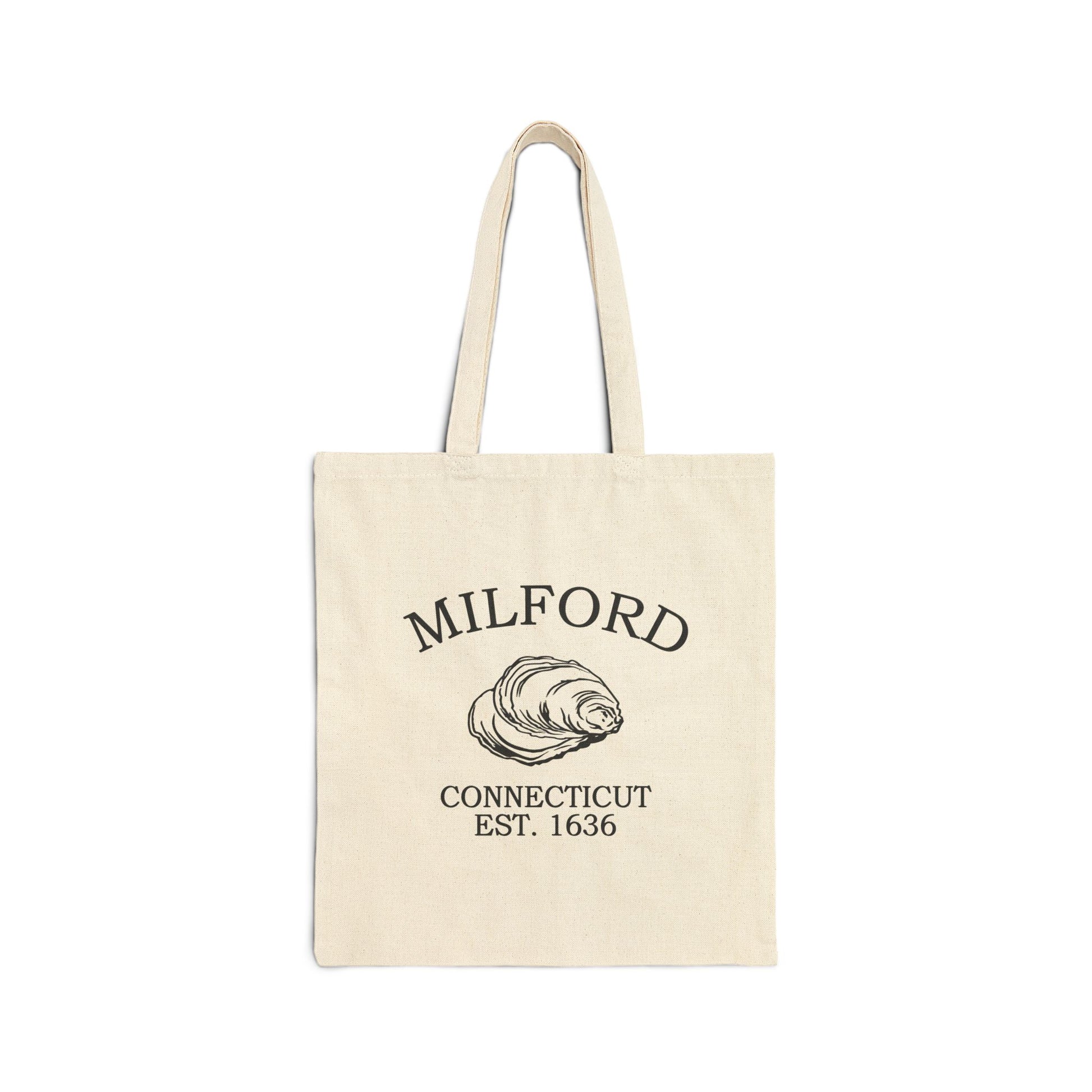 Milford Connecticut Vintage Retro Cotton Canvas Tote Bag - Black Logo