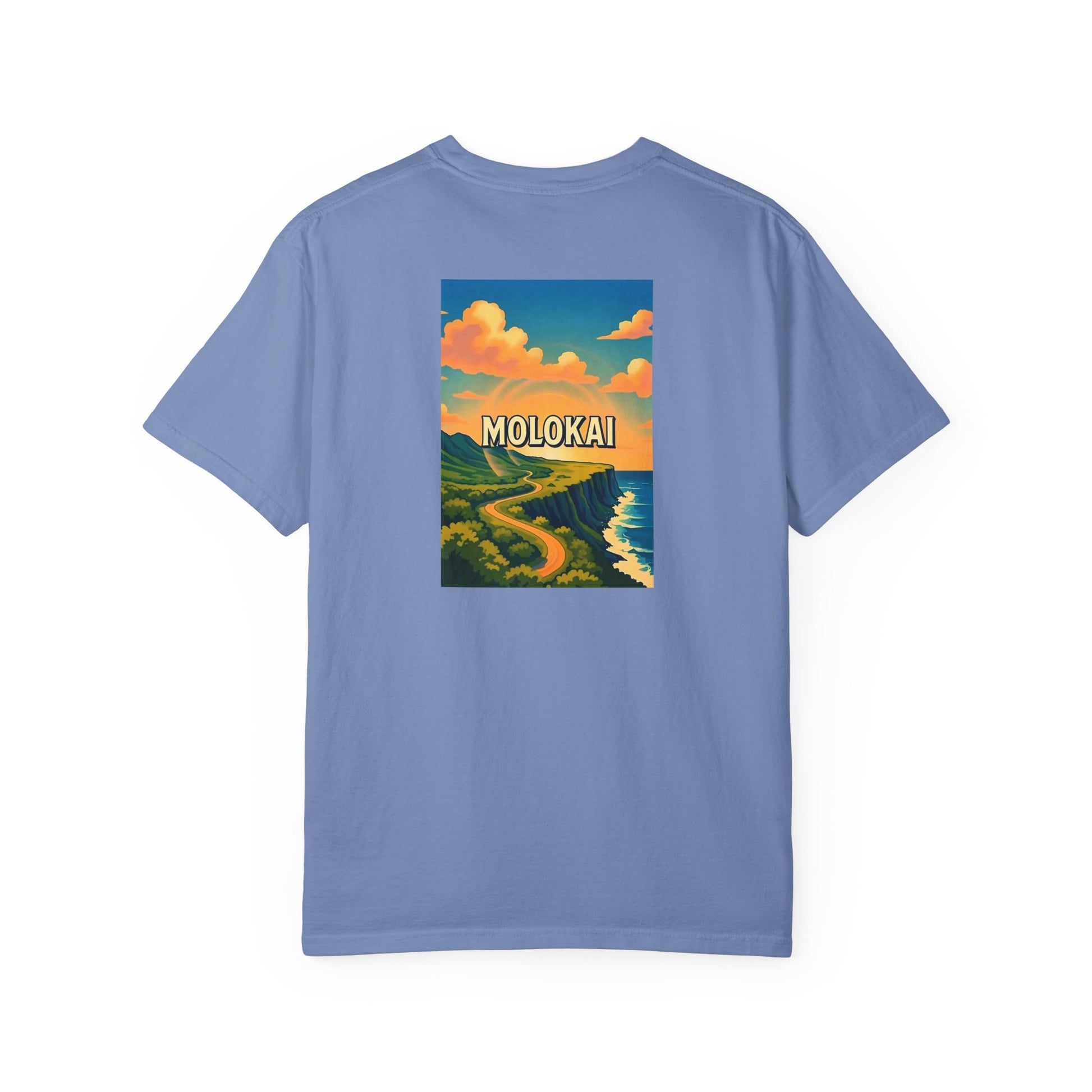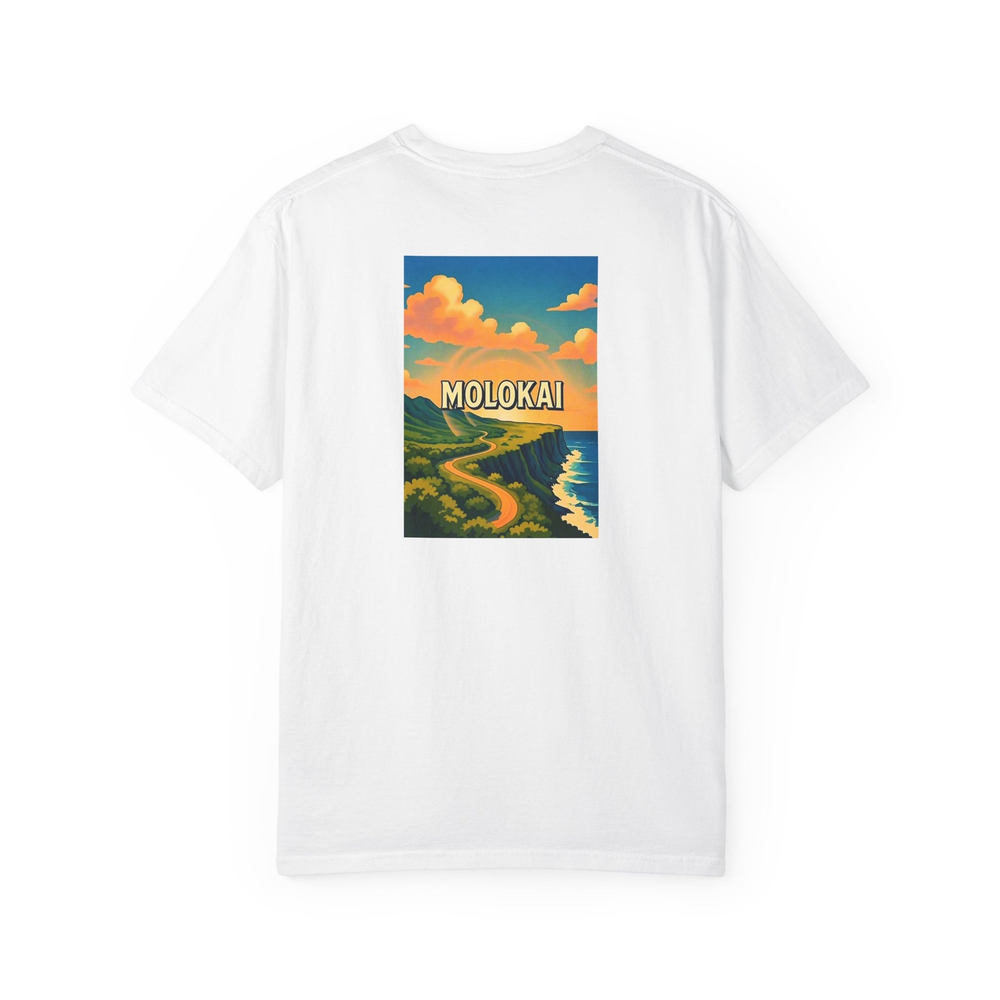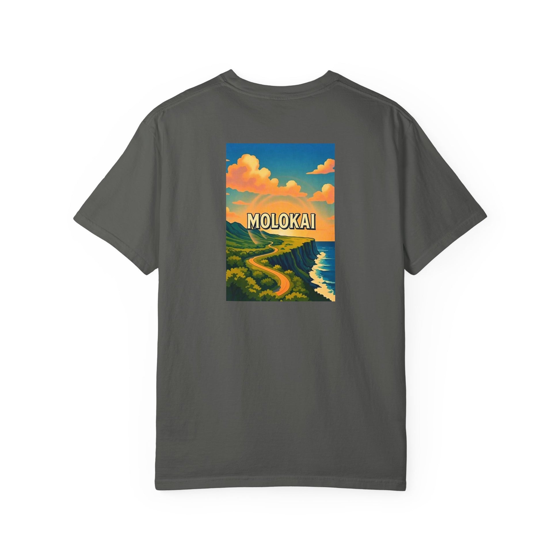 Molokai Hawaii Vintage Retro Back Printed Art Series Cotton Tee - Black Logo