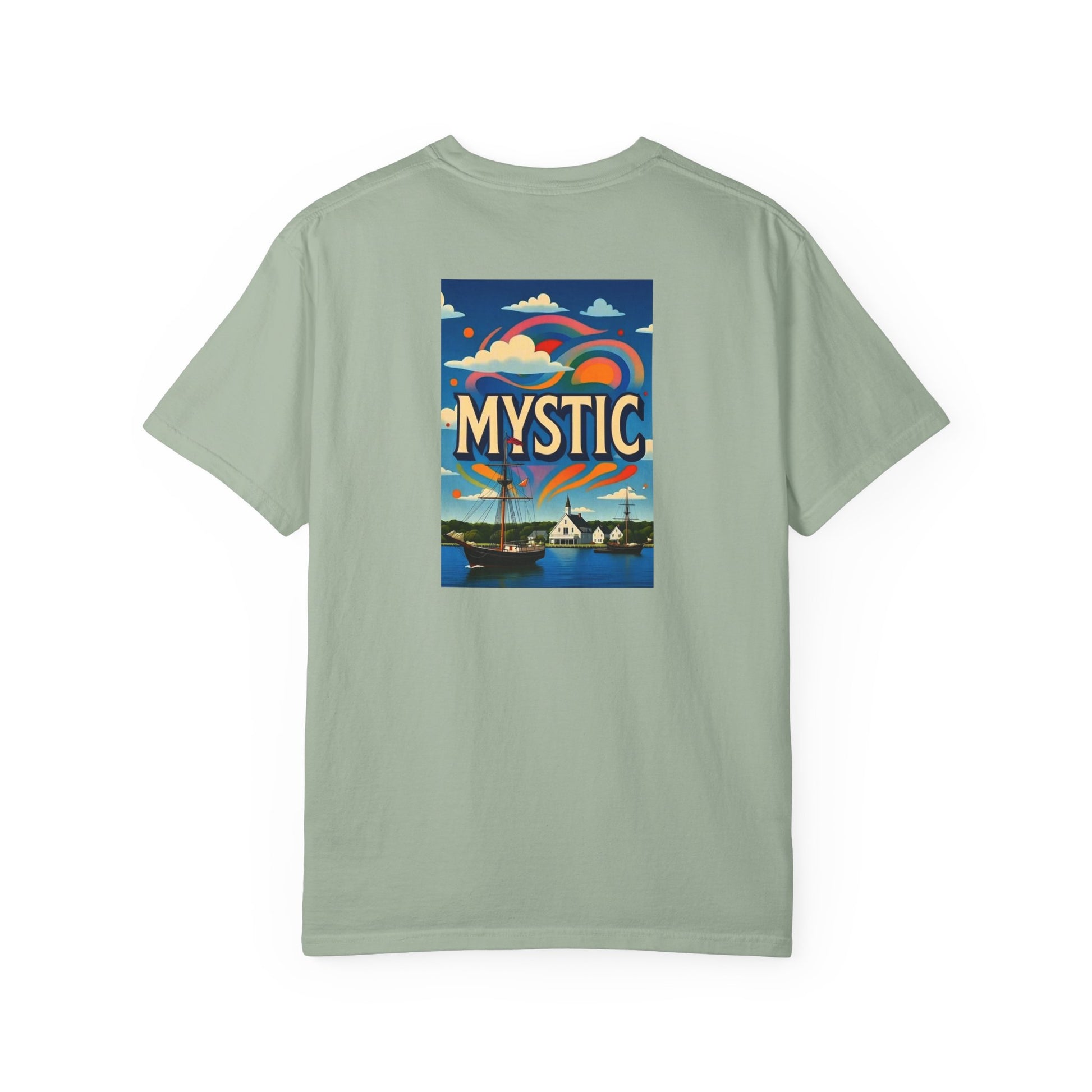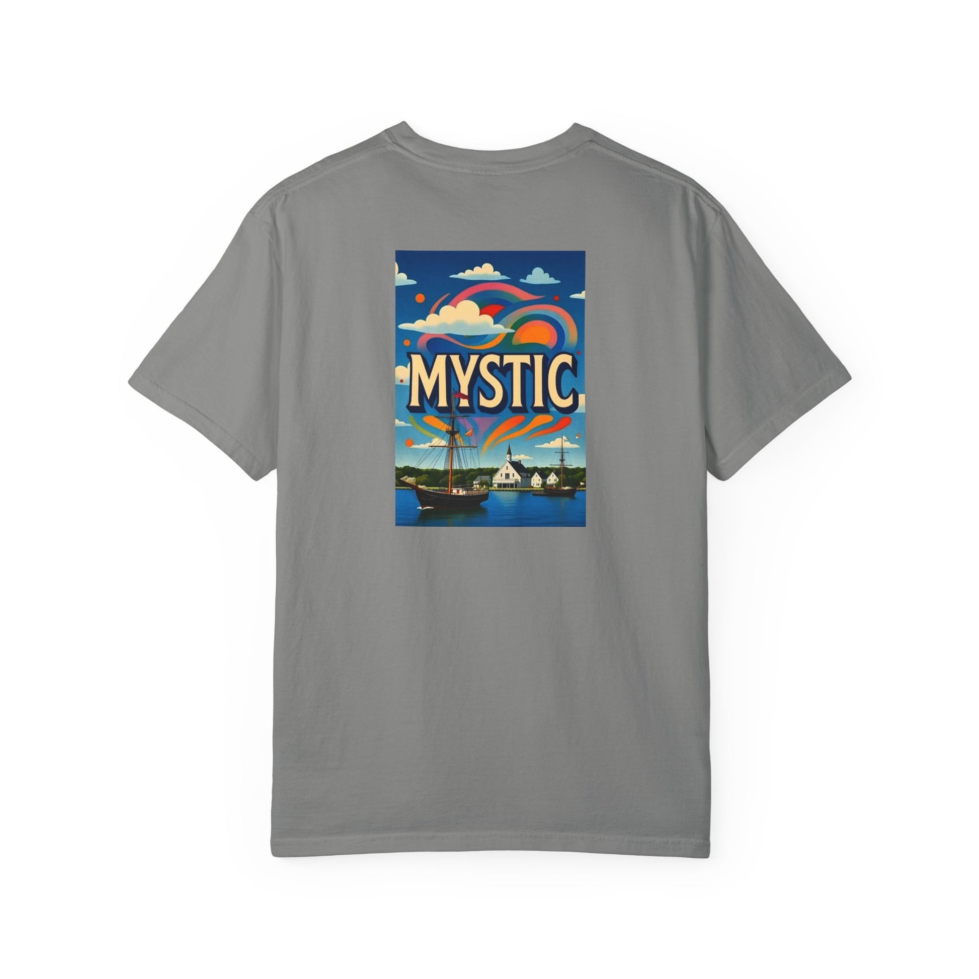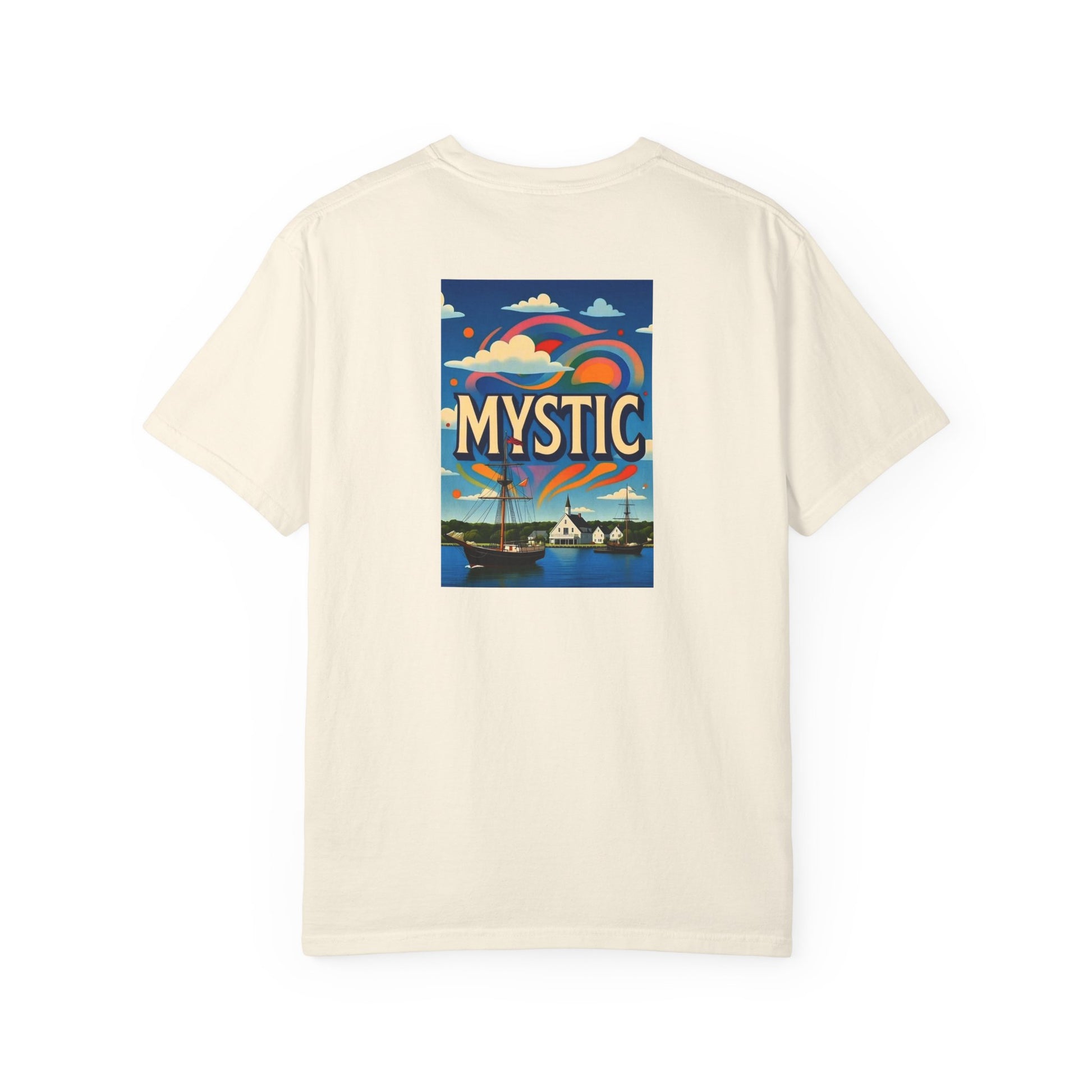Mystic Connecticut Vintage Retro Back Printed Art Series Cotton Tee - Black Logo