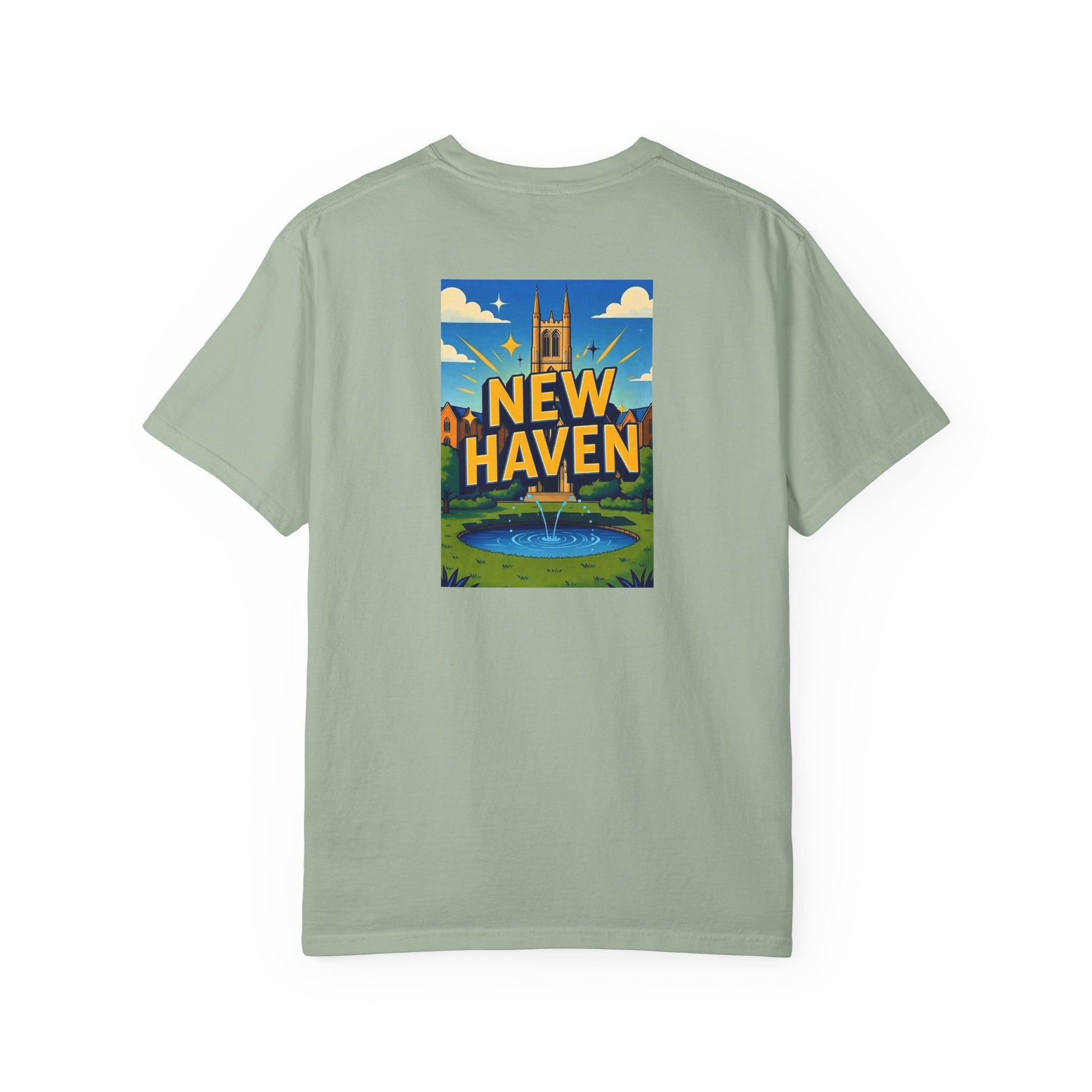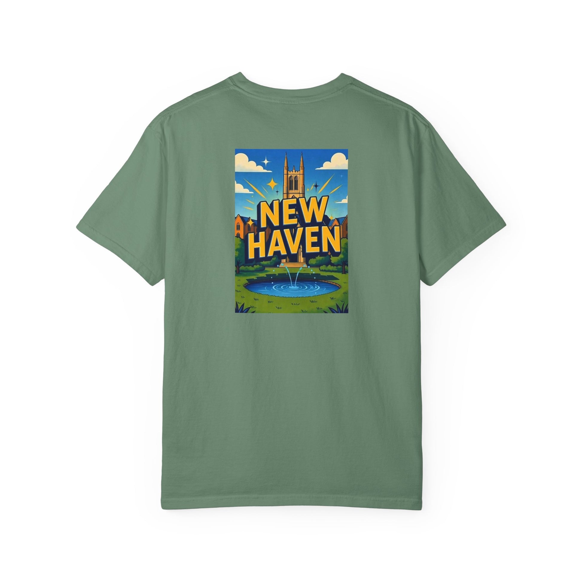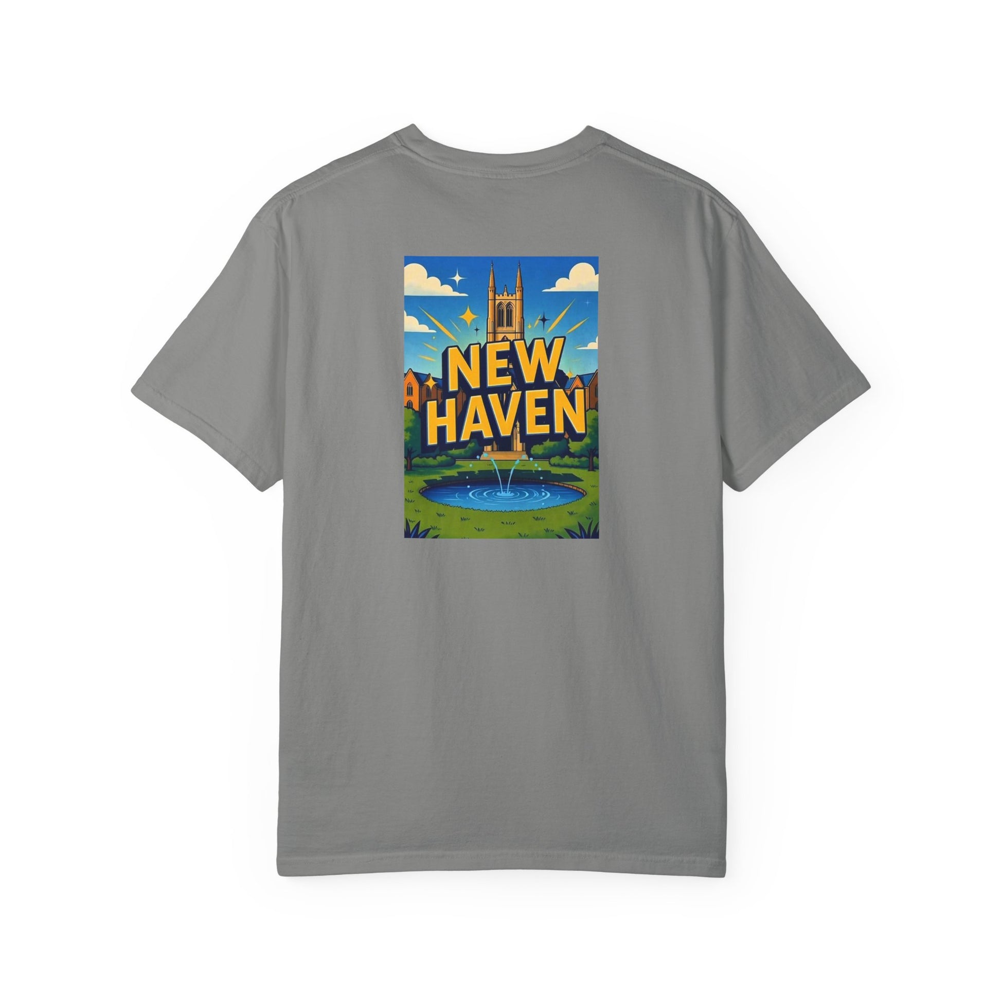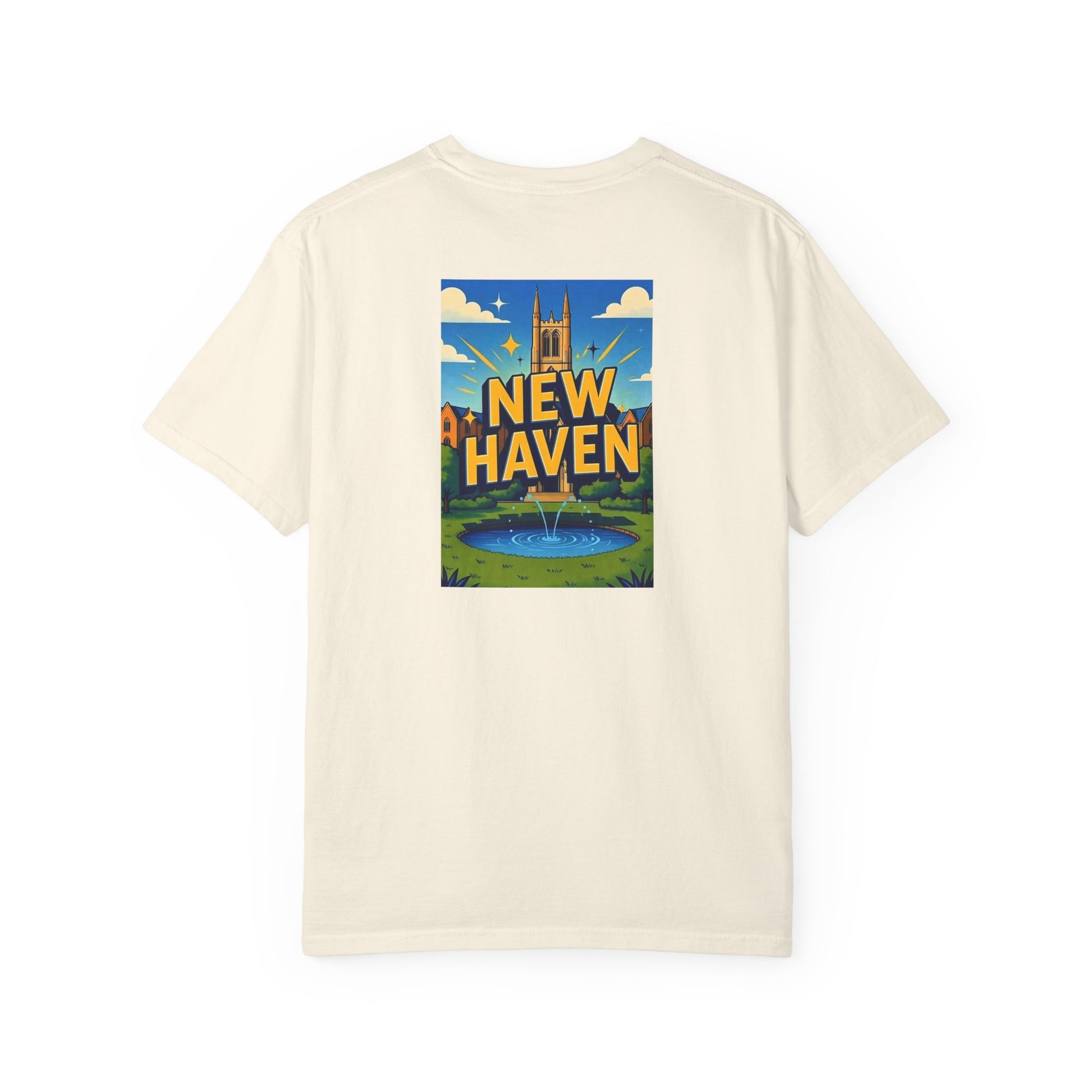 New Haven Connecticut Vintage Retro Back Printed Art Series Cotton Tee - Black Logo
