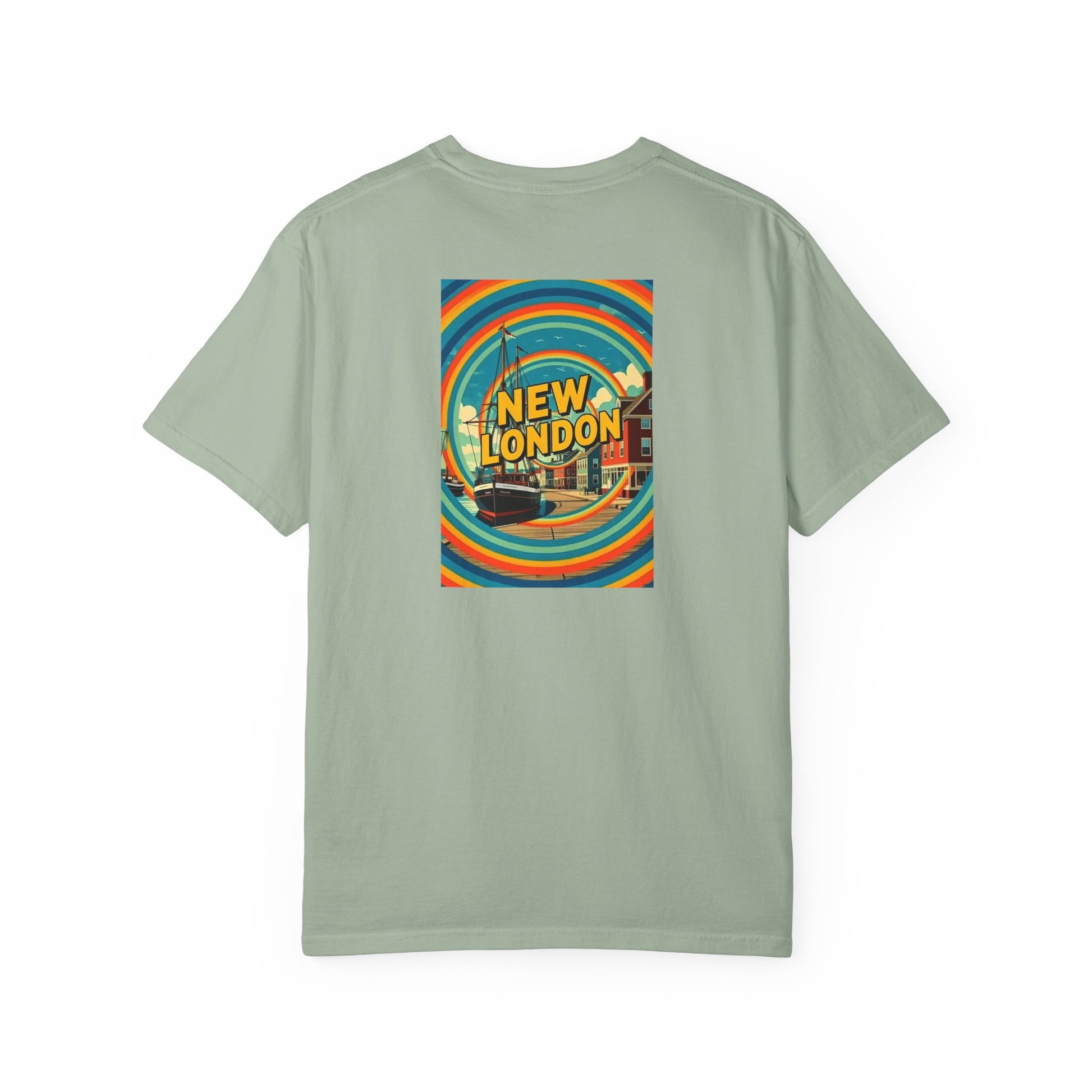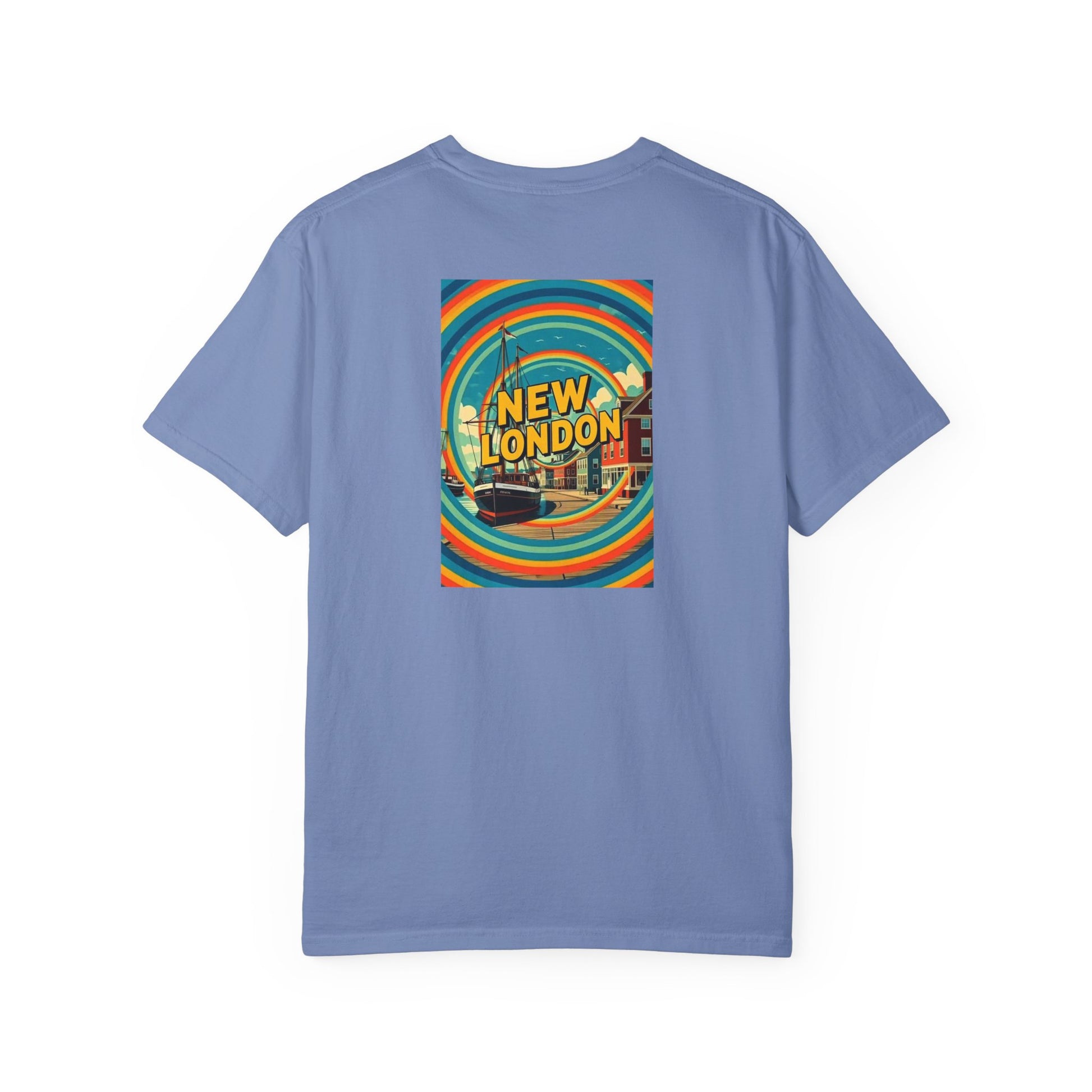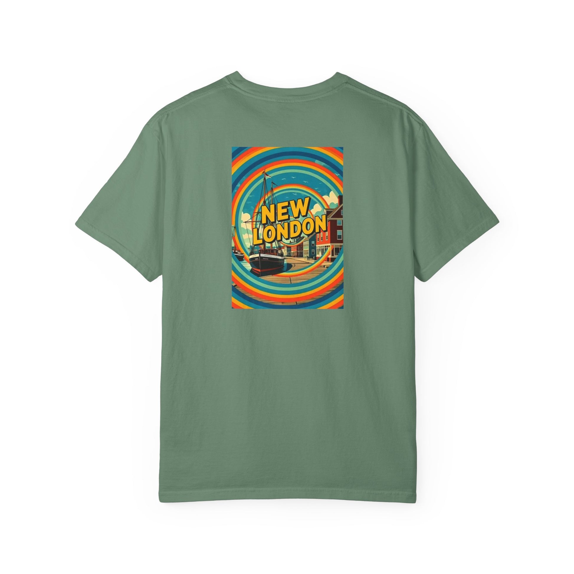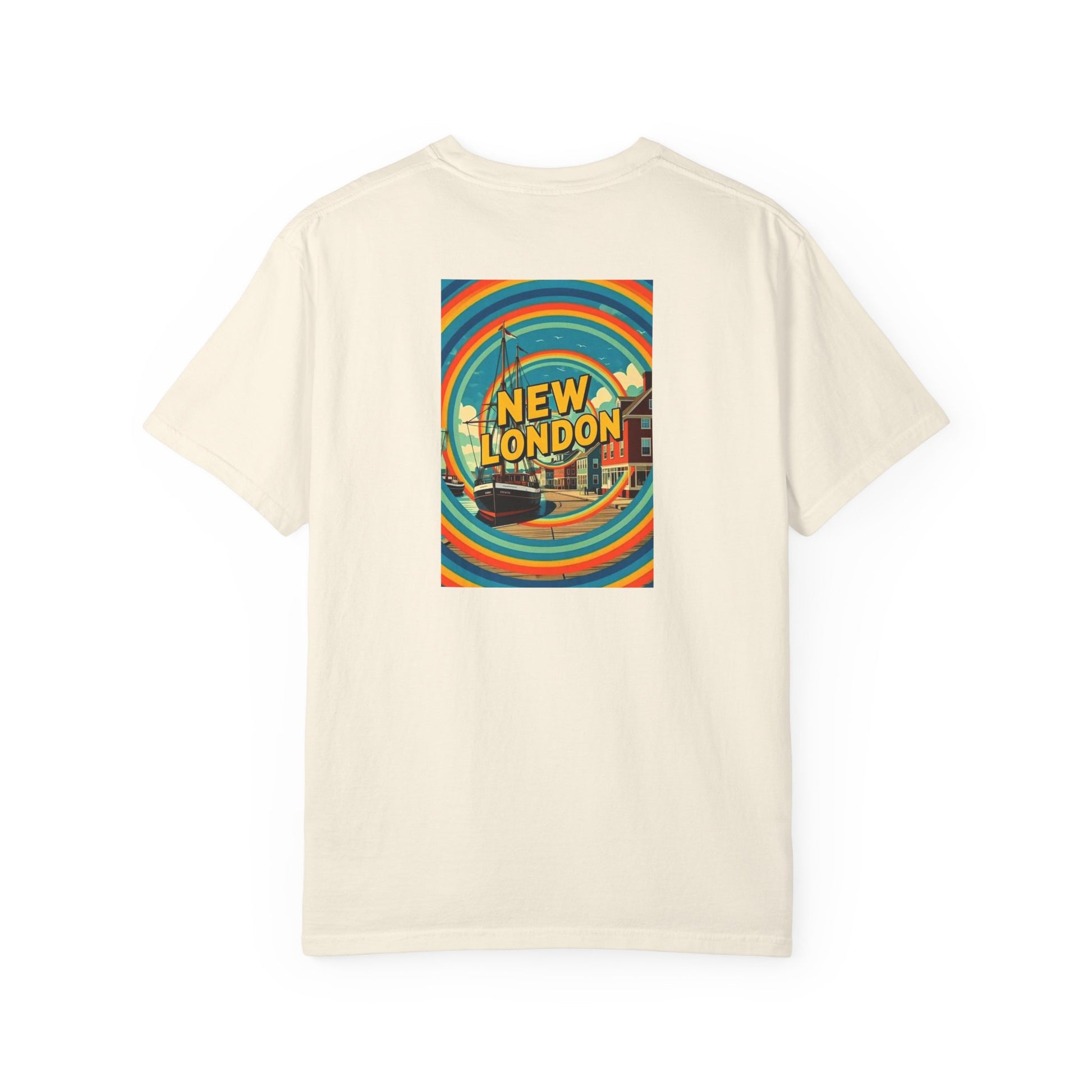 New London Connecticut Vintage Retro Back Printed Art Series Cotton Tee - Black Logo