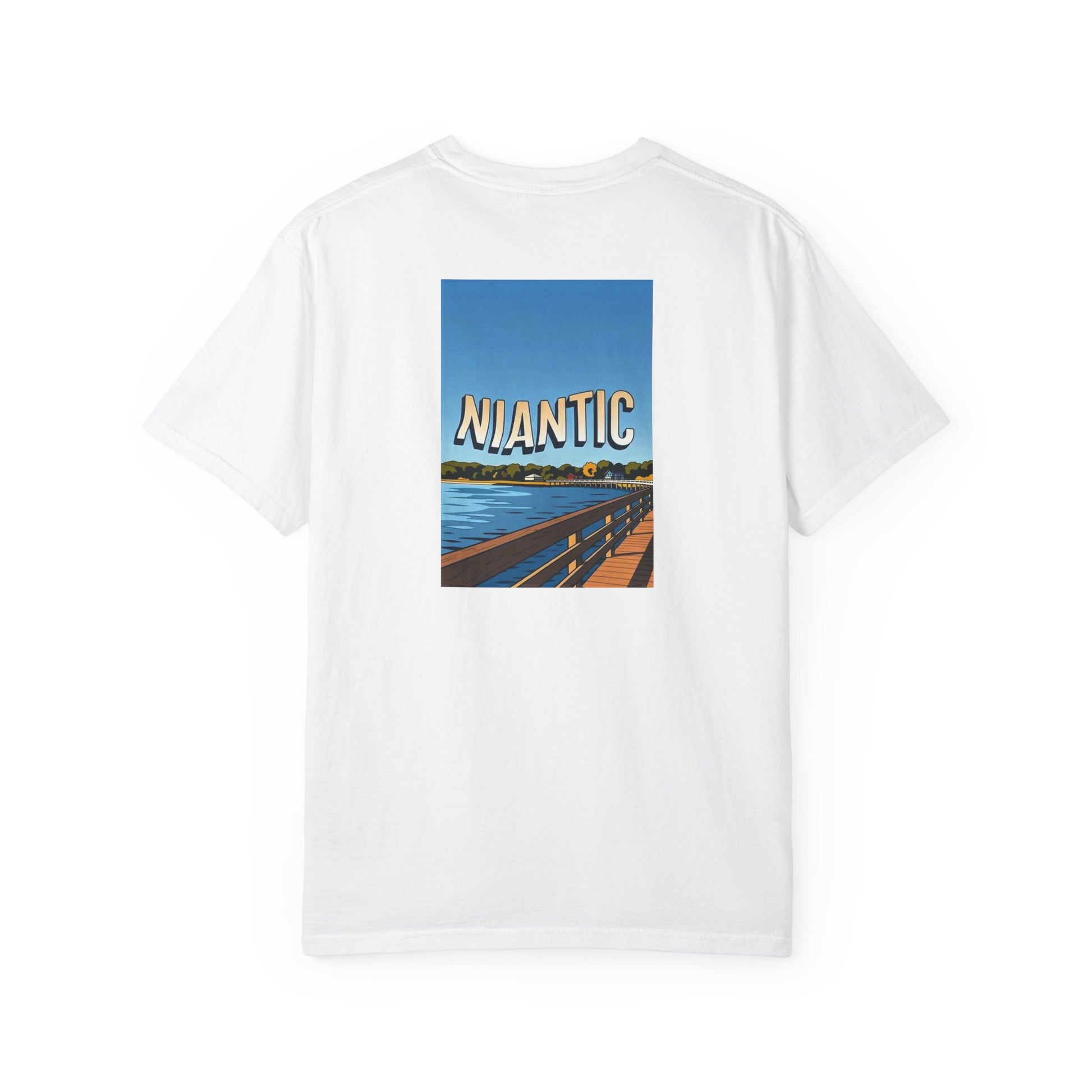 Niantic Connecticut Vintage Retro Back Printed Art Series Cotton Tee - Black Logo