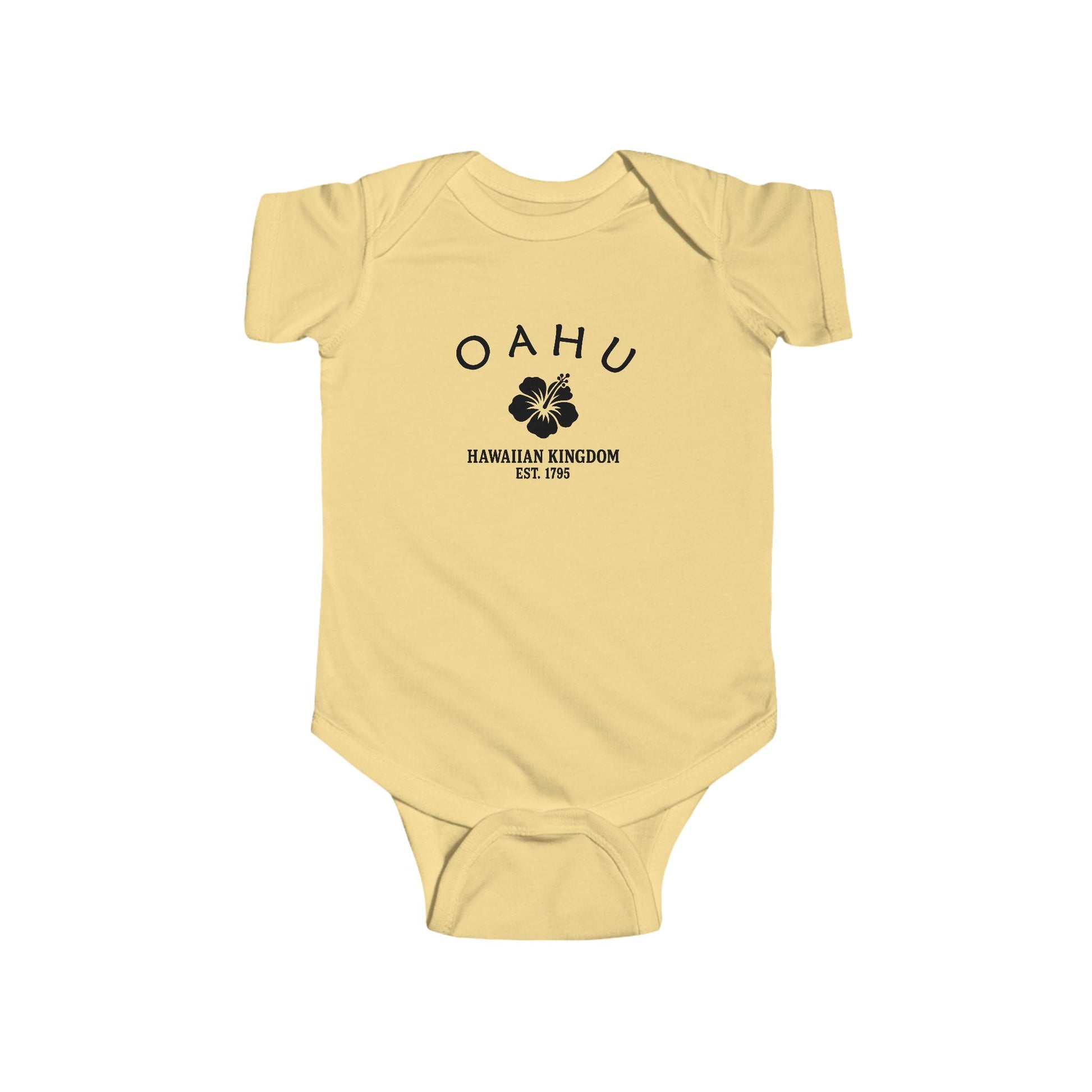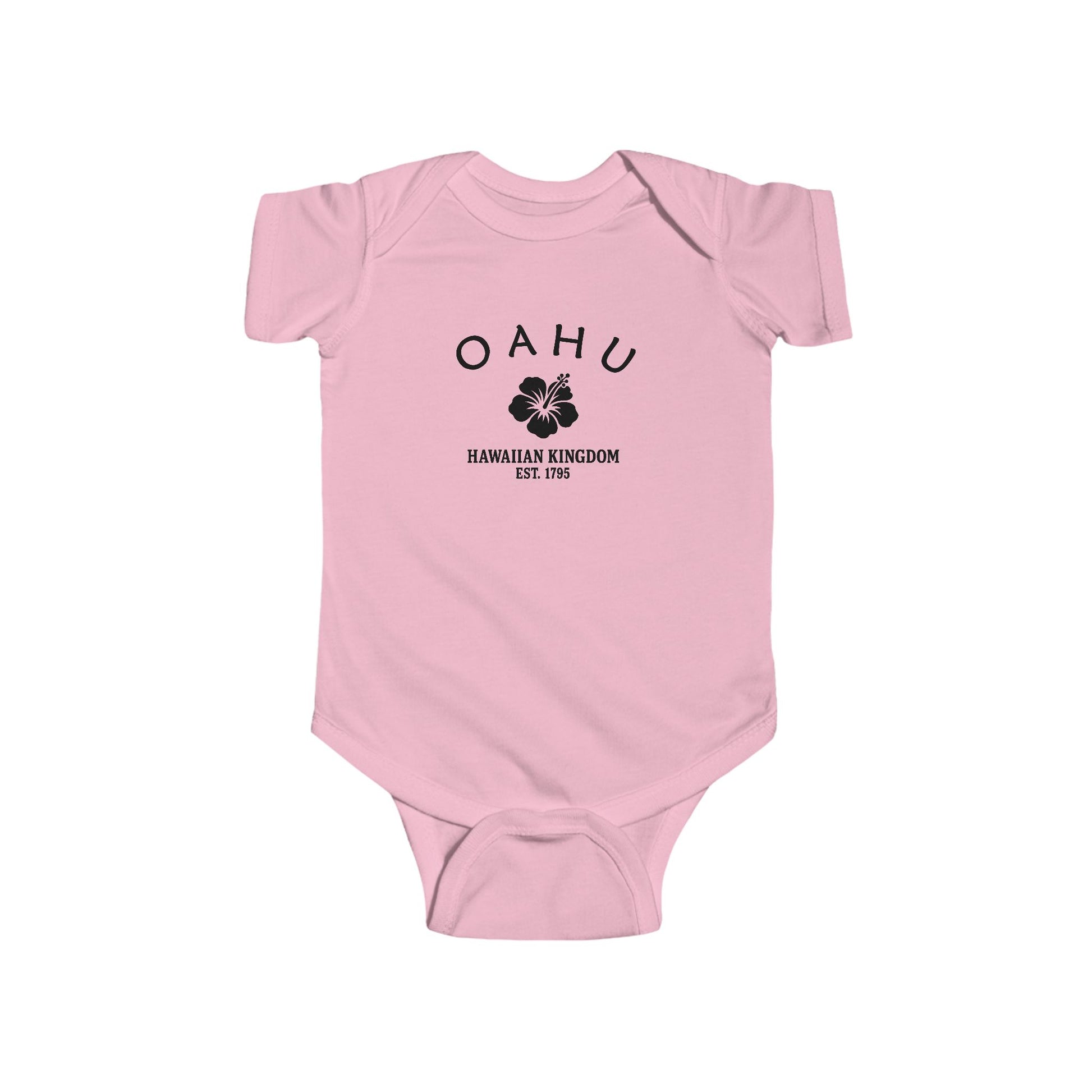 Oahu Hawaii Vintage Retro Cotton Jersey Baby Bodysuit - Black Logo