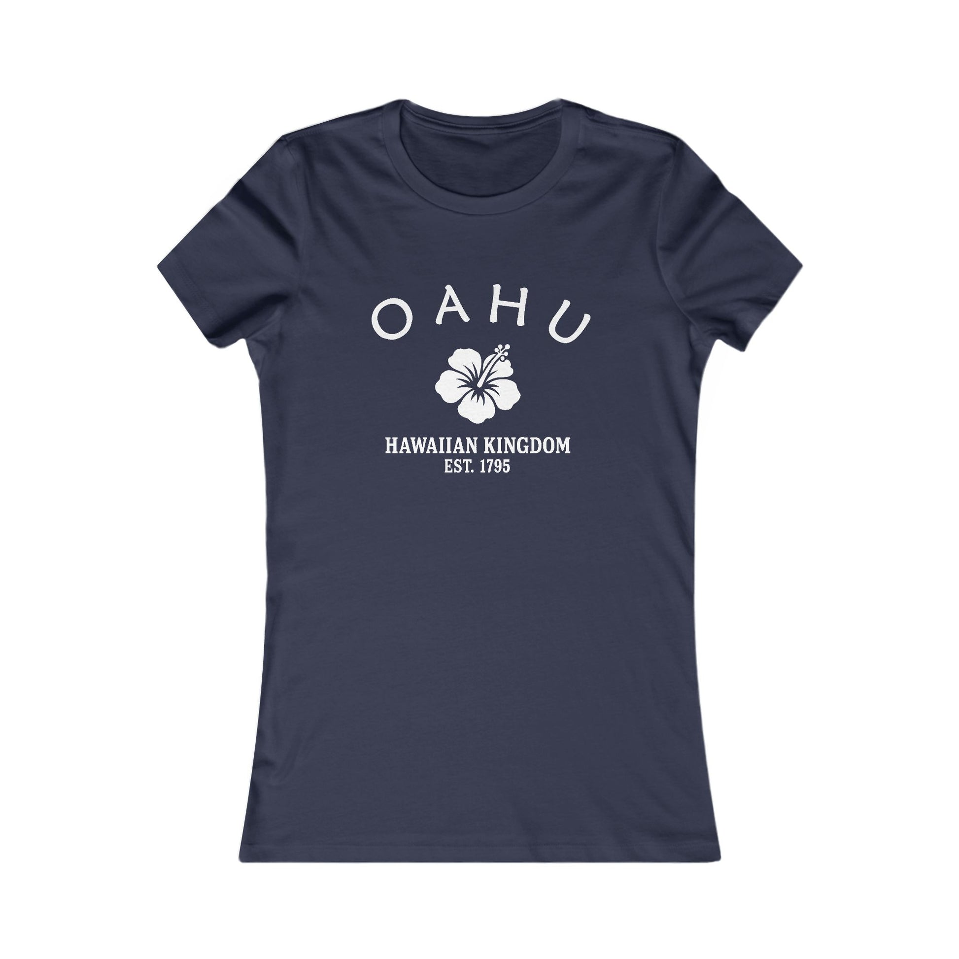 Oahu Hawaii Vintage Retro Womens Fitted Ringspun Cotton Tee - White Logo