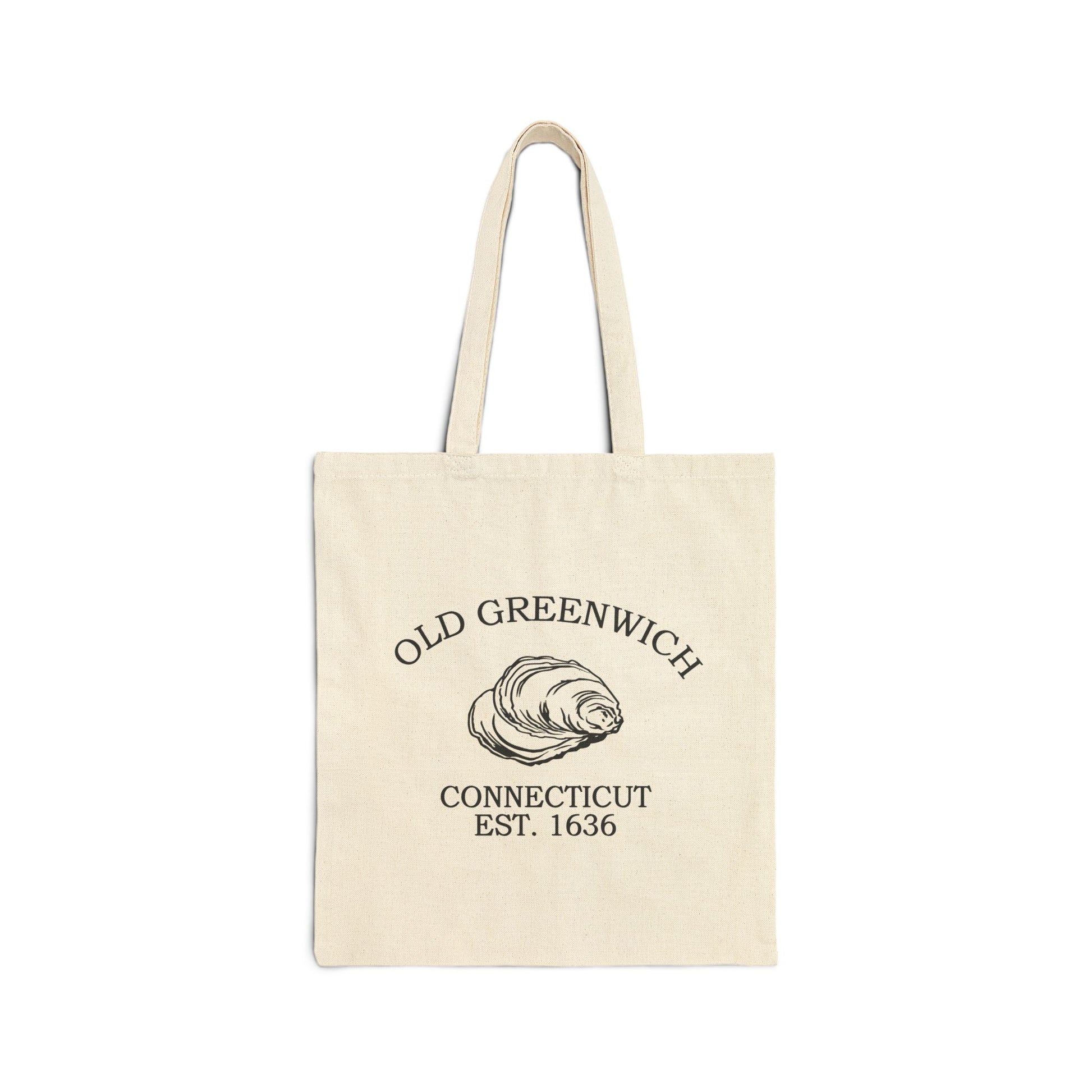 Old Greenwich Connecticut Vintage Retro Cotton Canvas Tote Bag - Black Logo