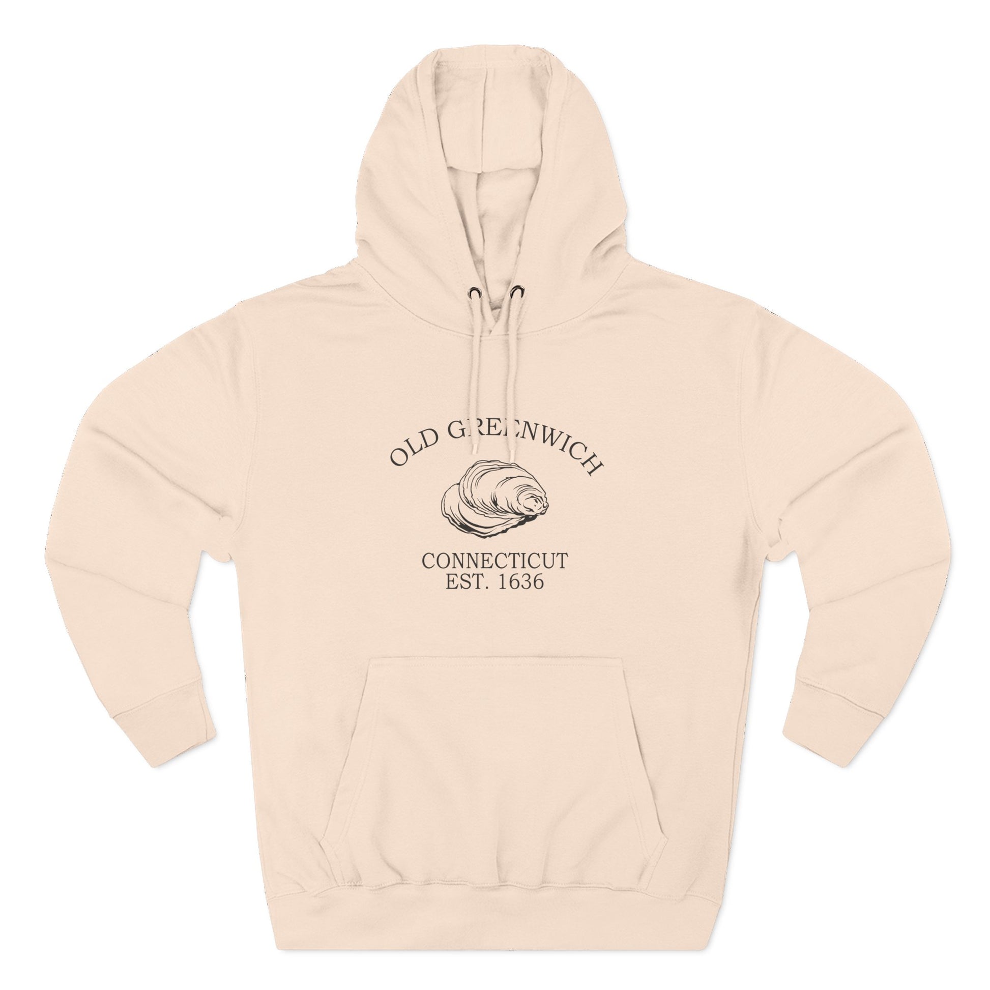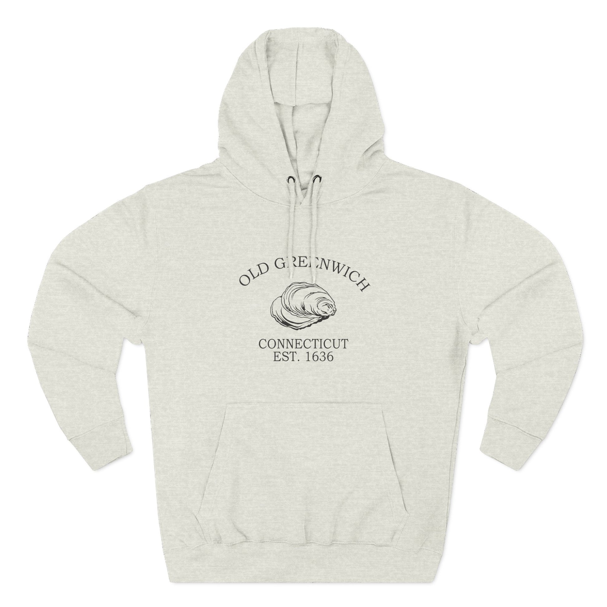 Old Greenwich Connecticut Vintage Retro Unisex Heavy Cotton Hoodie - Black Logo