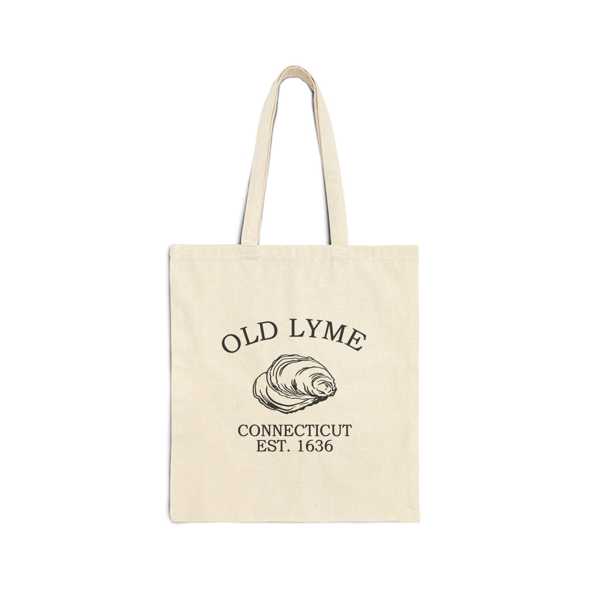 Old Lyme Connecticut Vintage Retro Cotton Canvas Tote Bag - Black Logo