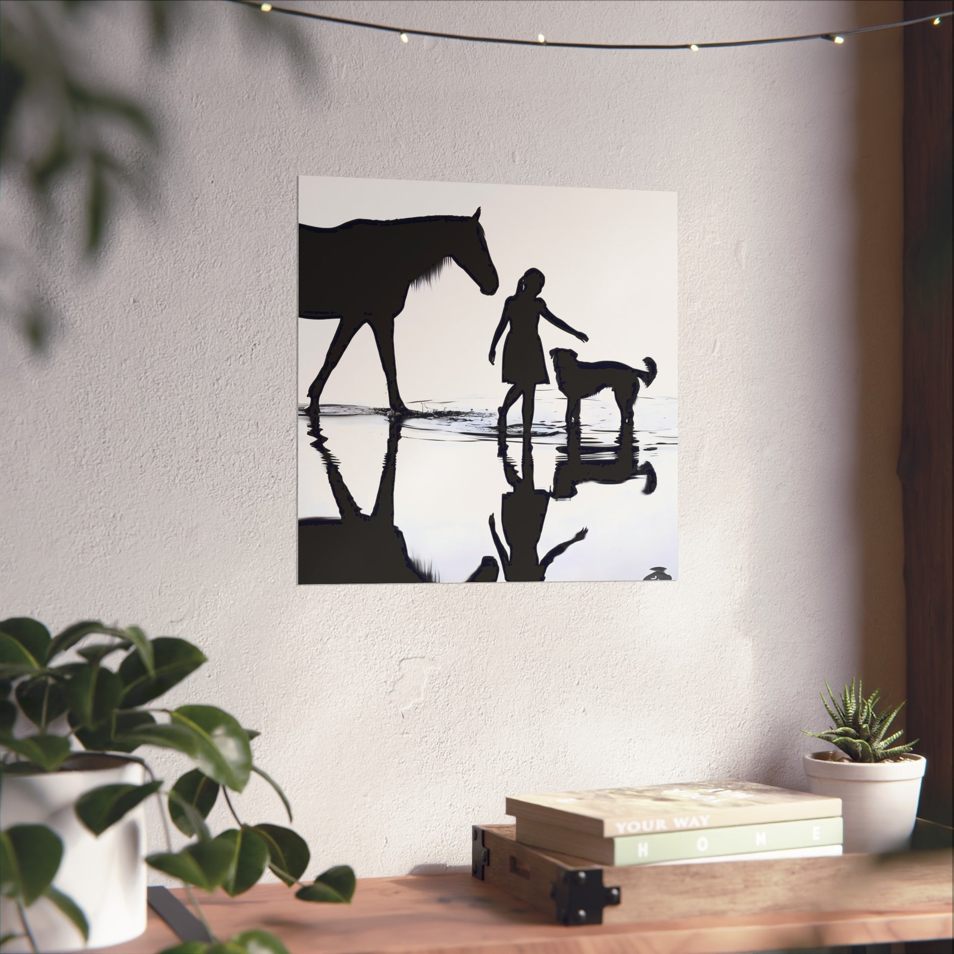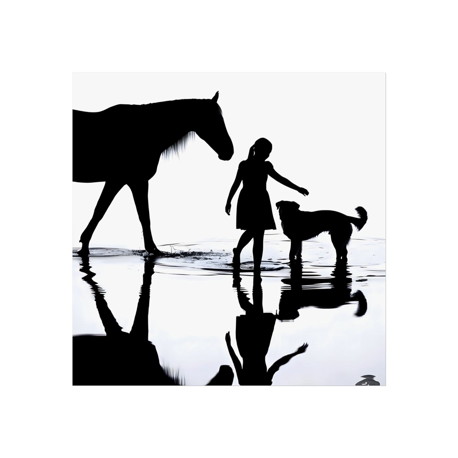 Printed as a giclée on gallery-grade 220 gsm matte paper, this fine art poster emphasizes contrast and quiet movement—a study in balance, reflection, and calm. The smooth, glare-free matte finish and restrained palette let the image anchor a room without competing with surrounding décor, and it’s available in multiple sizes to suit everything from a cozy reading nook to a minimalist living space or hallway gallery wall. This is an unframed print, printed with REACH-certified inks on acid-free paper and produced with EUTR-compliant materials for lasting tonal depth and crisp detail; if it gathers dust, gently wipe with a clean, dry cloth.
