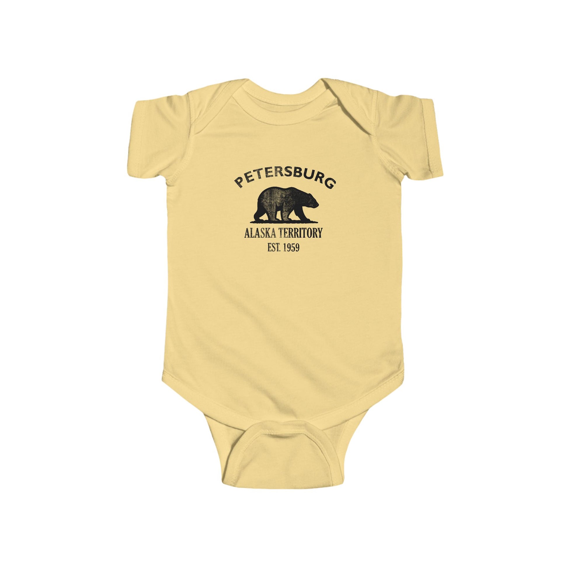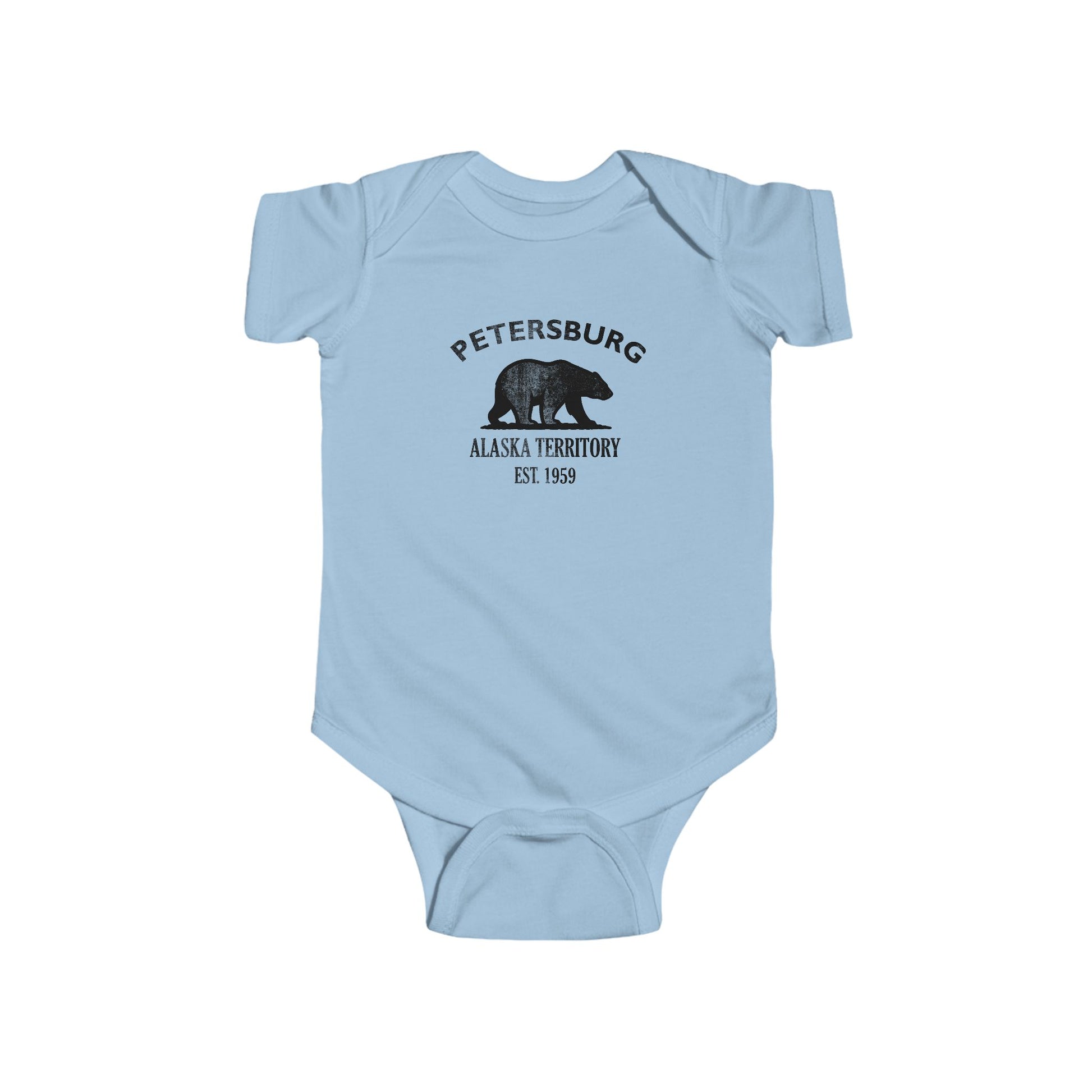 Petersburg Alaska Vintage Retro Cotton Jersey Baby Bodysuit - Black Logo