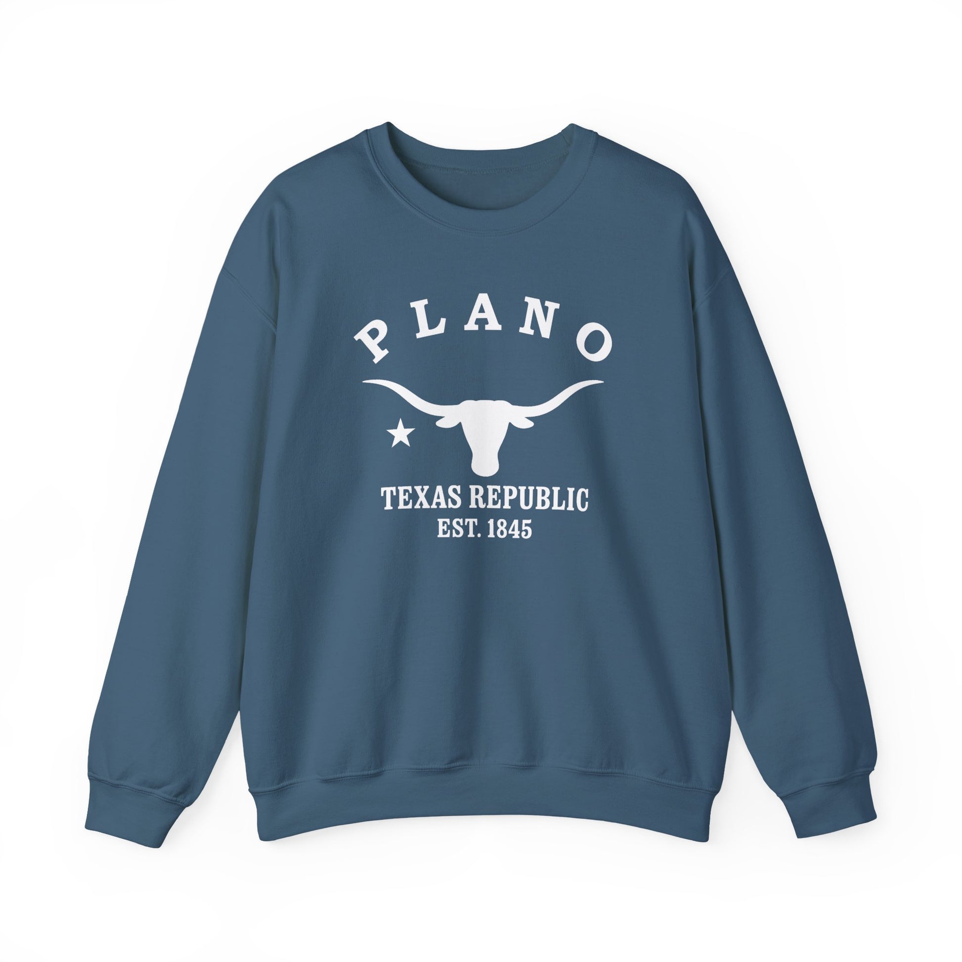 Plano Texas Vintage Retro Unisex Heavy Crewneck Sweatshirt - White Logo