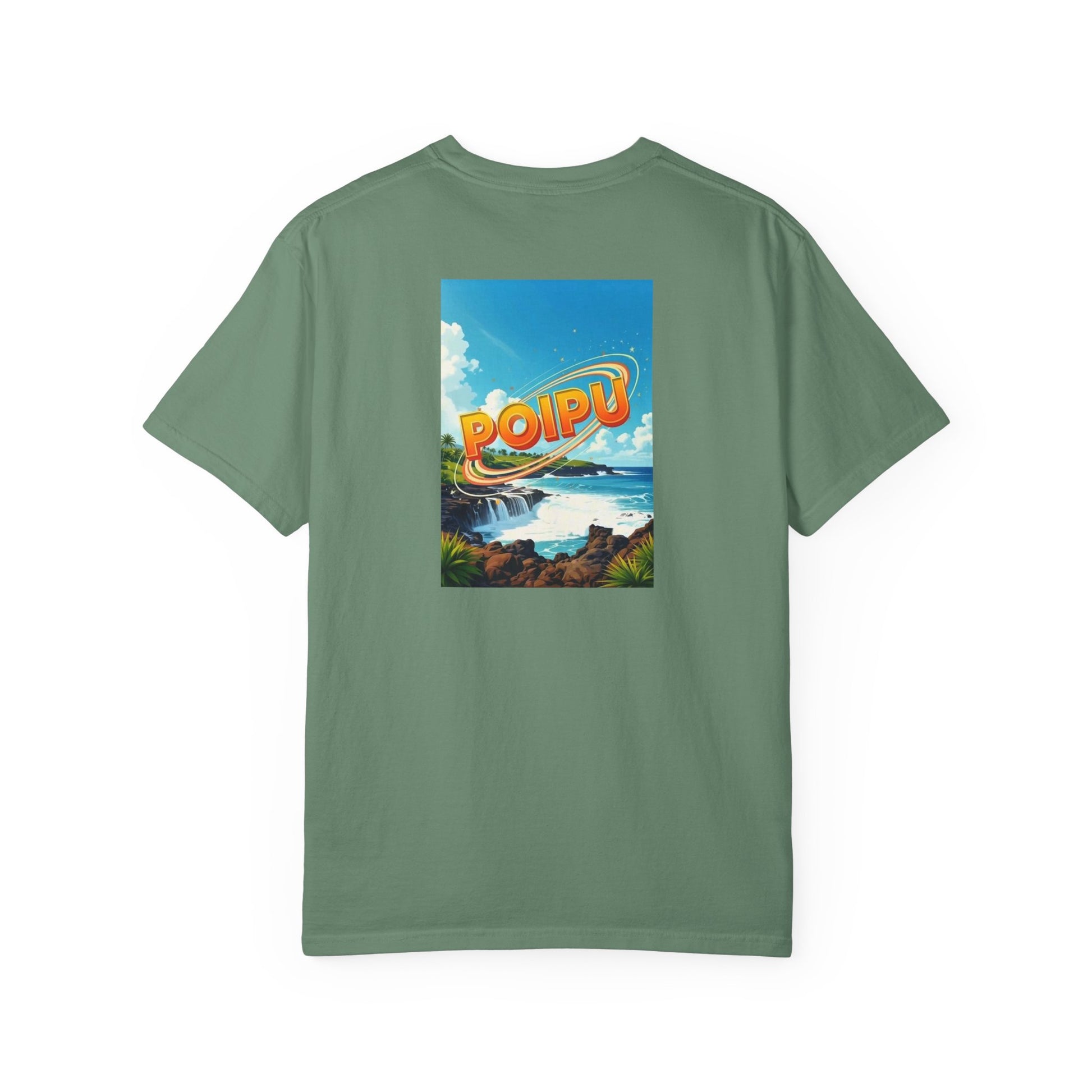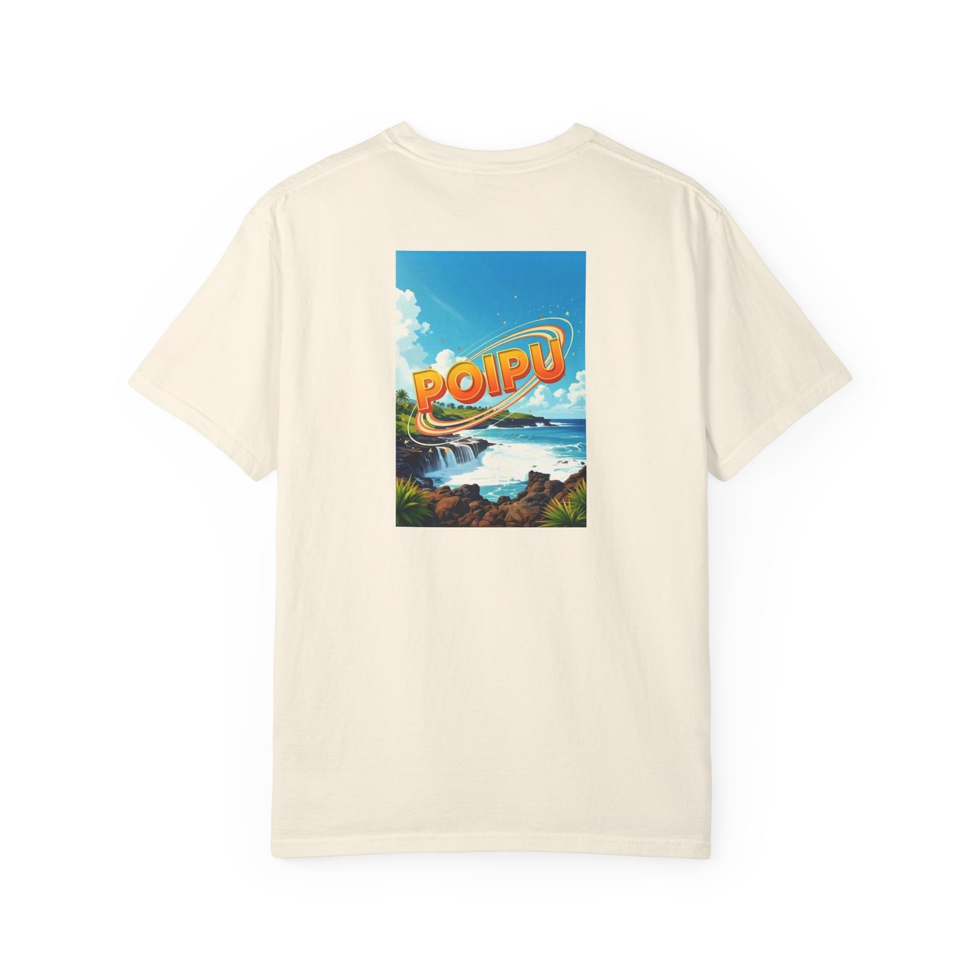 Poipu Hawaii Vintage Retro Back Printed Art Series Cotton Tee - Black Logo